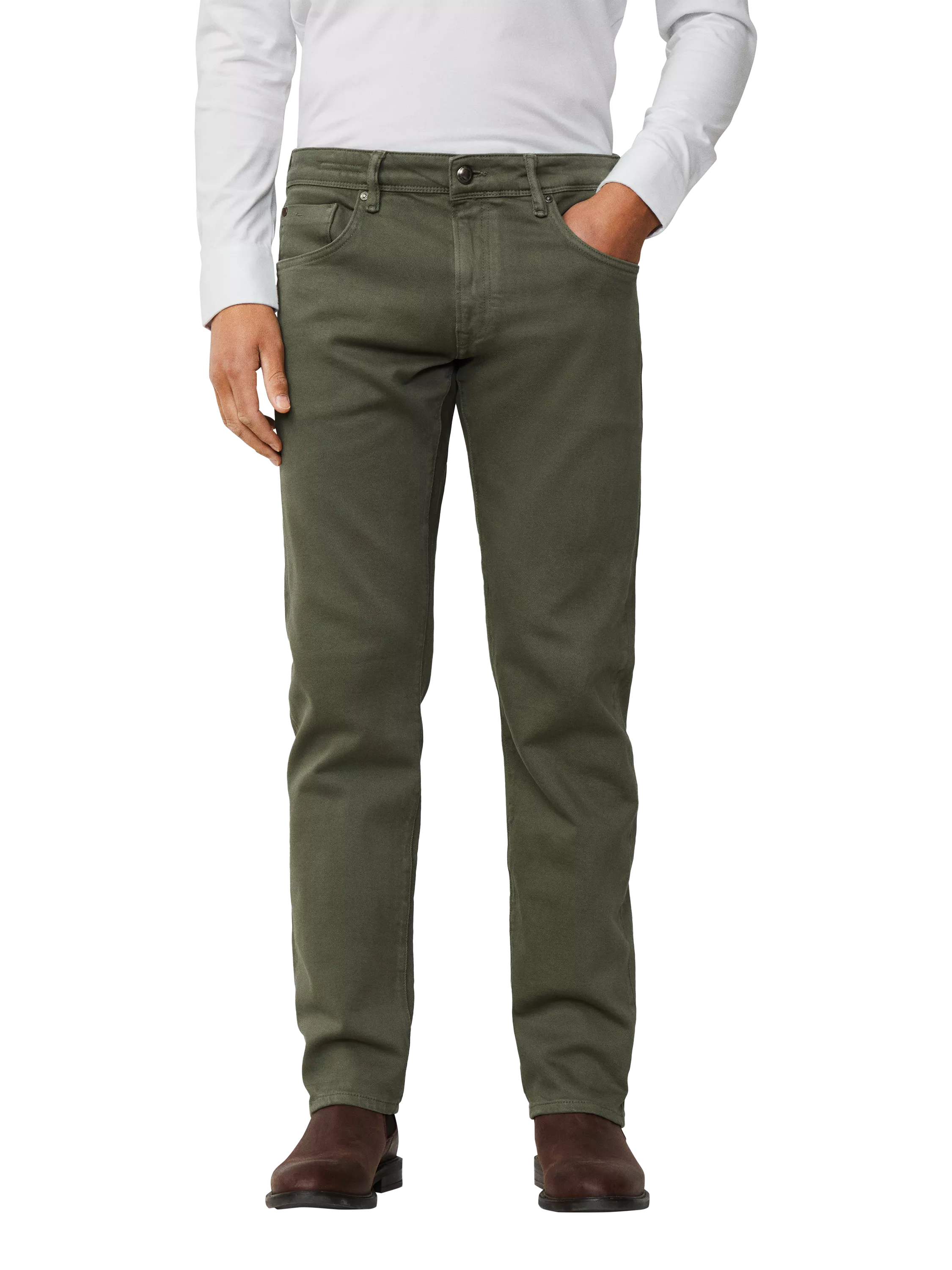 Classic Fit trousers for a timeless clean look. Made from soft denim twill for a comfortable fit. Garment dyed for added colour, bringing versatility to your wardrobe. Subtle copper rivet branding on the coin pocket. Branded leather back patch for a signature finish.