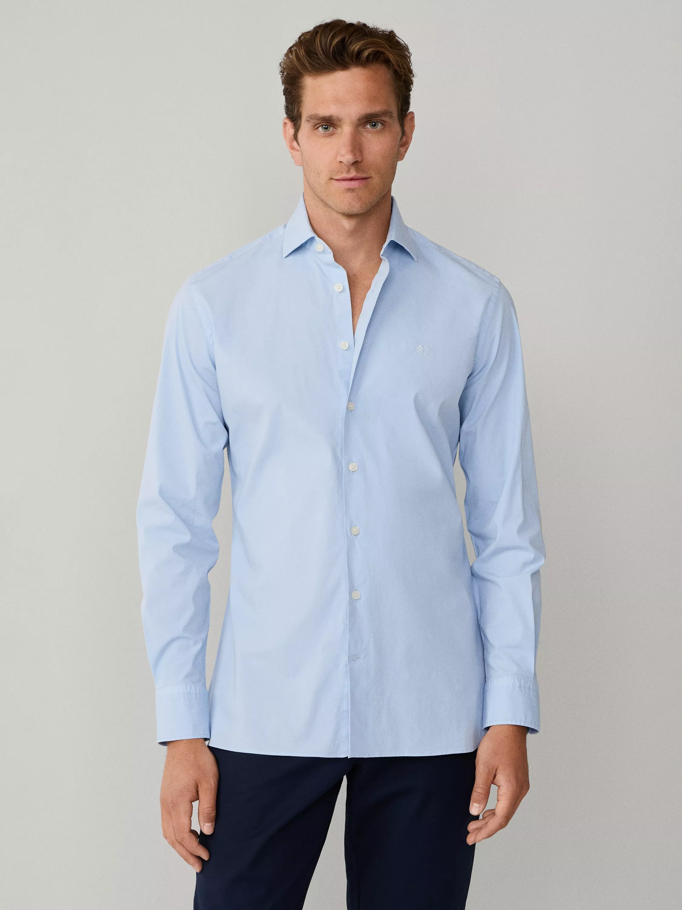 This Hackett London shirt is designed to be the backbone of a refined wardrobe. It features a tailored fit for a perpetually sharp structure and the distinguished Kent cutaway collar, a signature of the brand's classic shirt styles.