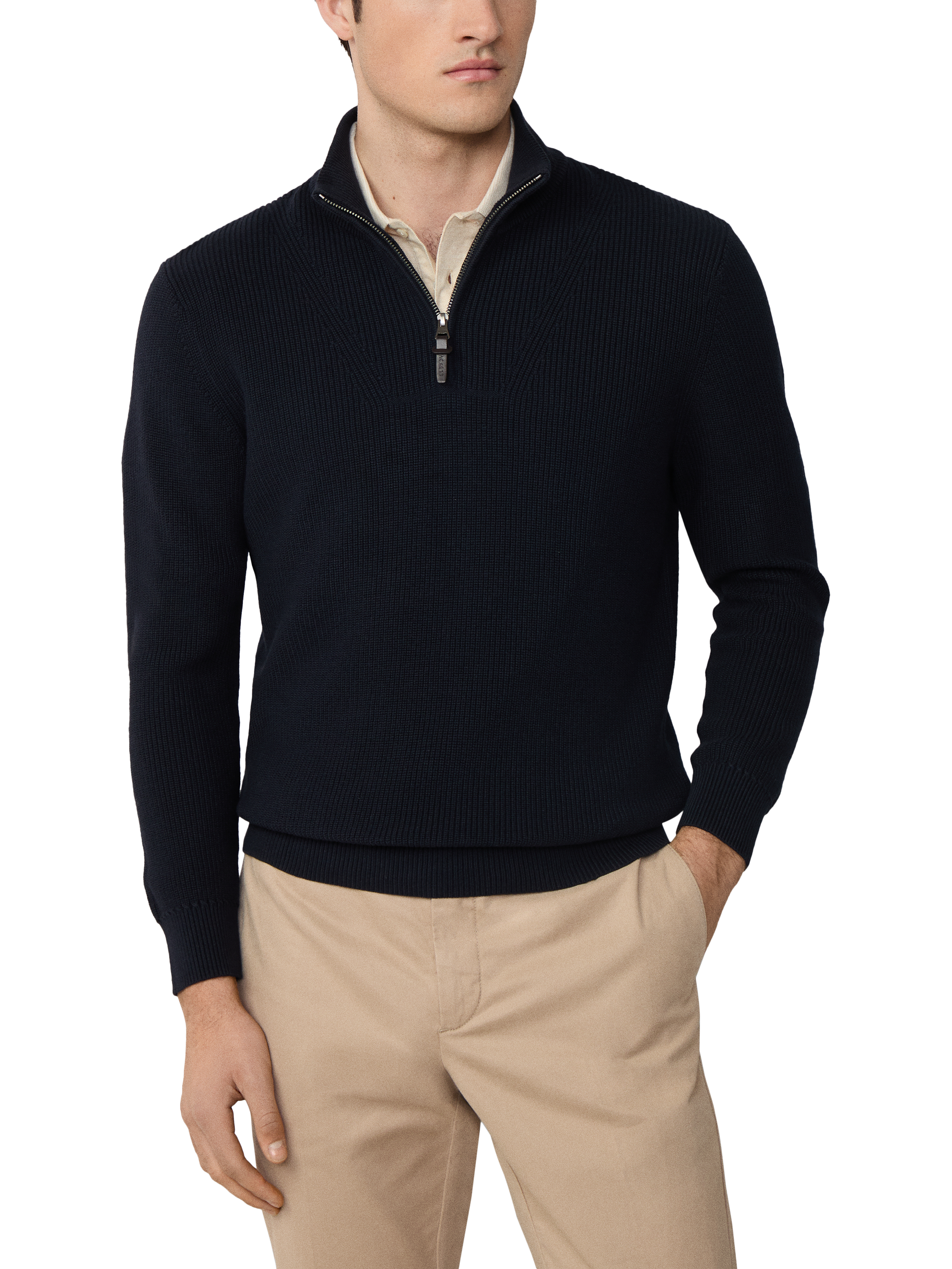 This zip neck jumper lets you handle your day with comfort and ease. The soft cotton-cashmere blend adds just enough warmth, while its timeless style ensures you look sharp wherever you go.