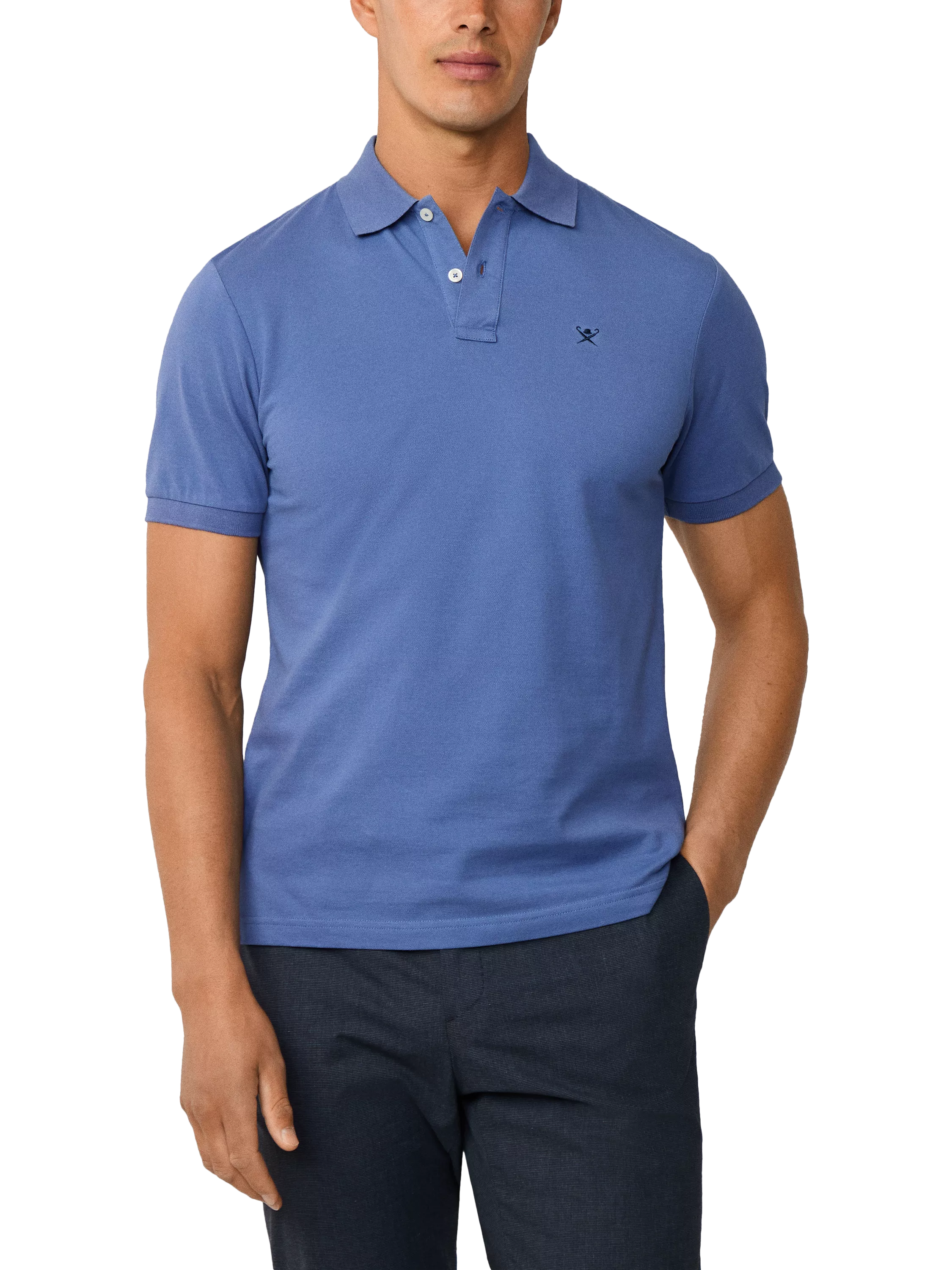 Hackett London adds to the appeal of the classic polo shirt by applying its familiar bowler hat and umbrella embroidery to the chest of this cotton piece.