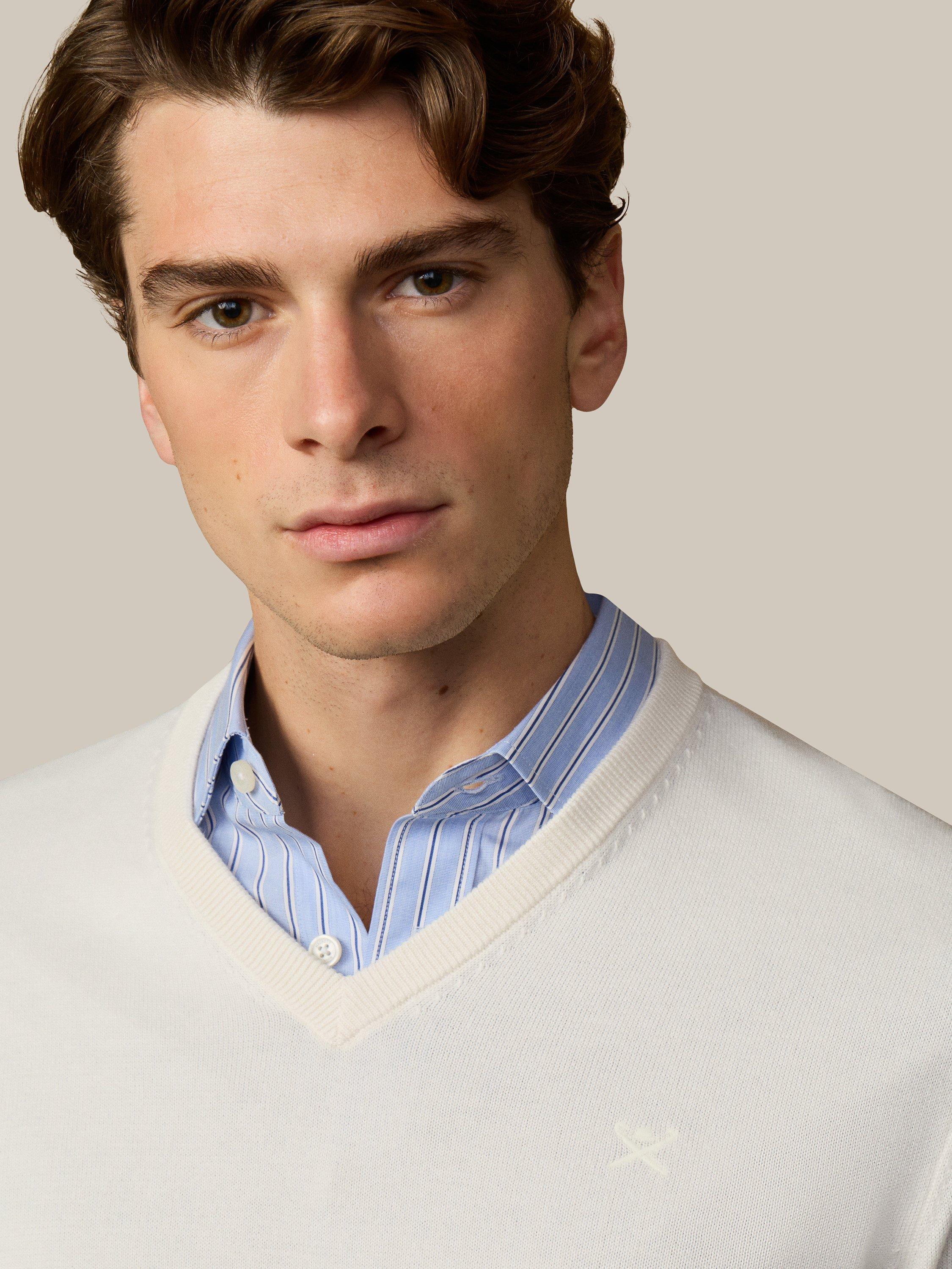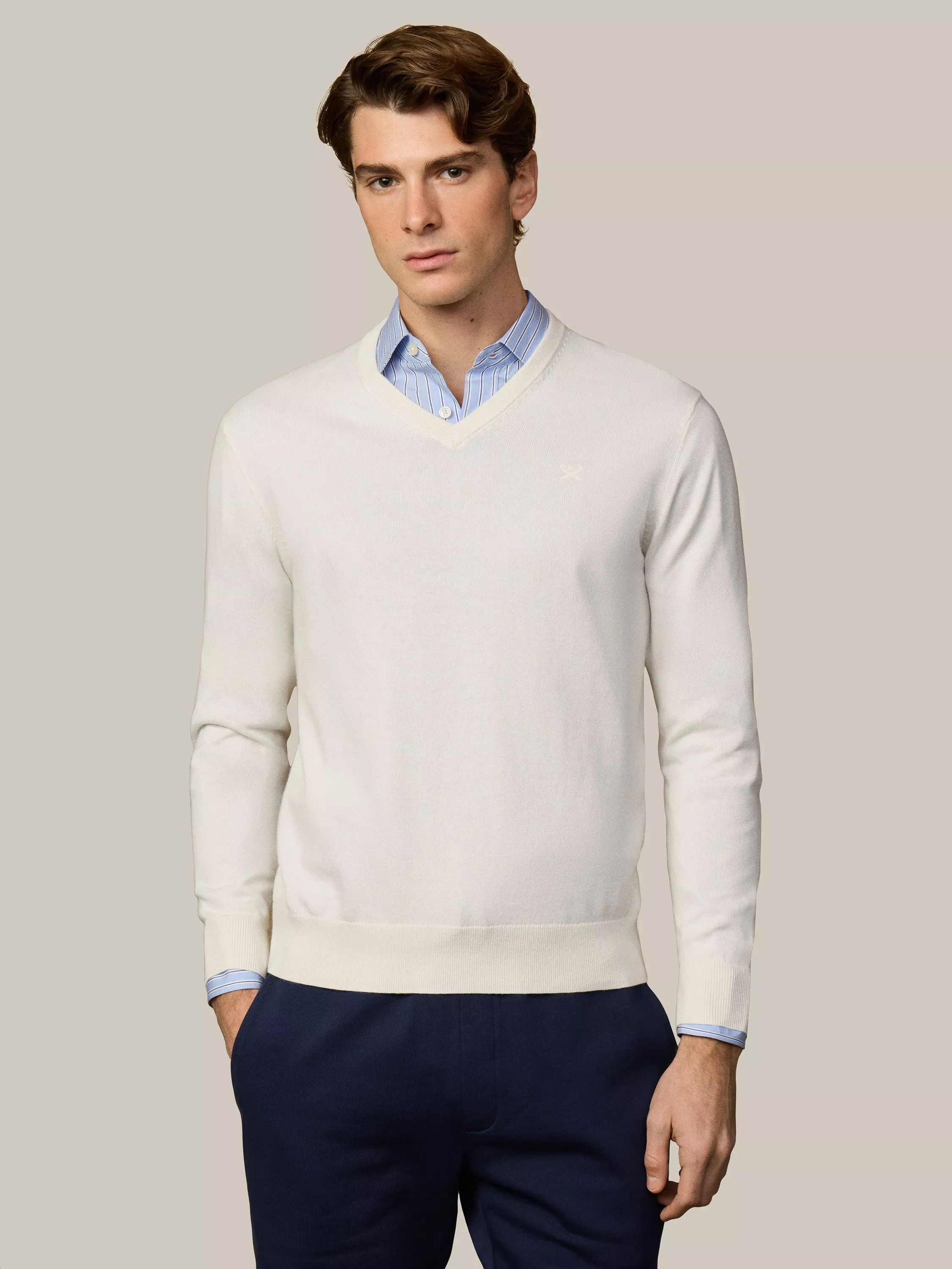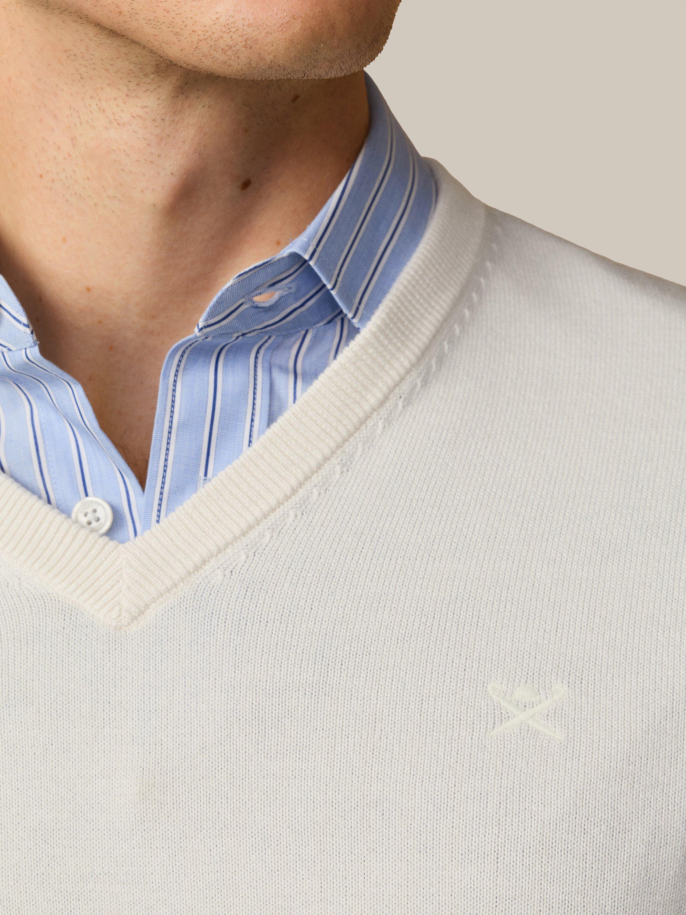This Hackett London V-neck jumper brings comfort and style to your day, with soft cotton and a smart regular fit. Ideal for layering or standing out on its own.
