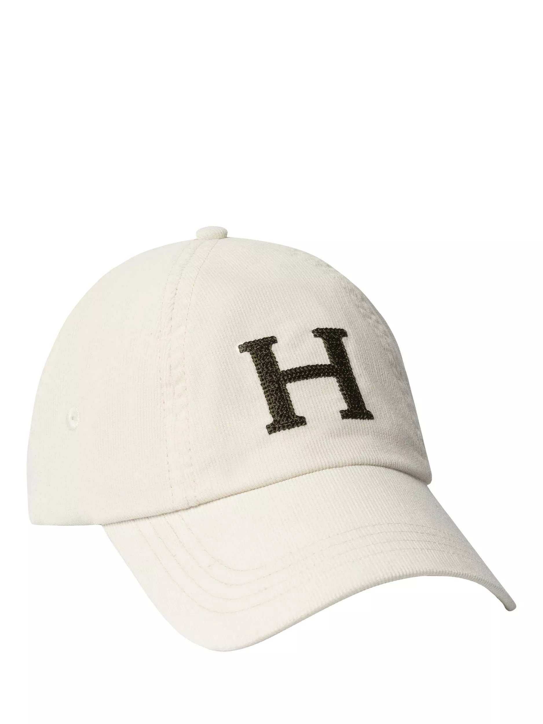 This baseball cap is constructed from textured corduroy to ensure a durable finish, featuring an embroidered "H" on the front. With subtle branding at the back for a discreet, stylish look, it's a classic piece for casual wear, easily paired with various outfits.