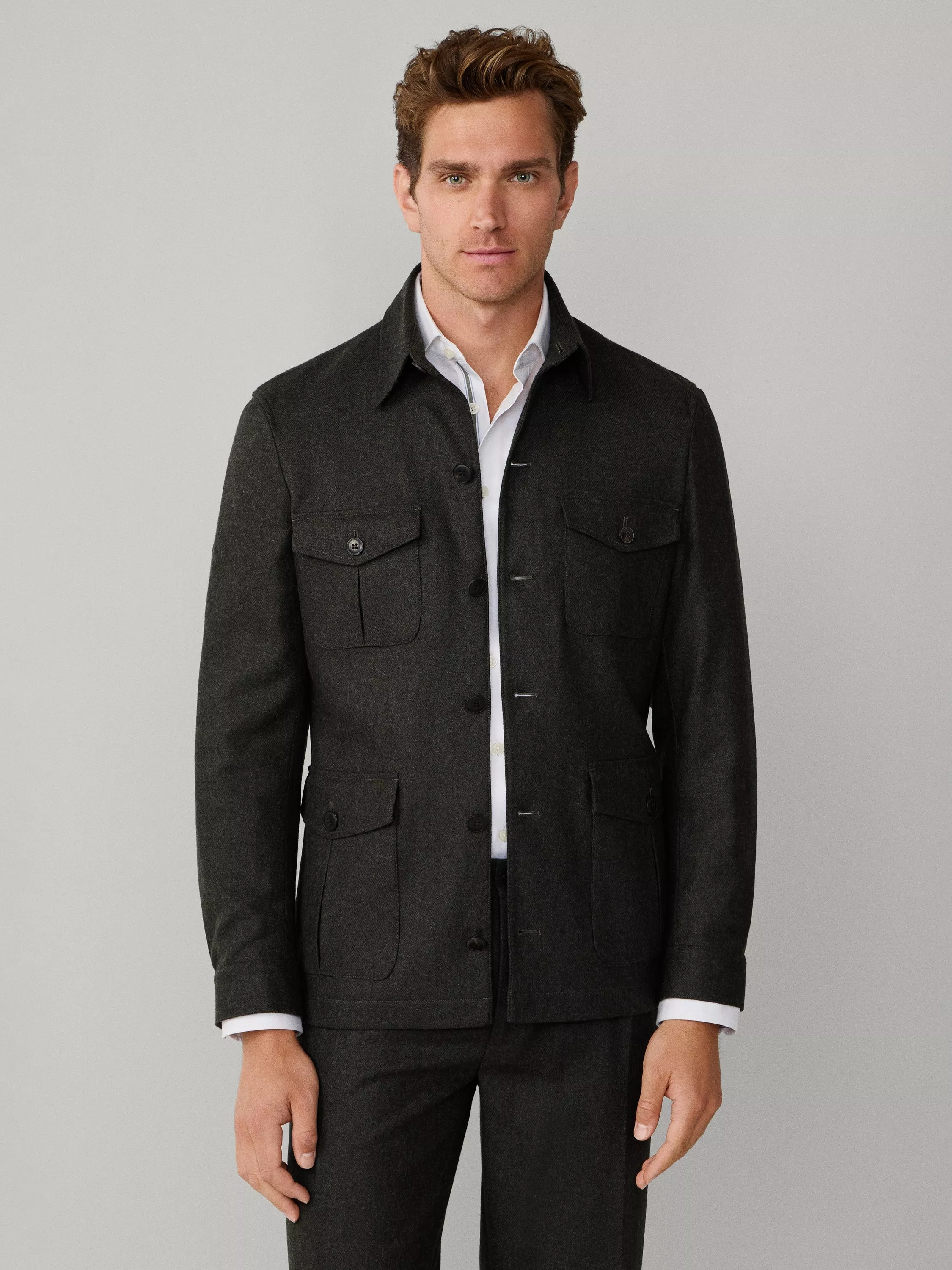 The jacket combines function with finesse, featuring a practical four-pocket design and button cuffs. This piece is fully unlined, ensuring a lighter feel and excellent drape. It speaks with confidence and expertise, offering versatility: pair it with the matching trousers to create a cohesive, modern look that breaks the rules of conventional suiting.