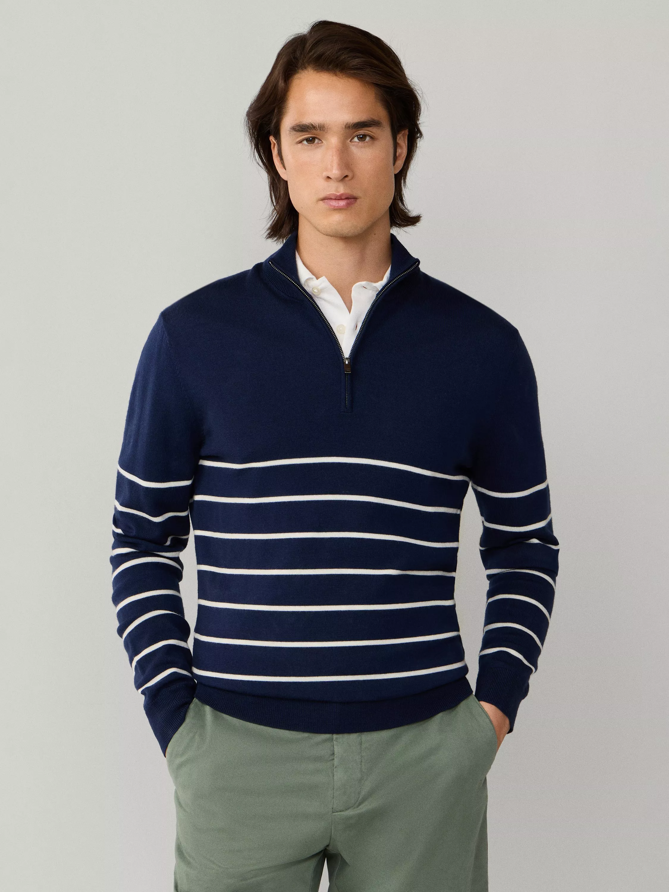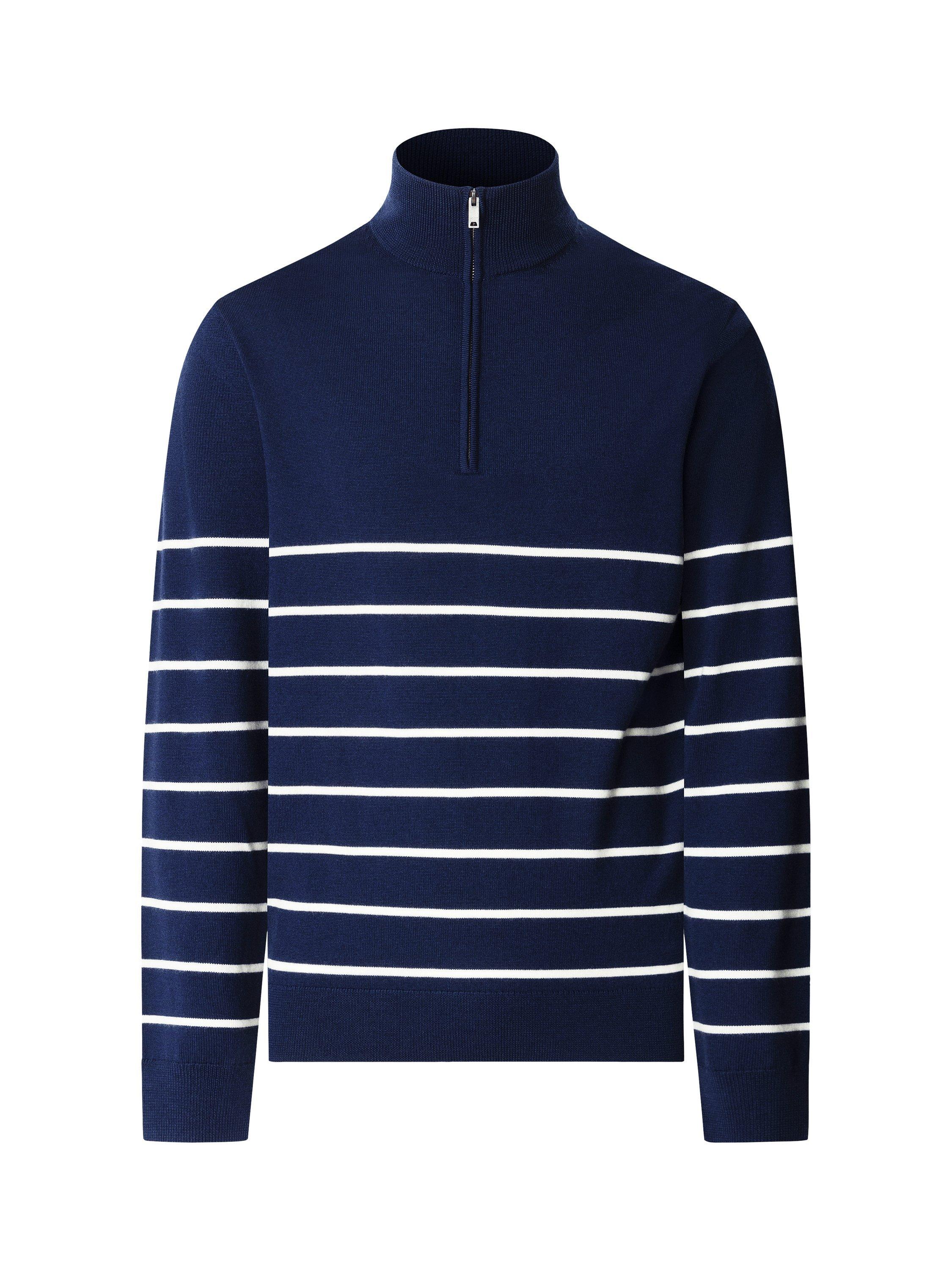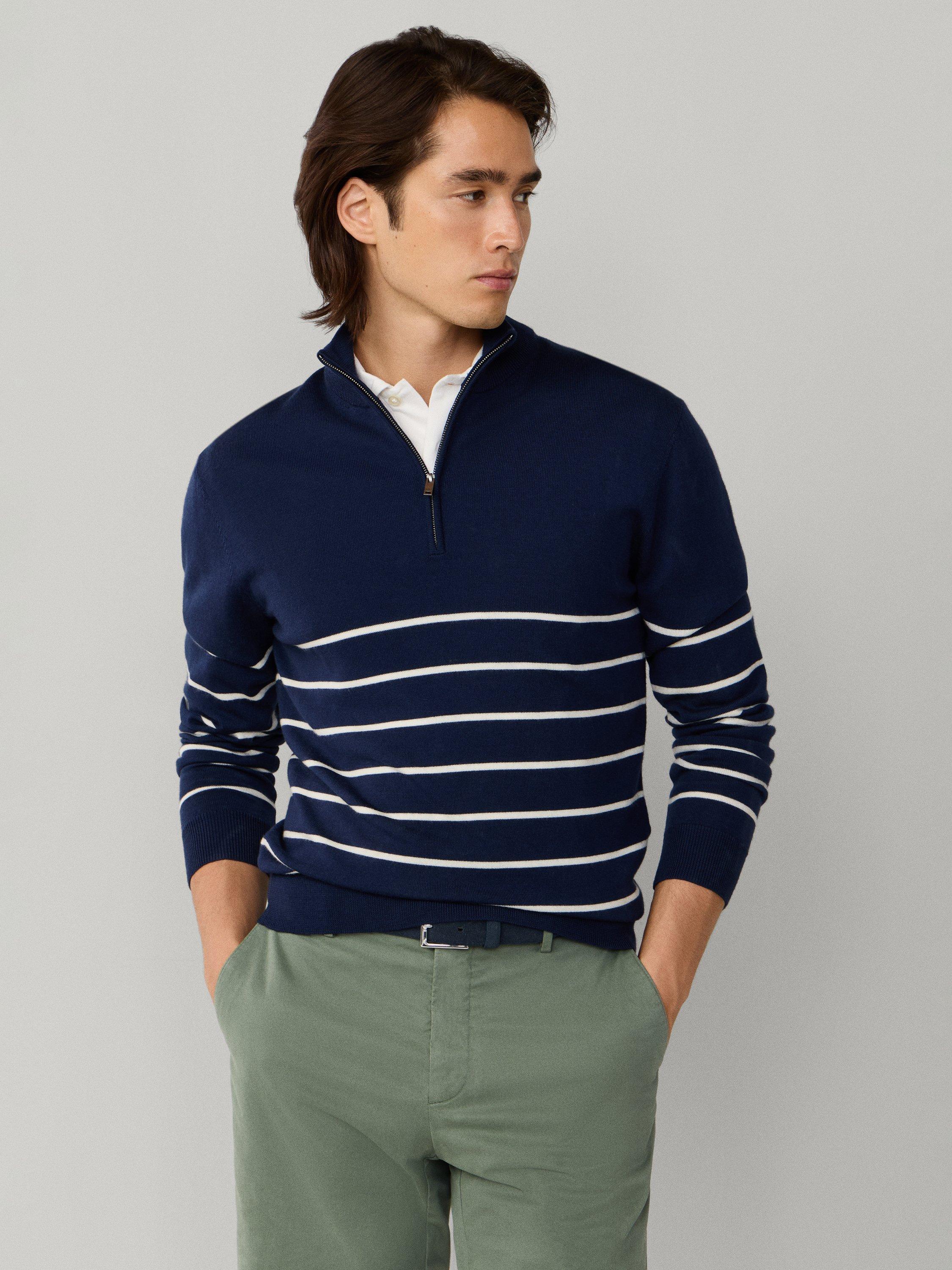 An everyday Hackett London half-zip neck jumper. The soft merino wool keeps you comfortable, while sharp stripes add a clever twist to any look.