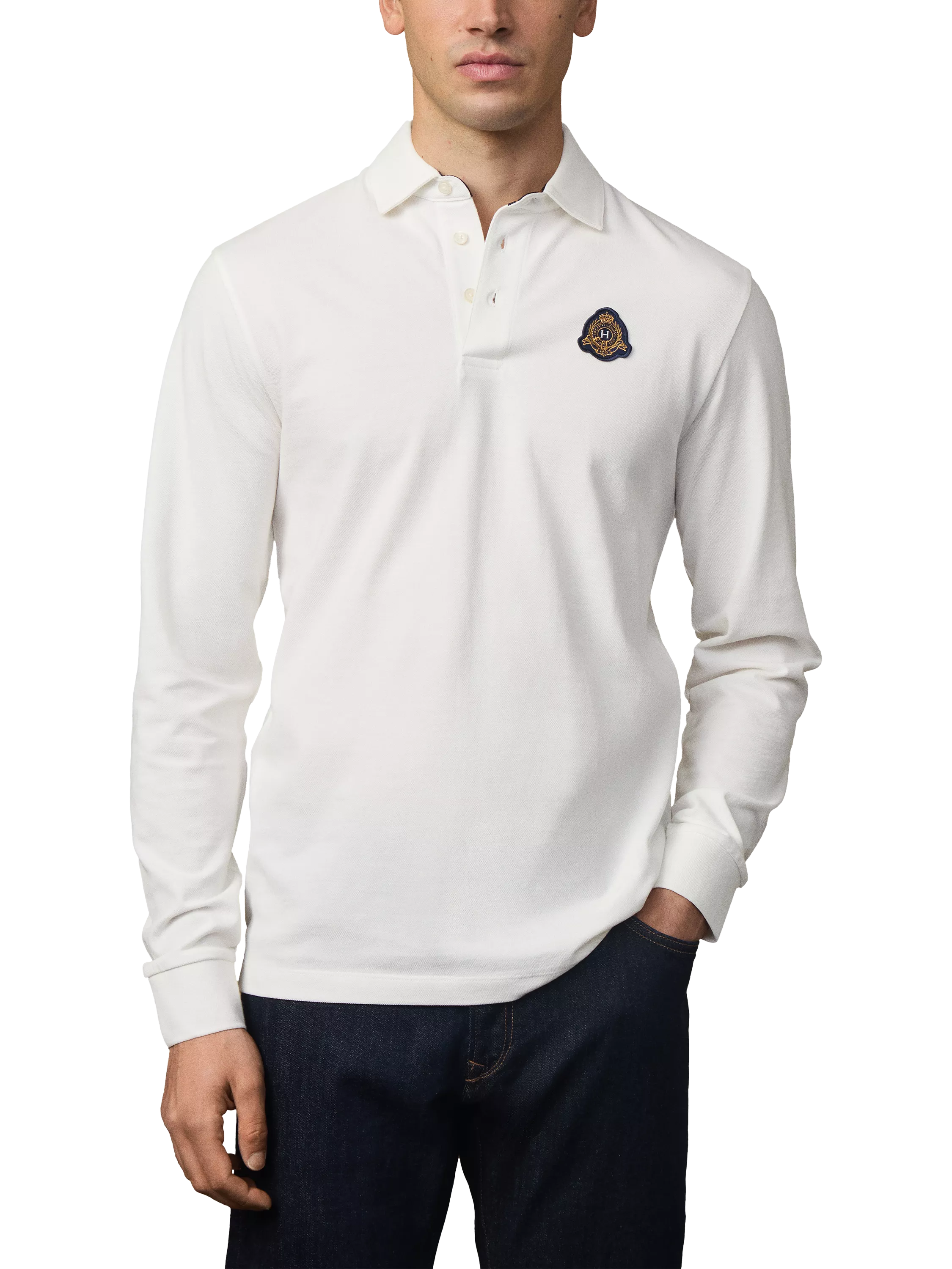 From Hackett Heritage this classic fit long sleeve polo has a three-button placket, and is embellished with the Heritage crest embroidery at the chest. Crafted in 100% cotton piqué knit, it also features a woven stripe trim at the inner collar band. Refined yet relaxed, it's an ideal style for cooler days.