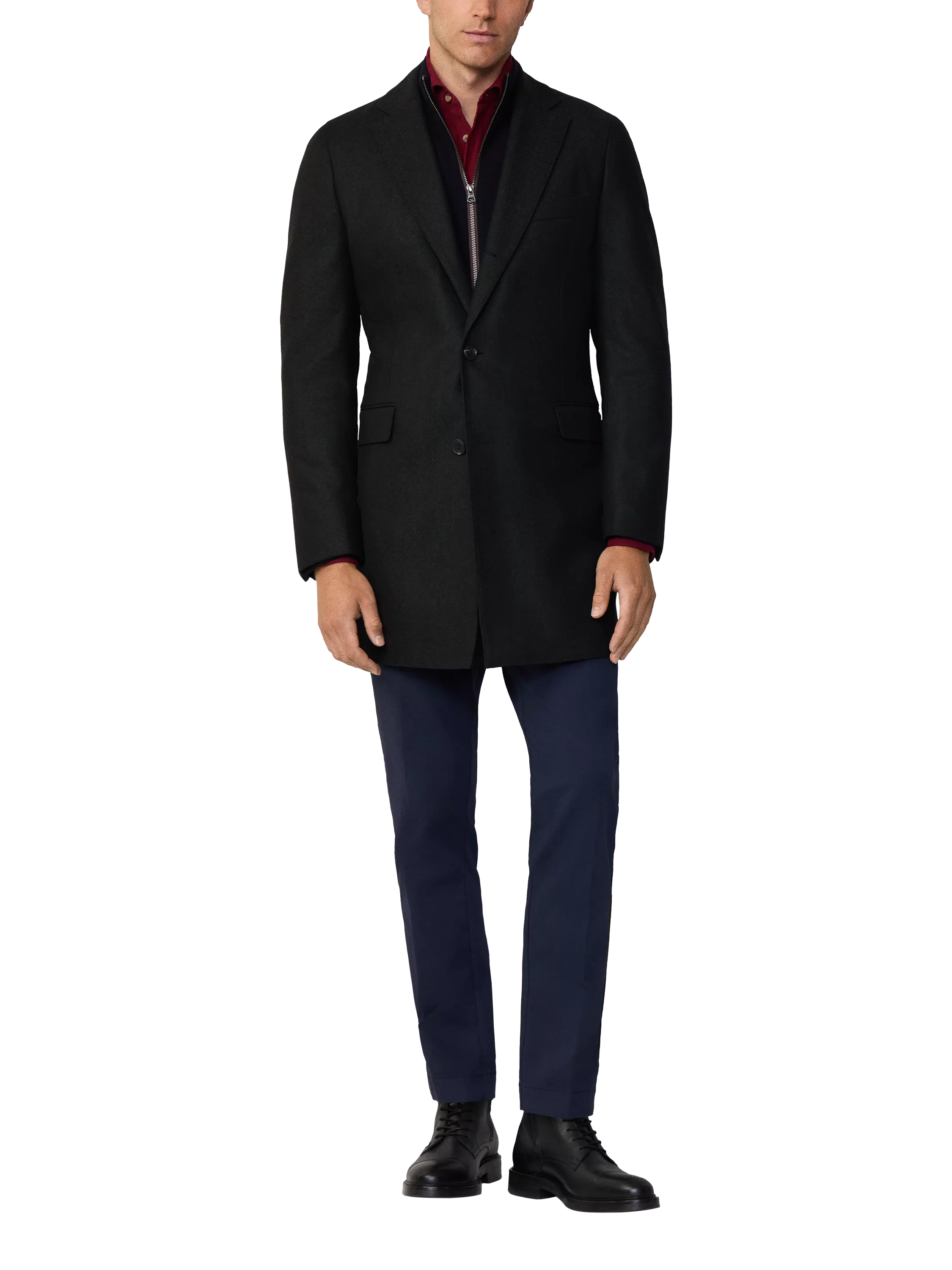 Smart coat in lightweight fabric with Italian wool and cashmere. A herringbone textured design and a shirt collar with diagonal welt side pockets and a back slit at the hem. Adjustable cuffs with buttons and a satin interior lining completes the look.