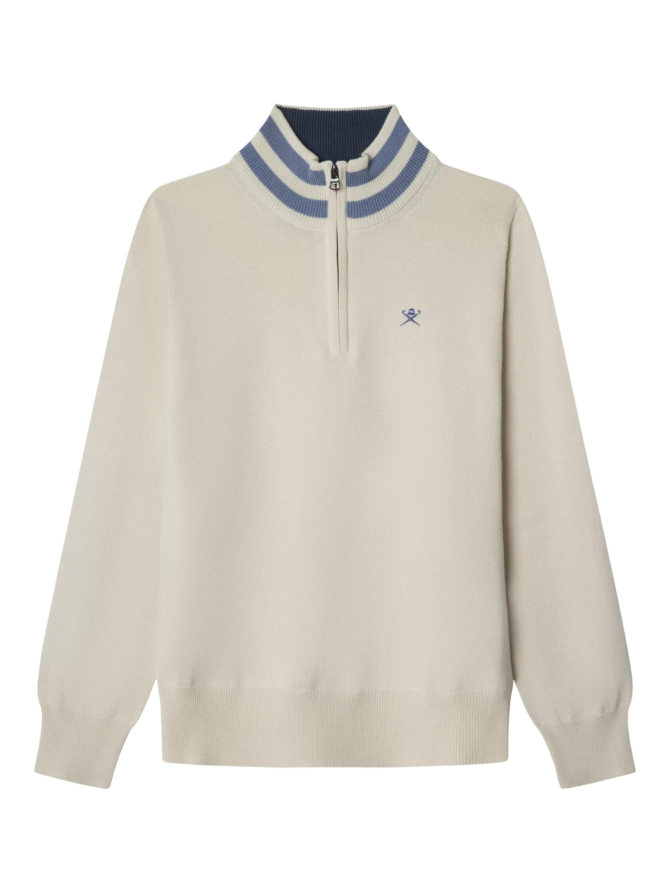 This long sleeve jersey top, crafted from pure cotton, features a zip neck and sleek colour block design, offering comfortable layering for busy days and lively occasions alike.