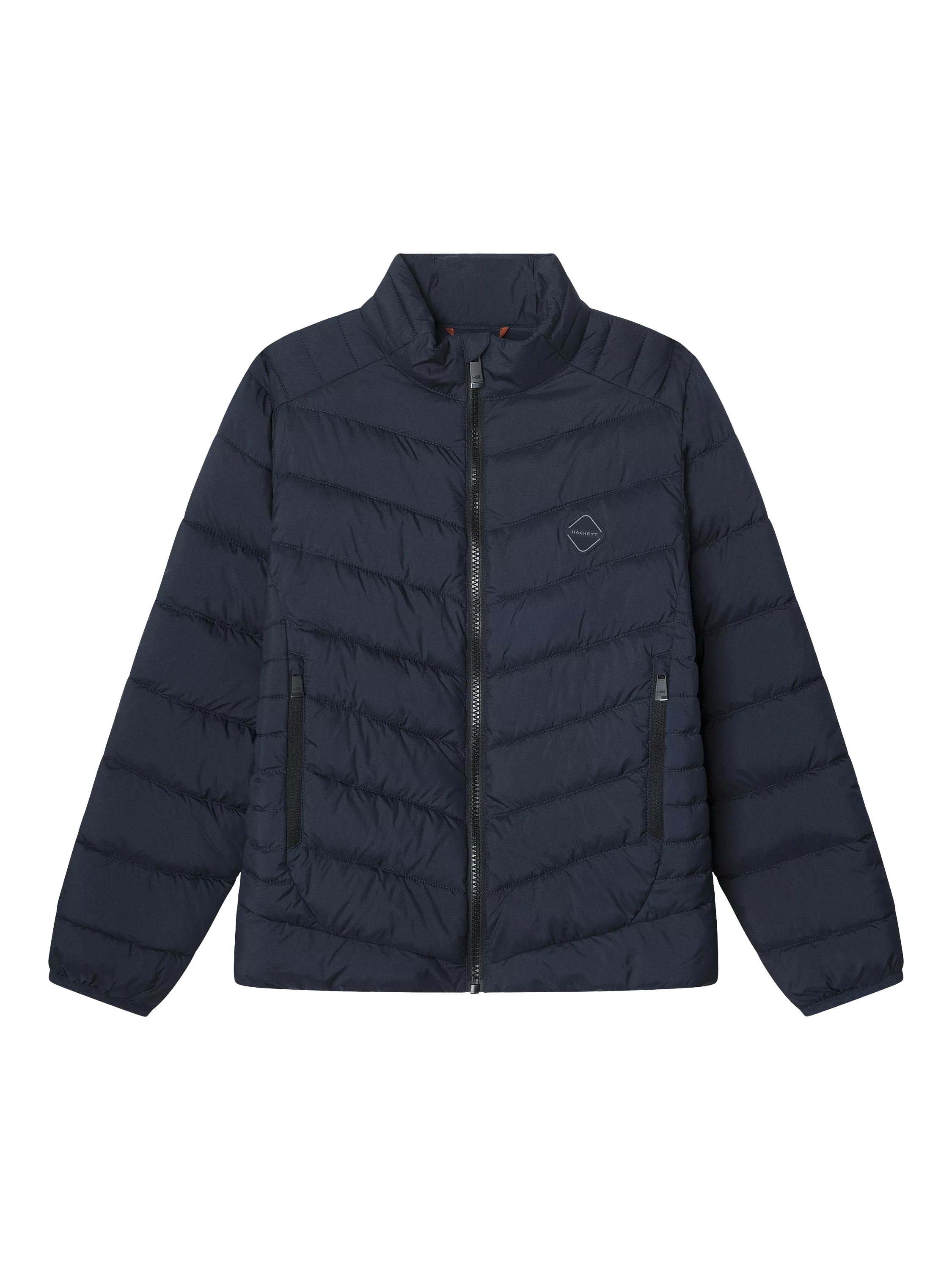 A functional and stylish layer for cooler days, this lightweight padded jacket features a chunky front zipper and a silicone badge on the left chest.