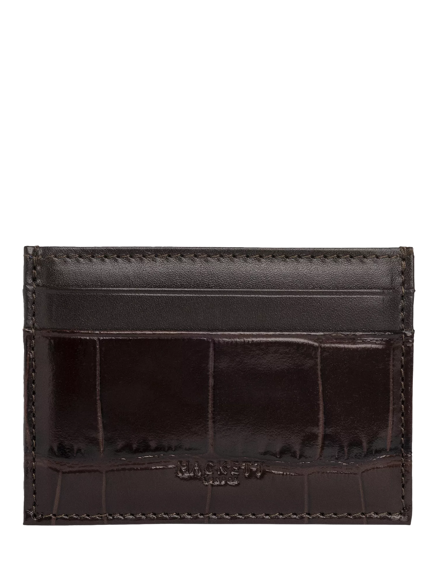Hackett LondonLeather Croc Stamped Card Holder, Black