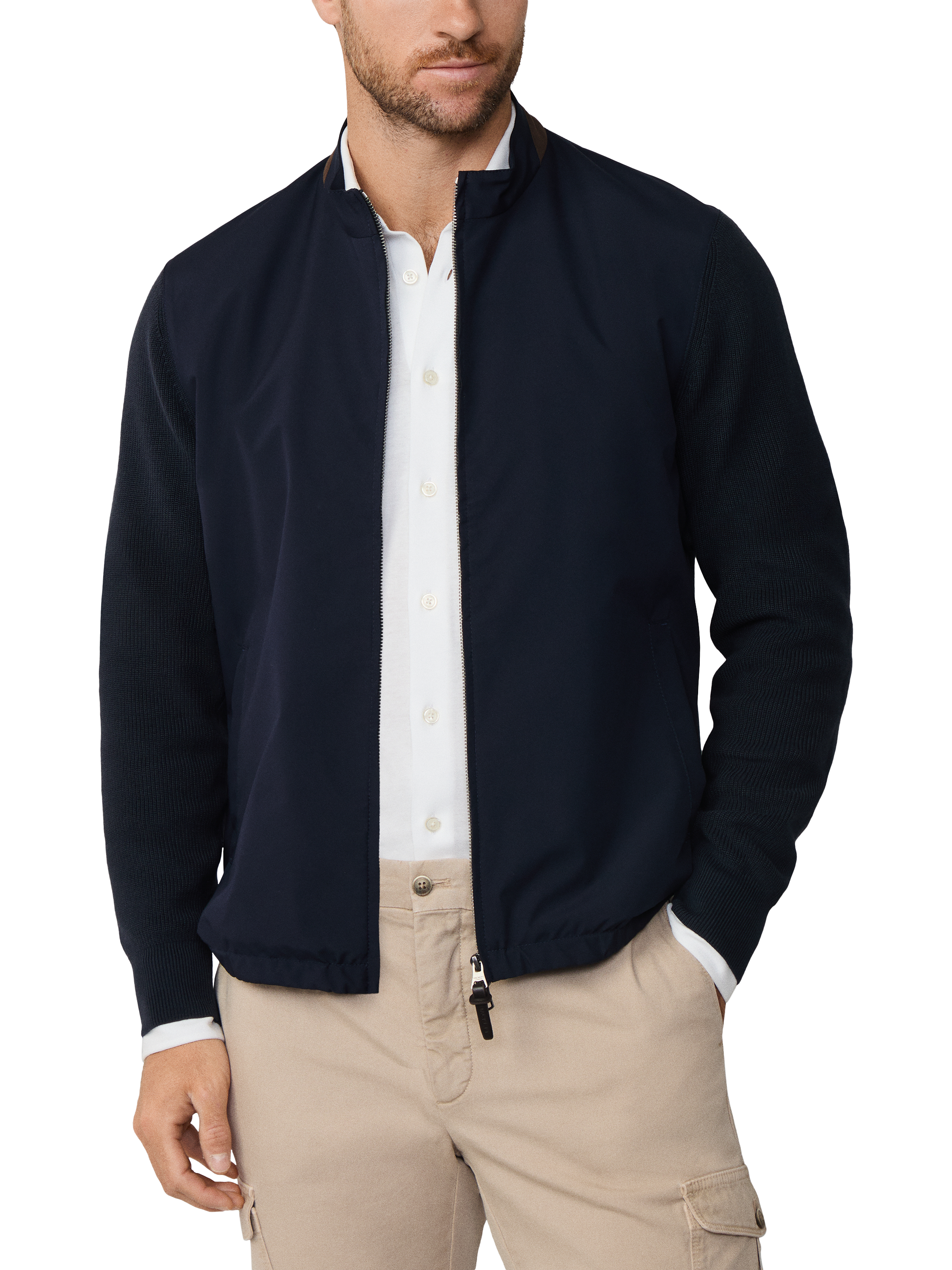 A regular-fit cardigan, this Hackett London piece is a lightweight hybrid with knitted sleeves and back. The nylon front features a concealed double-ended zip with a leather puller. Made from a soft cotton-cashmere blend, it's a versatile choice for your wardrobe.