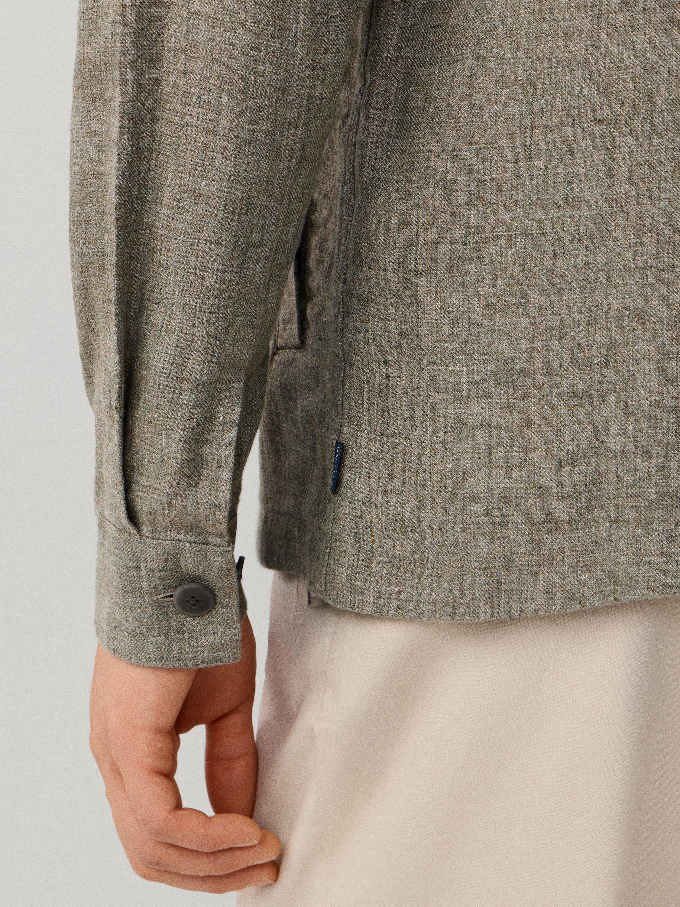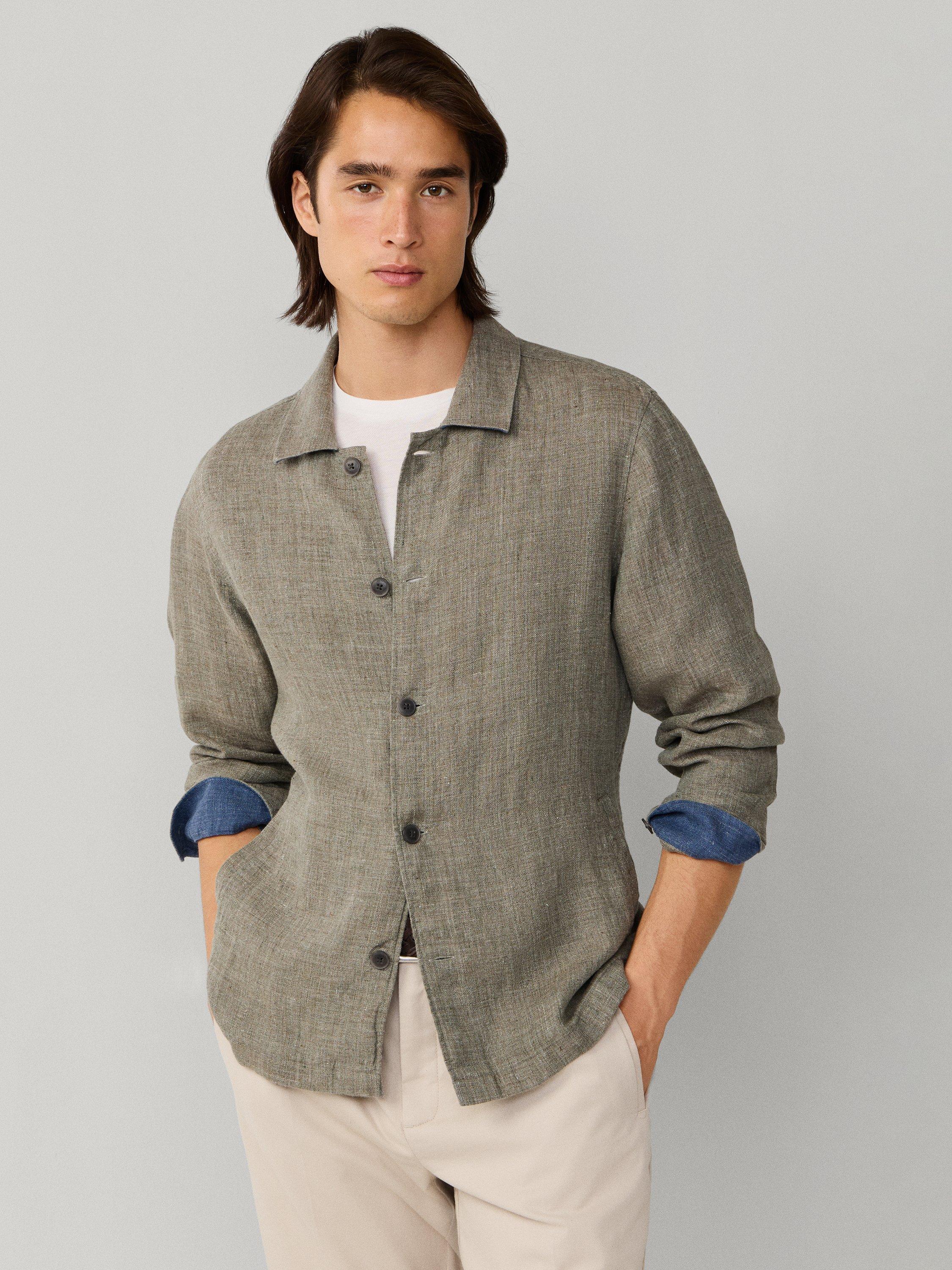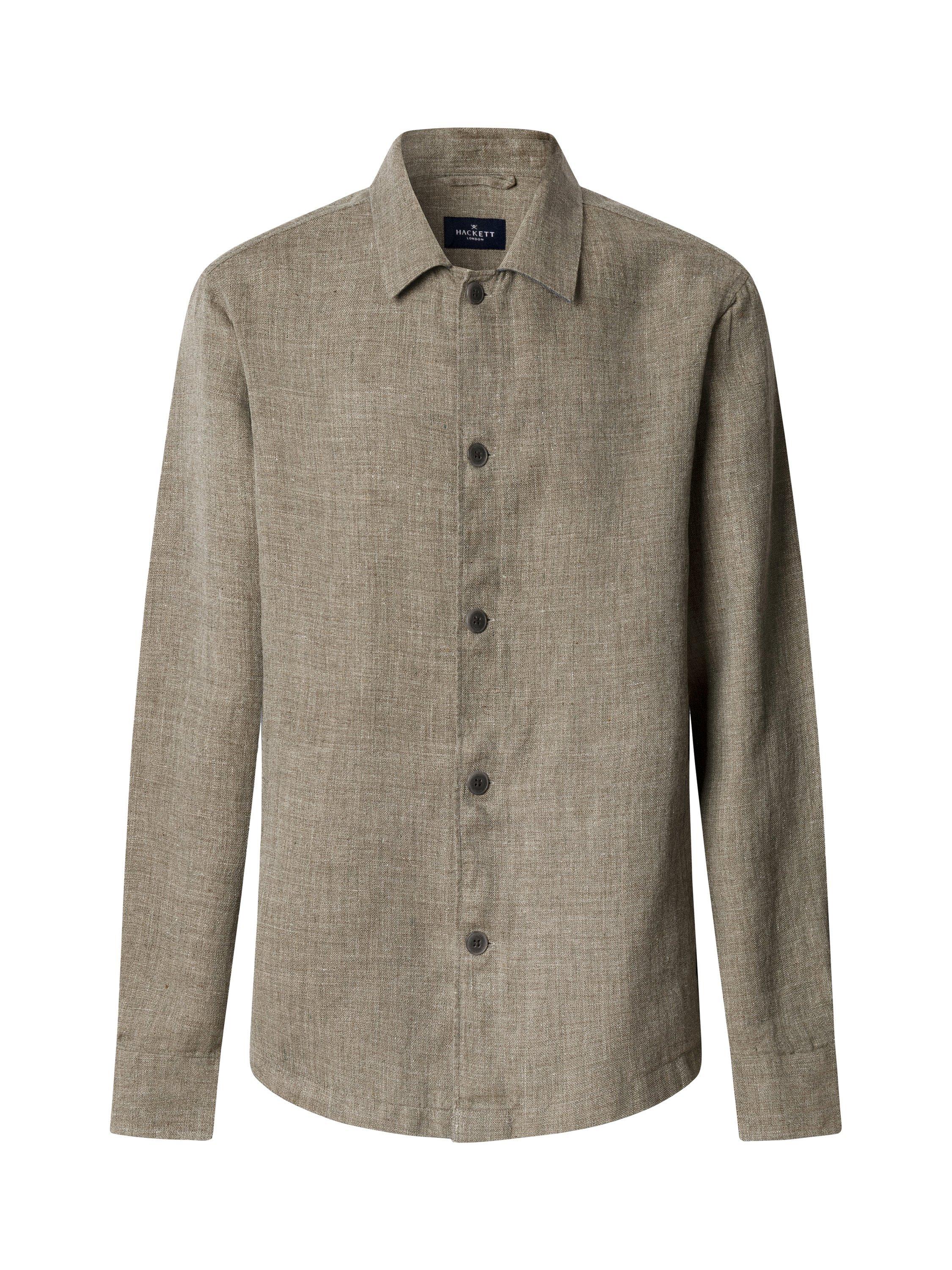 Pure linen overshirt, designed with a Kent cutaway collar and a 'Hackett' branded tab at the side seam.