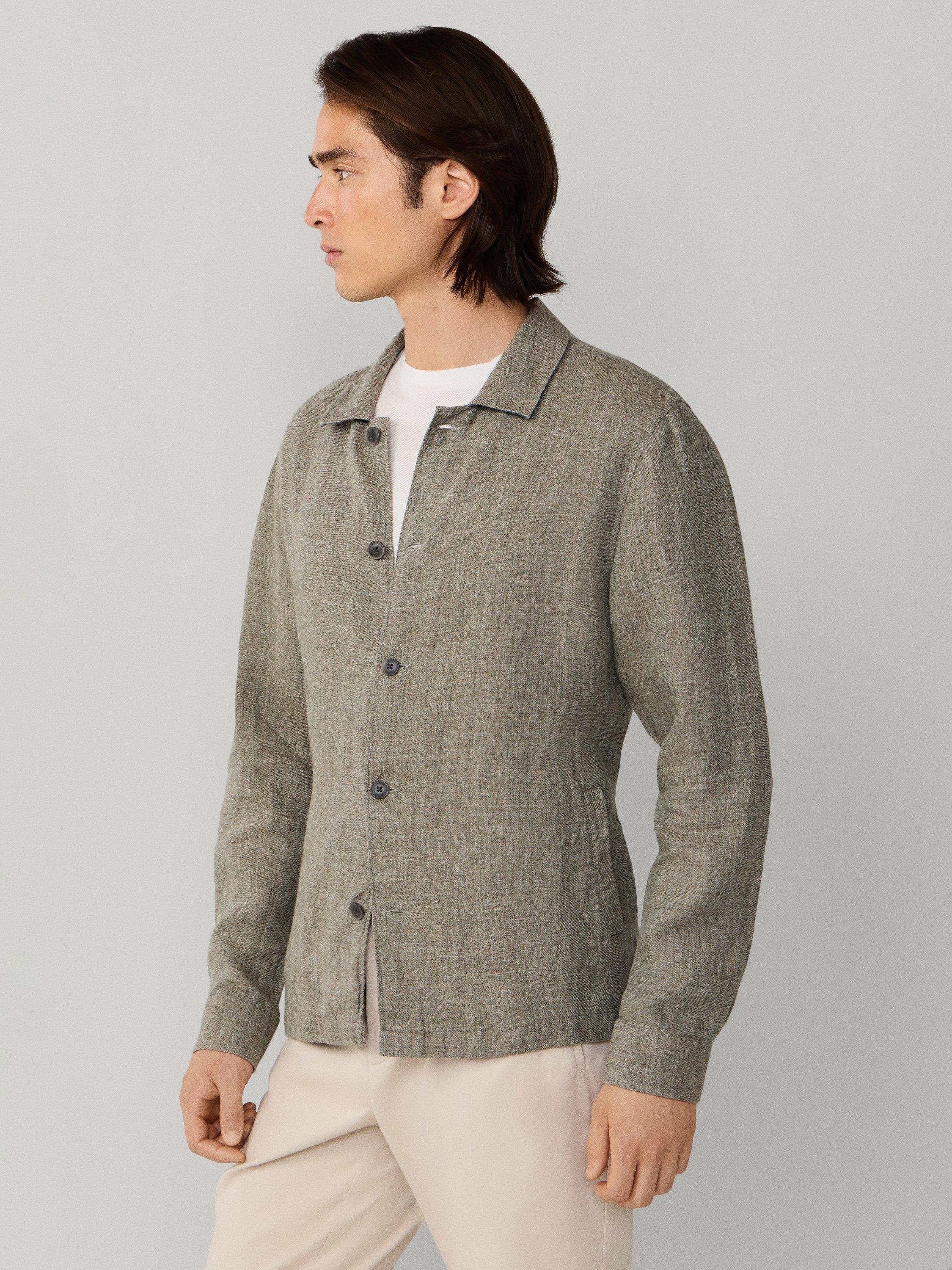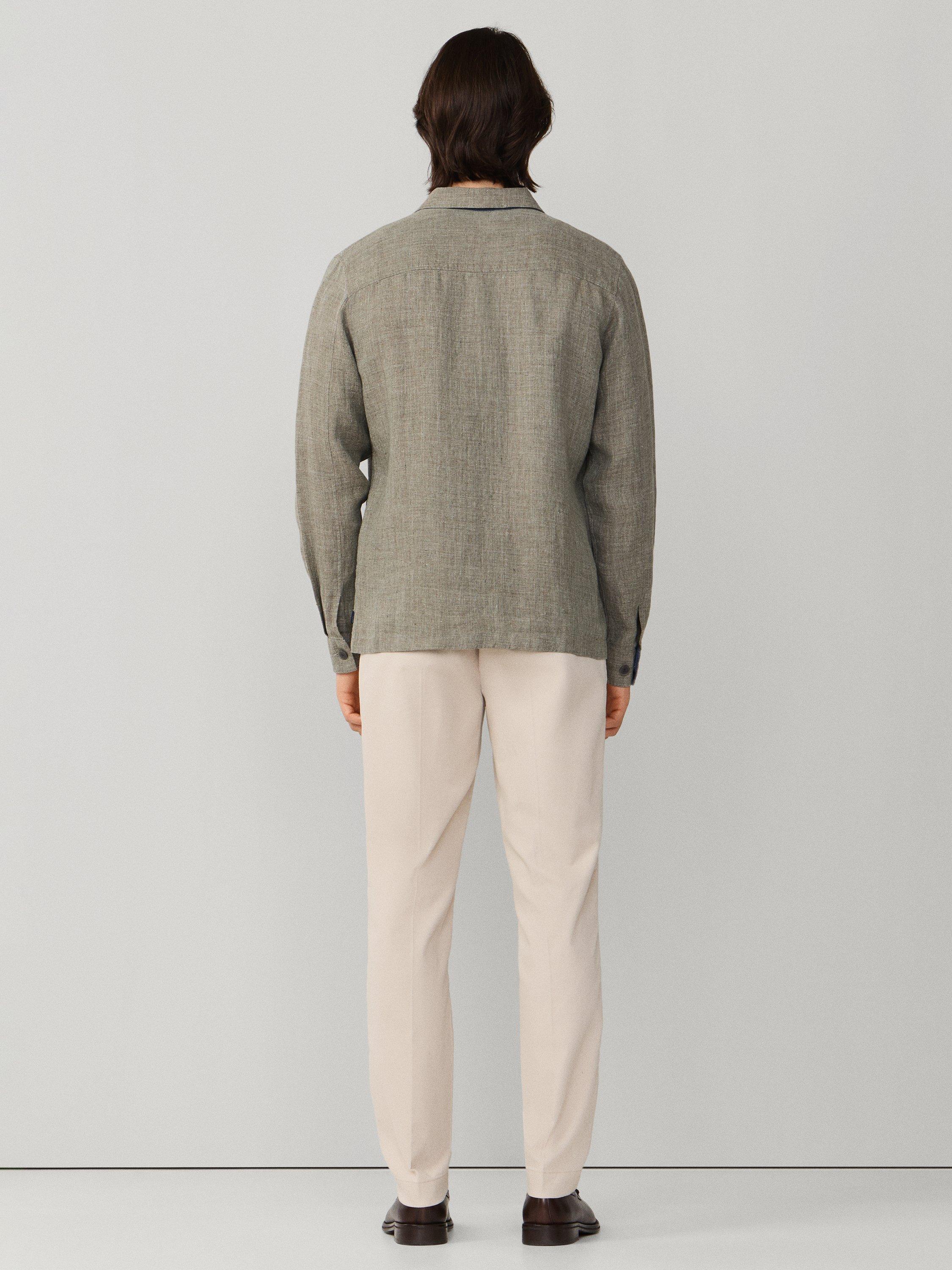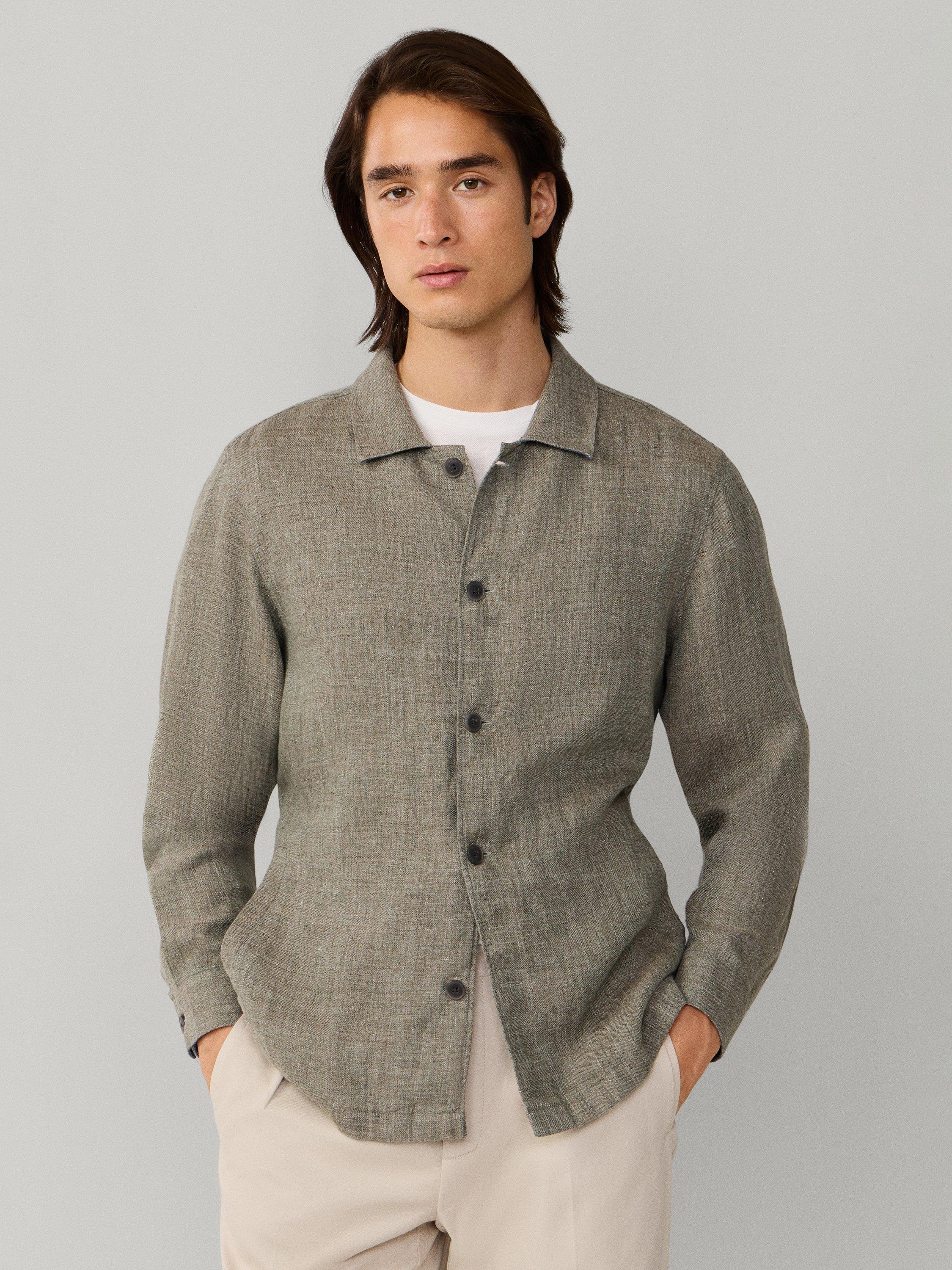 Pure linen overshirt, designed with a Kent cutaway collar and a 'Hackett' branded tab at the side seam.