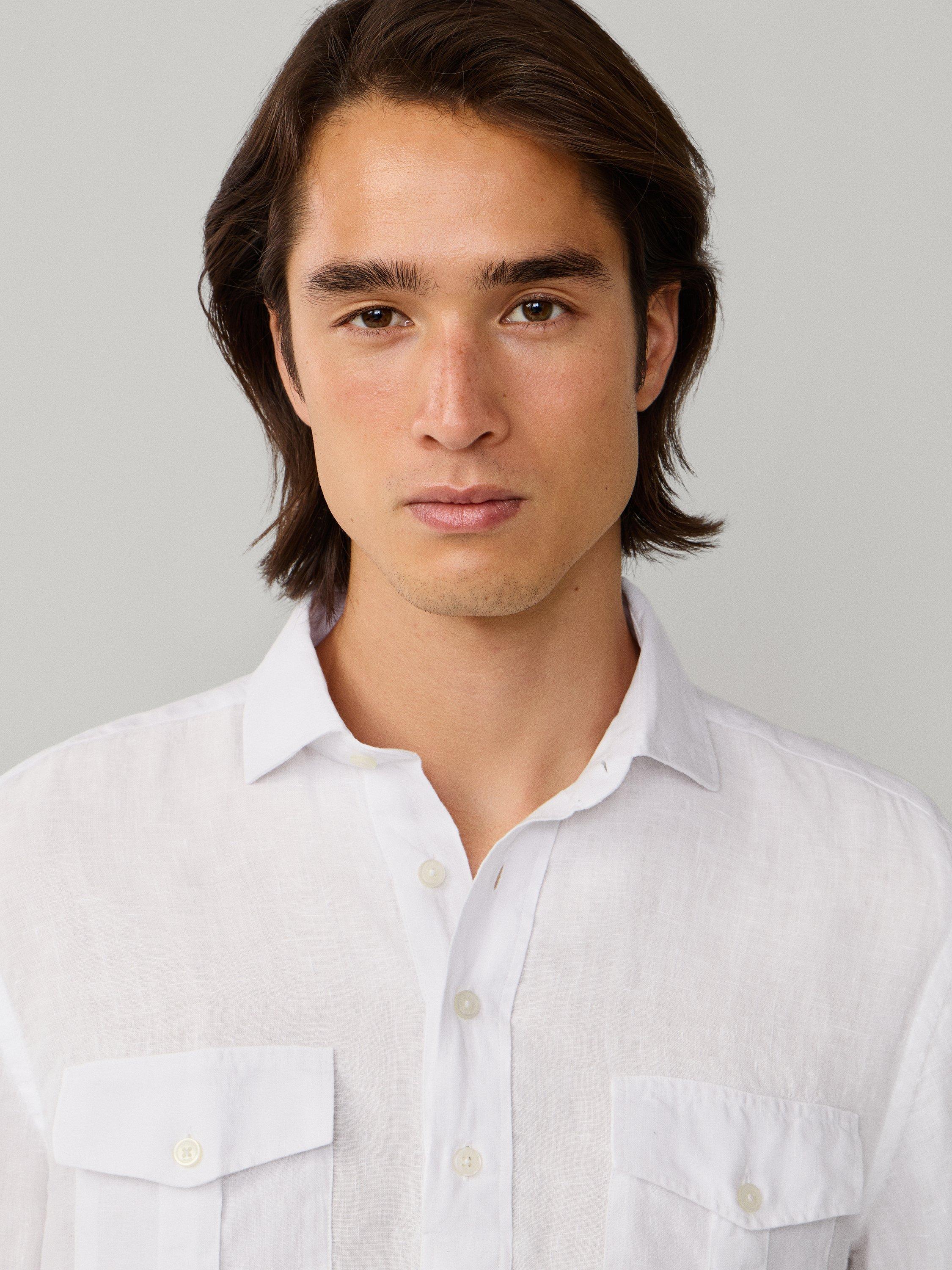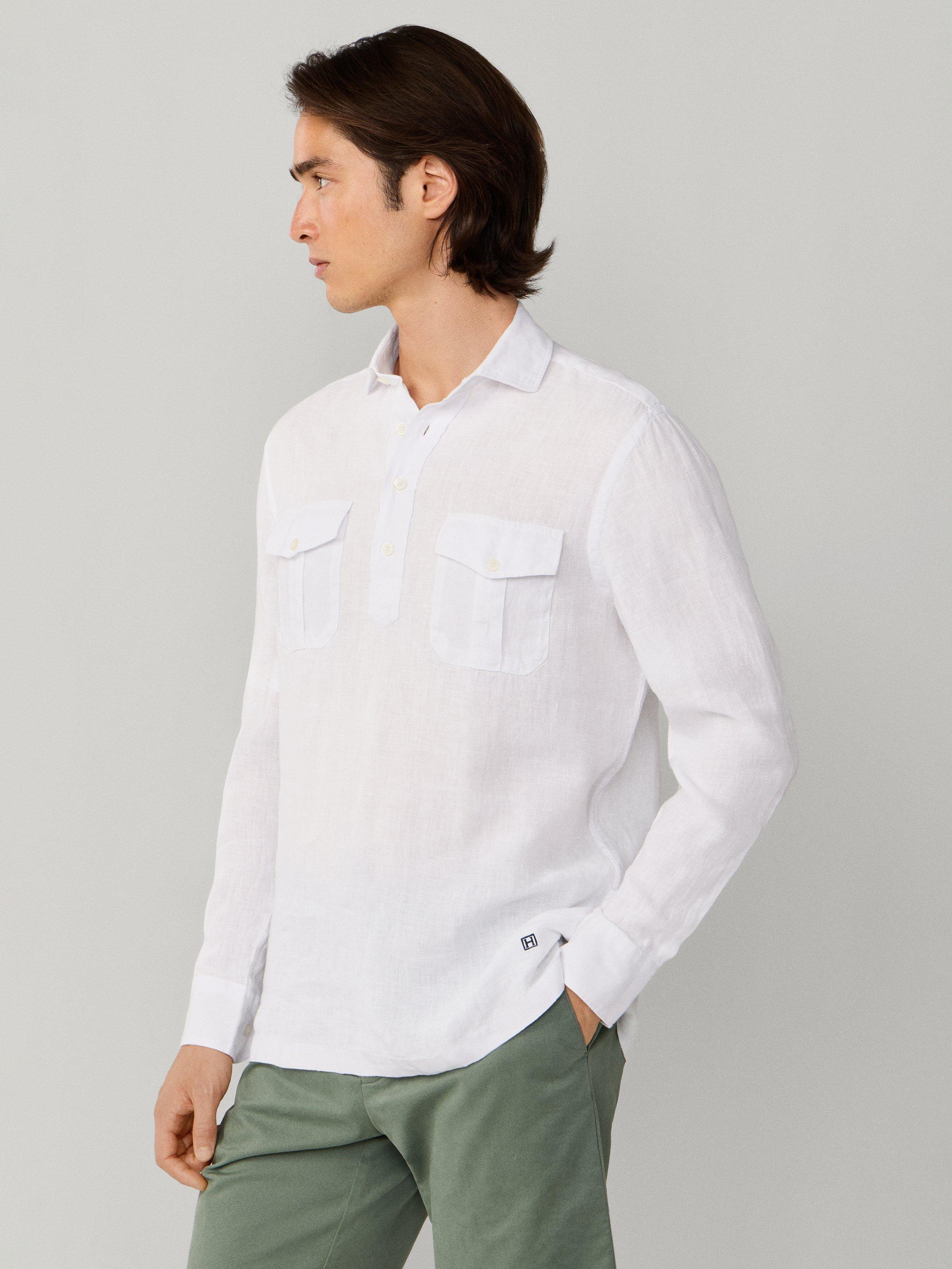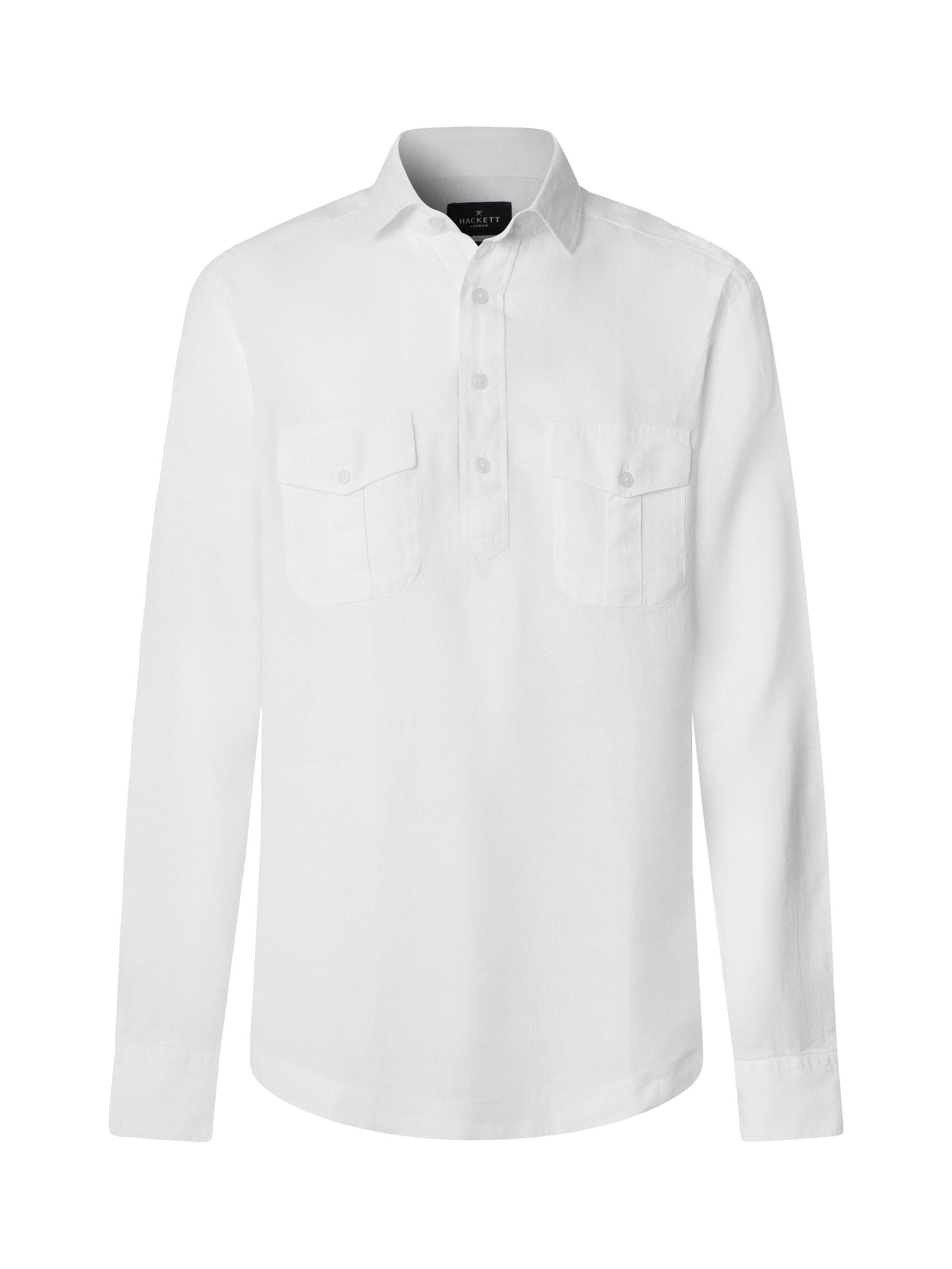 Hackett LondonLinen Regular Fit Half Placket Shirt, Optic White