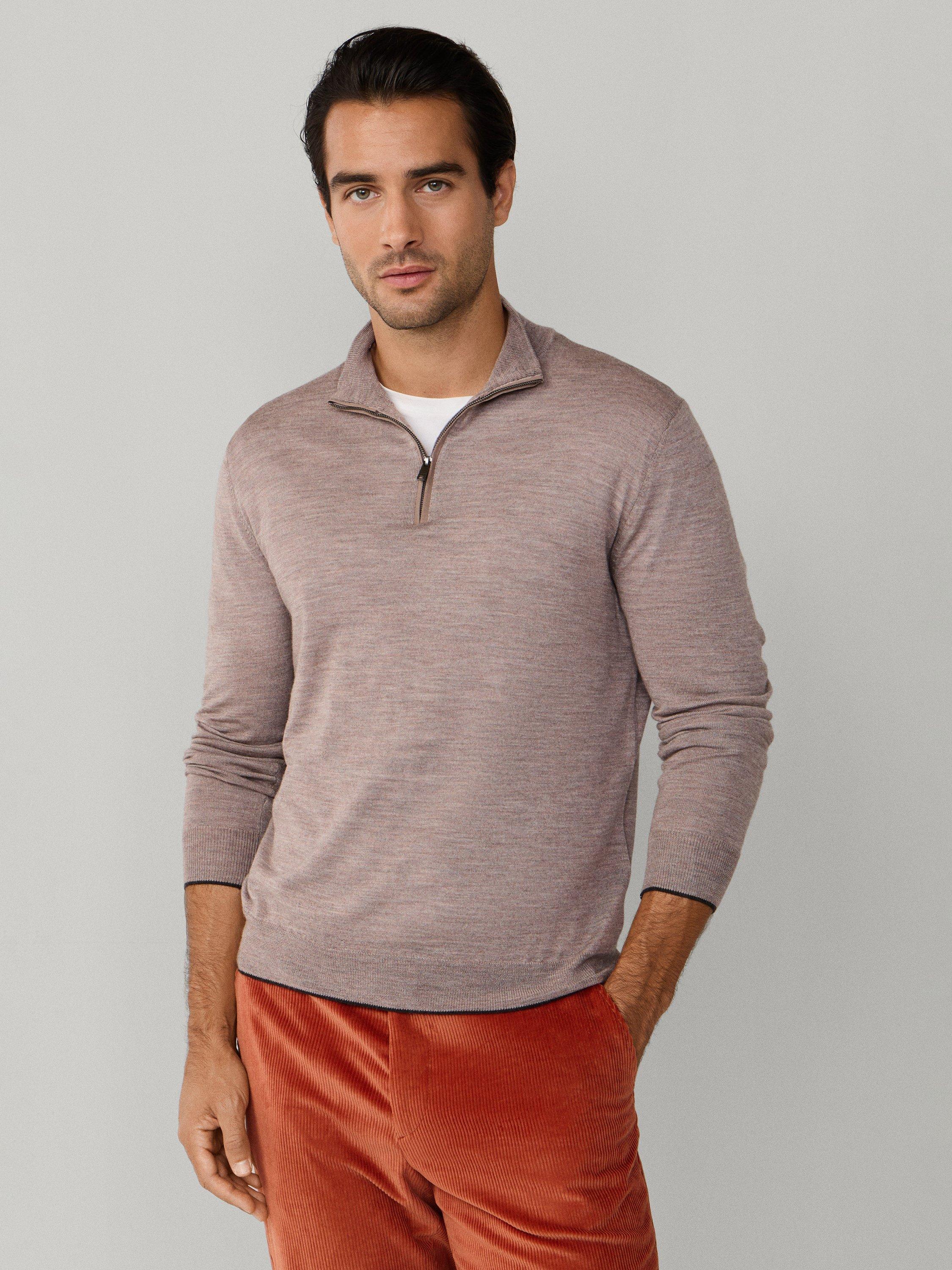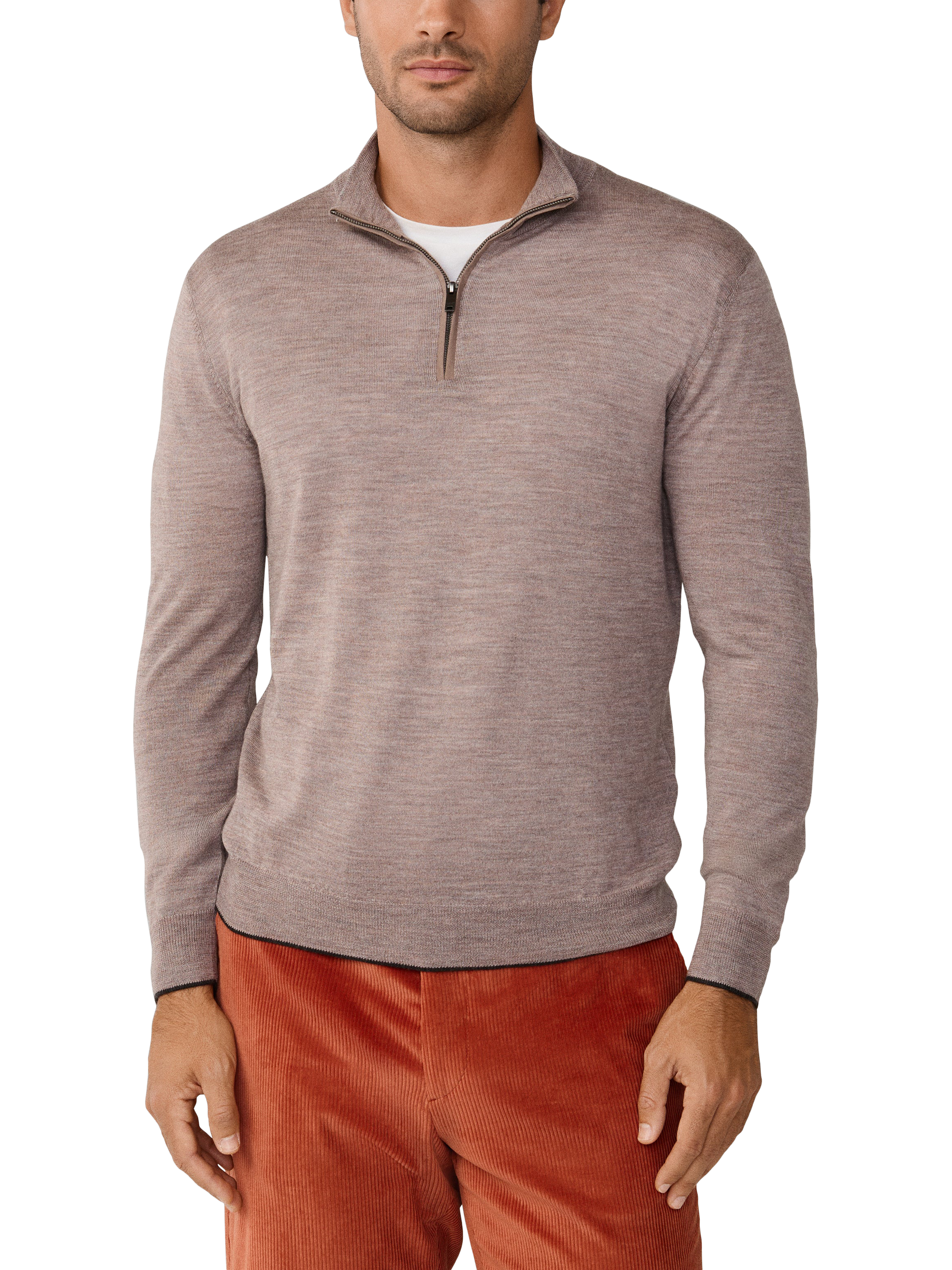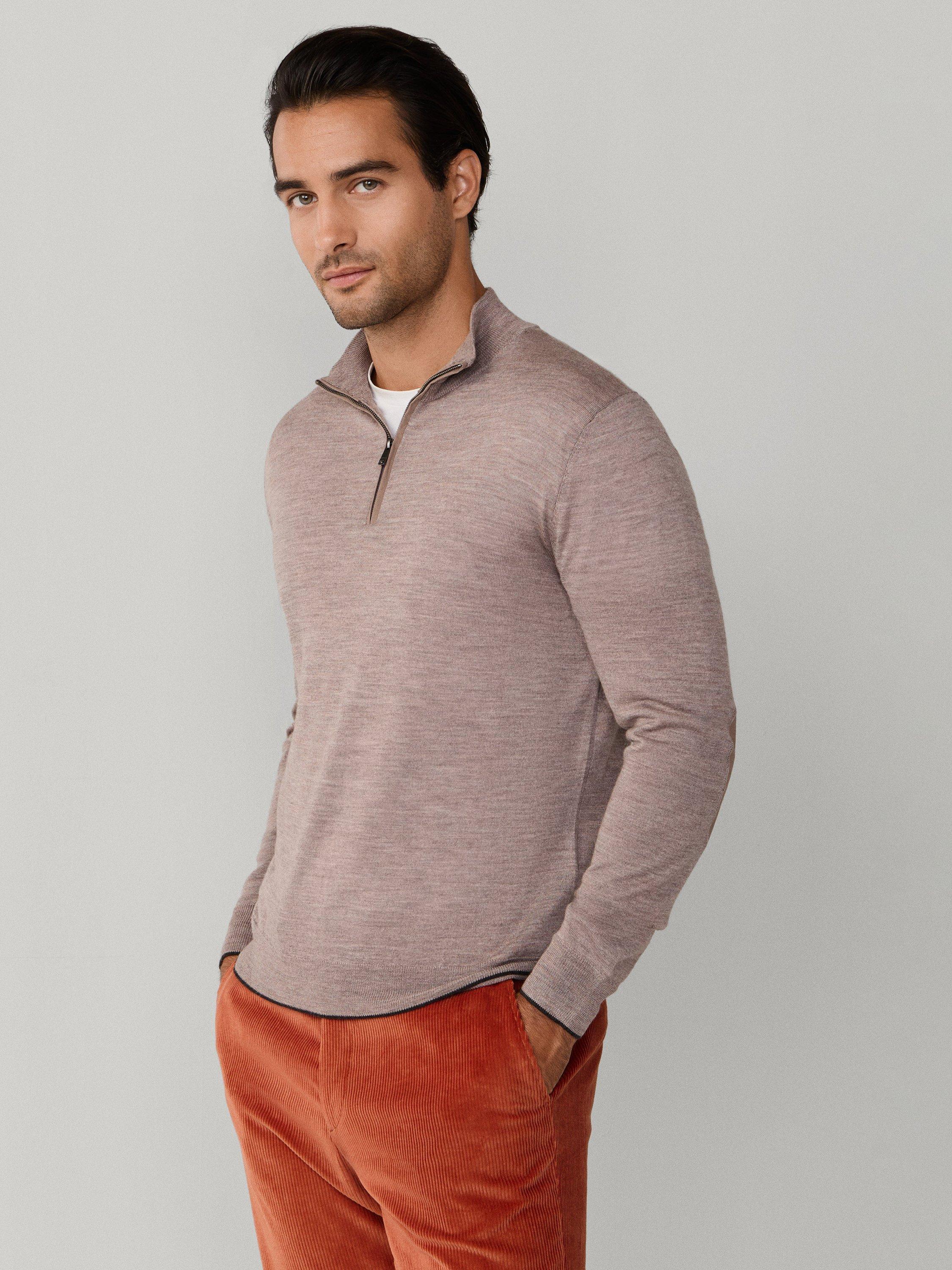 Crafted from a merino wool and silk blend, this lightweight quarter-zip jumper from Hackett London is a refined essential. This regular-fit piece features a tonal faux suede zip cover and elbow patches for a considered finish.