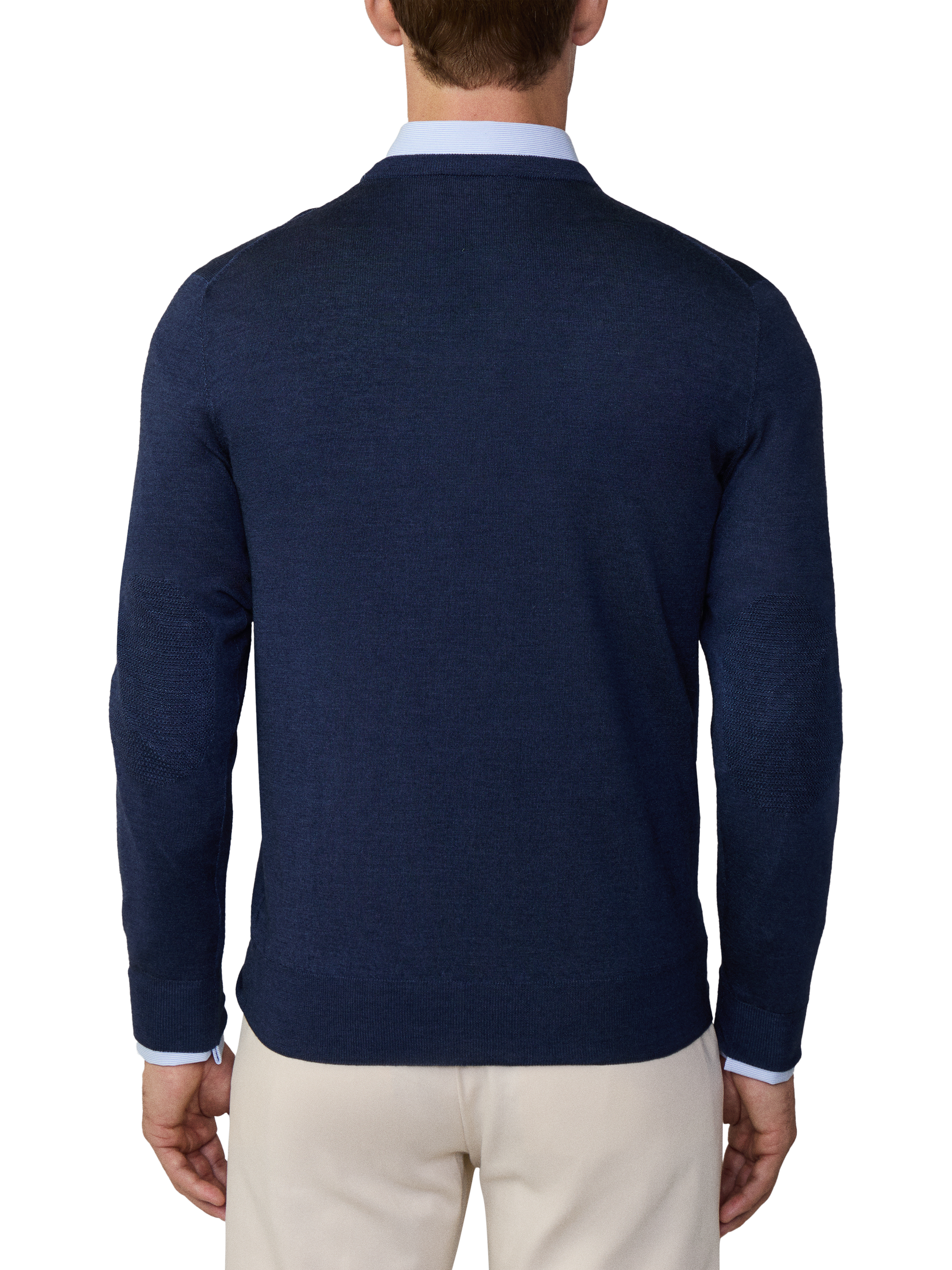 Refreshingly simple with its v-shaped neckline, this jumper from Hackett London is made from a merino wool and silk blend with ribbed detailing on the neck, cuffs and hem and elbow patches.