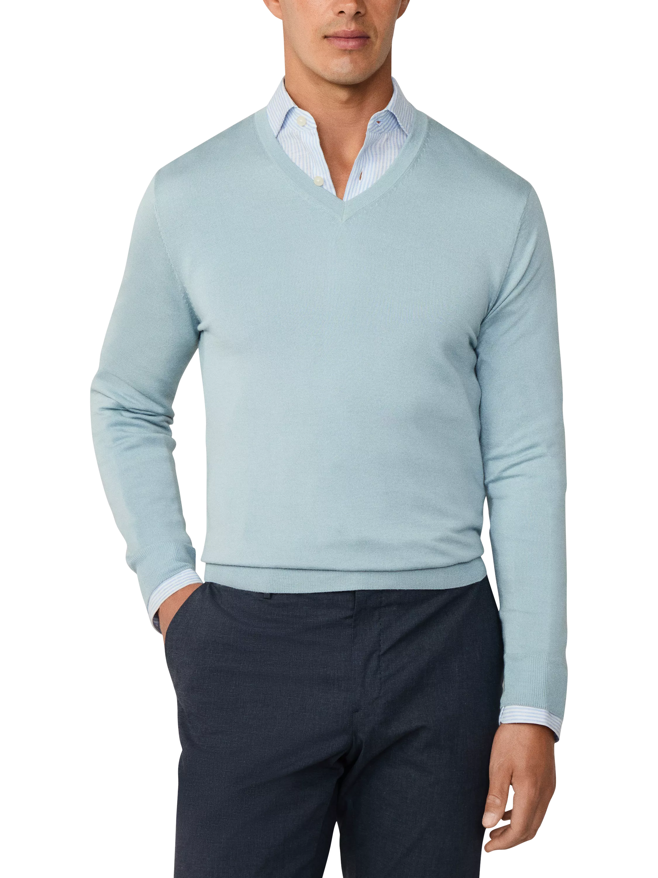 Spun from a merino wool and silk blend, this v-neck jumper from Hackett London features a ribbed detail on the neck, cuffs and hem and is complete with elbow patches.