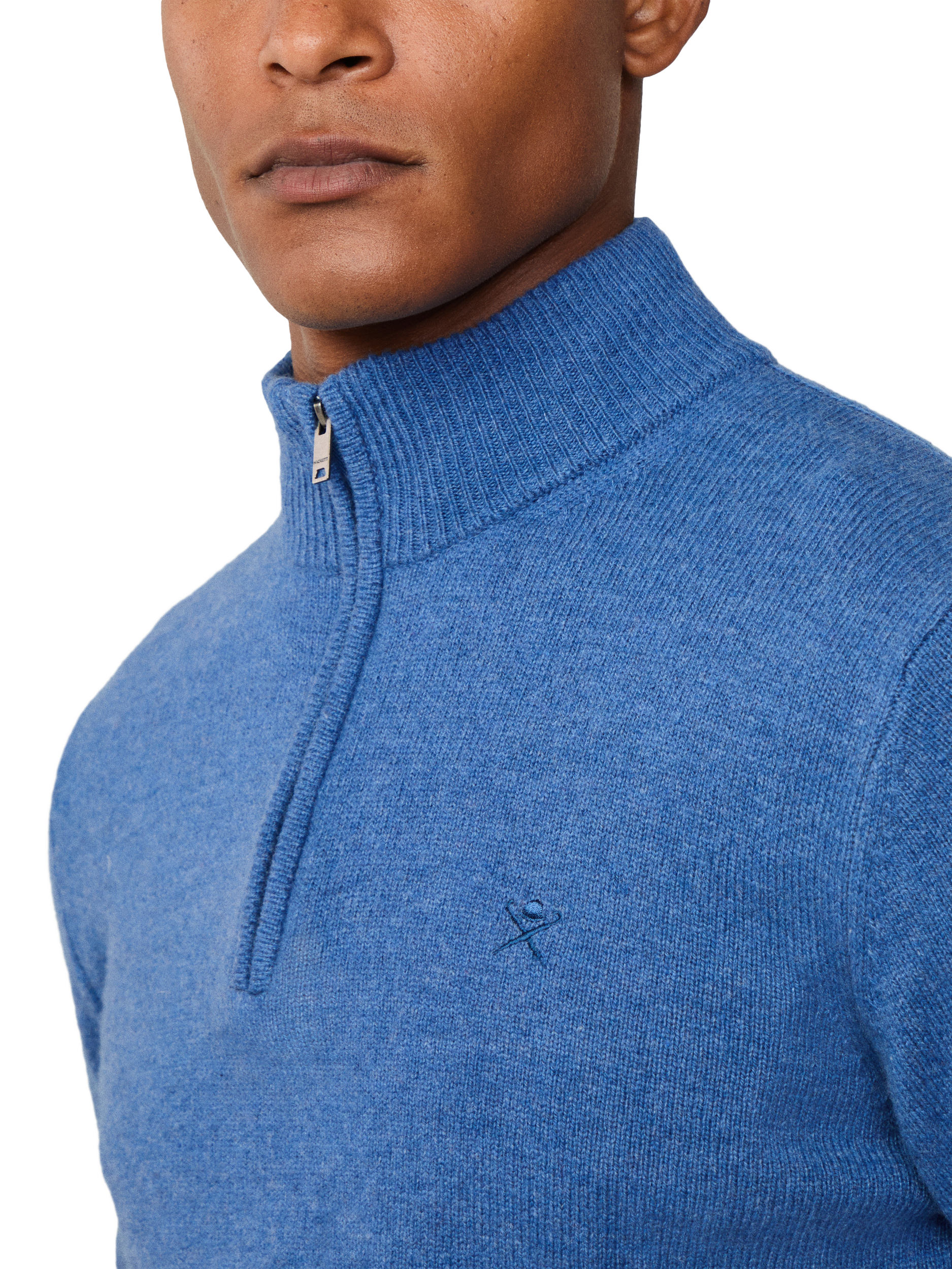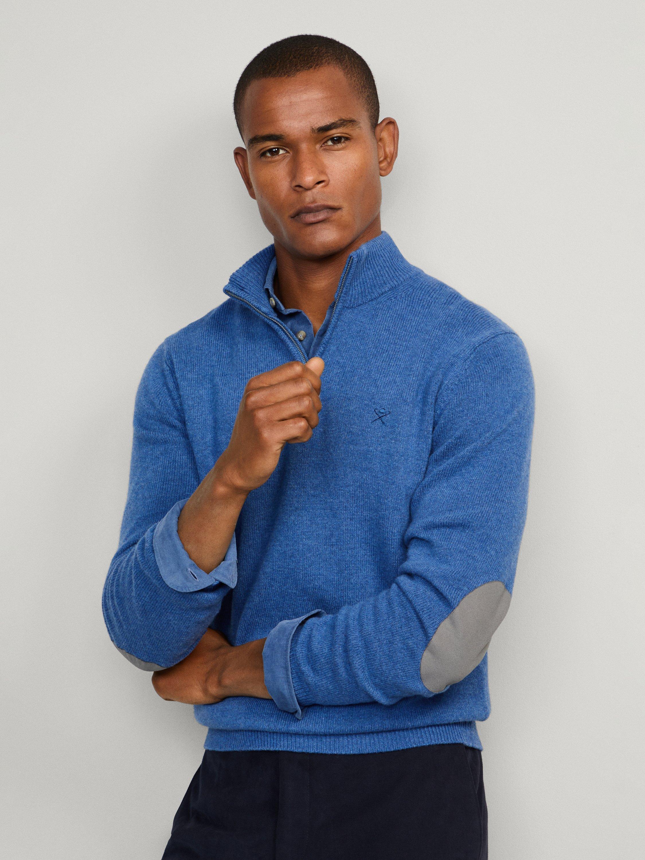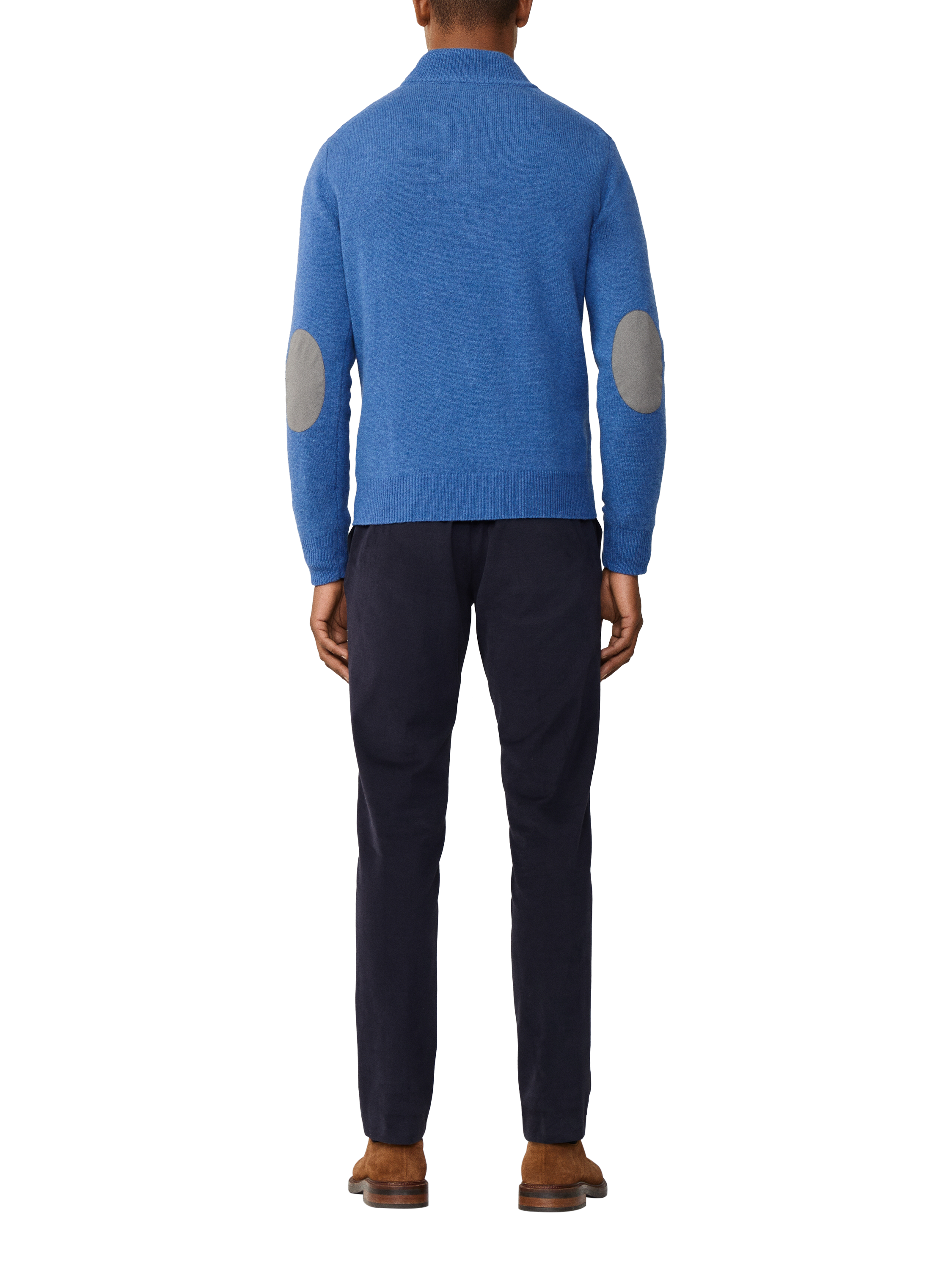 Cut to a regular fit, this quarter-zip jumper is crafted from soft lambswool for a premium feel. Fully fashioned with ribbed trims along the neckline, cuffs and hem, and finished with tonal chest embroidery and faux suede elbow patches.