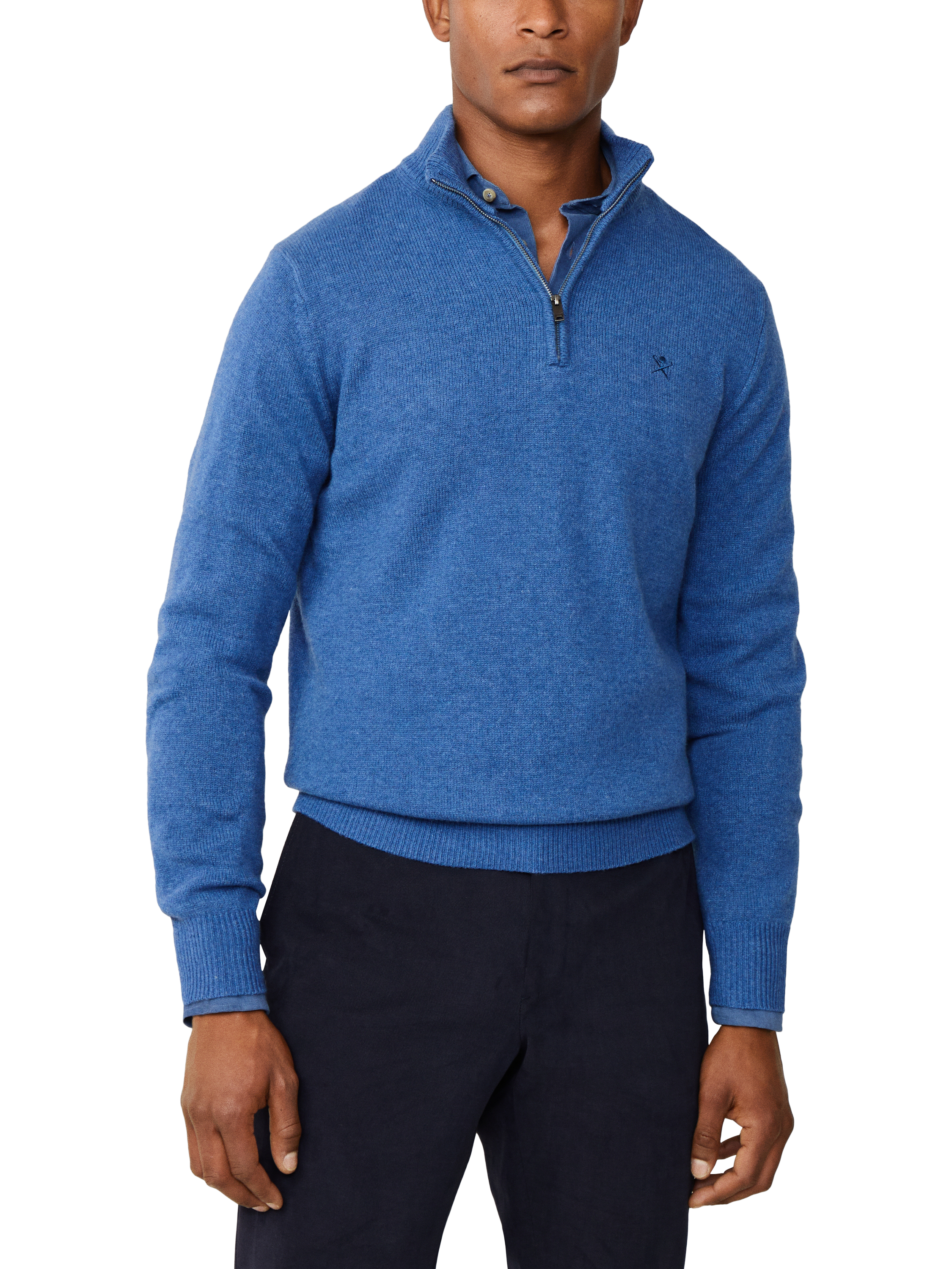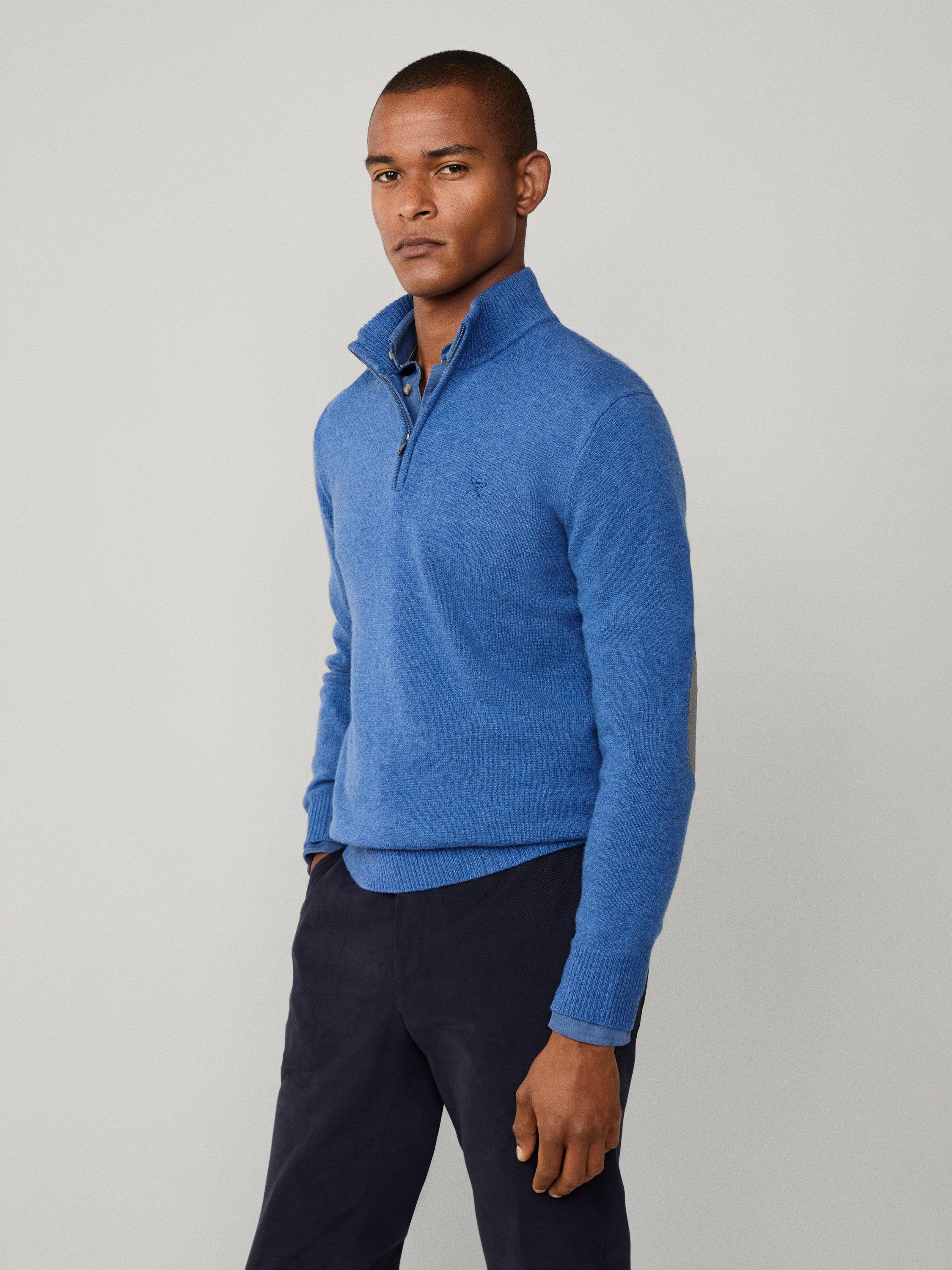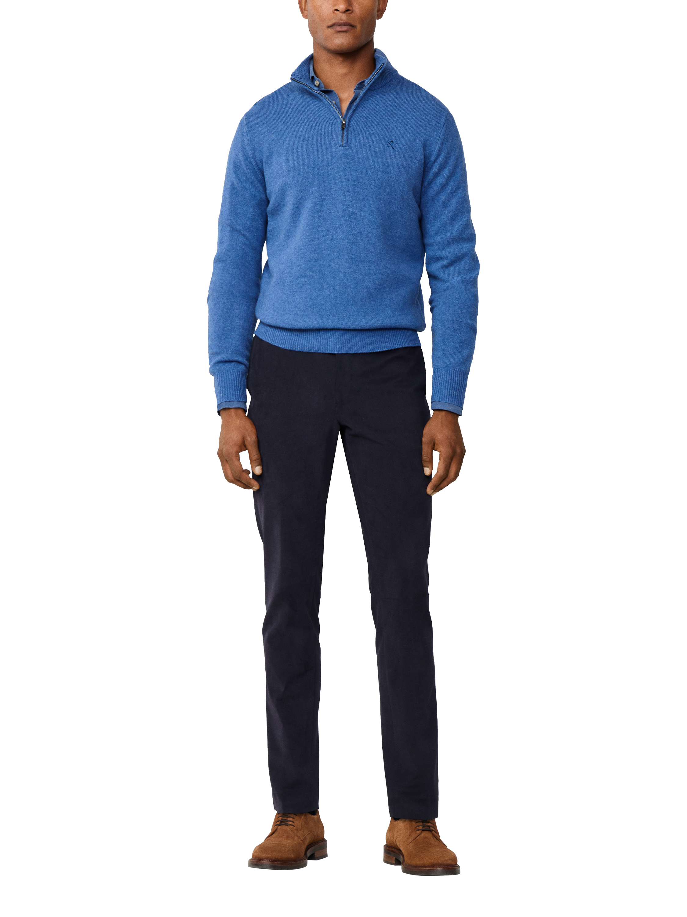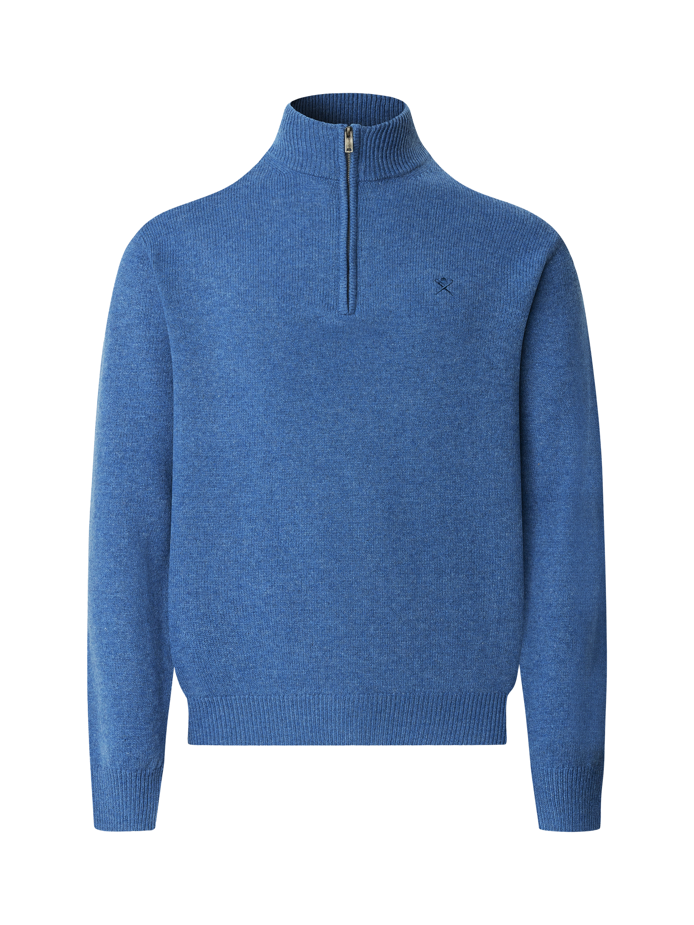 Cut to a regular fit, this quarter-zip jumper is crafted from soft lambswool for a premium feel. Fully fashioned with ribbed trims along the neckline, cuffs and hem, and finished with tonal chest embroidery and faux suede elbow patches.