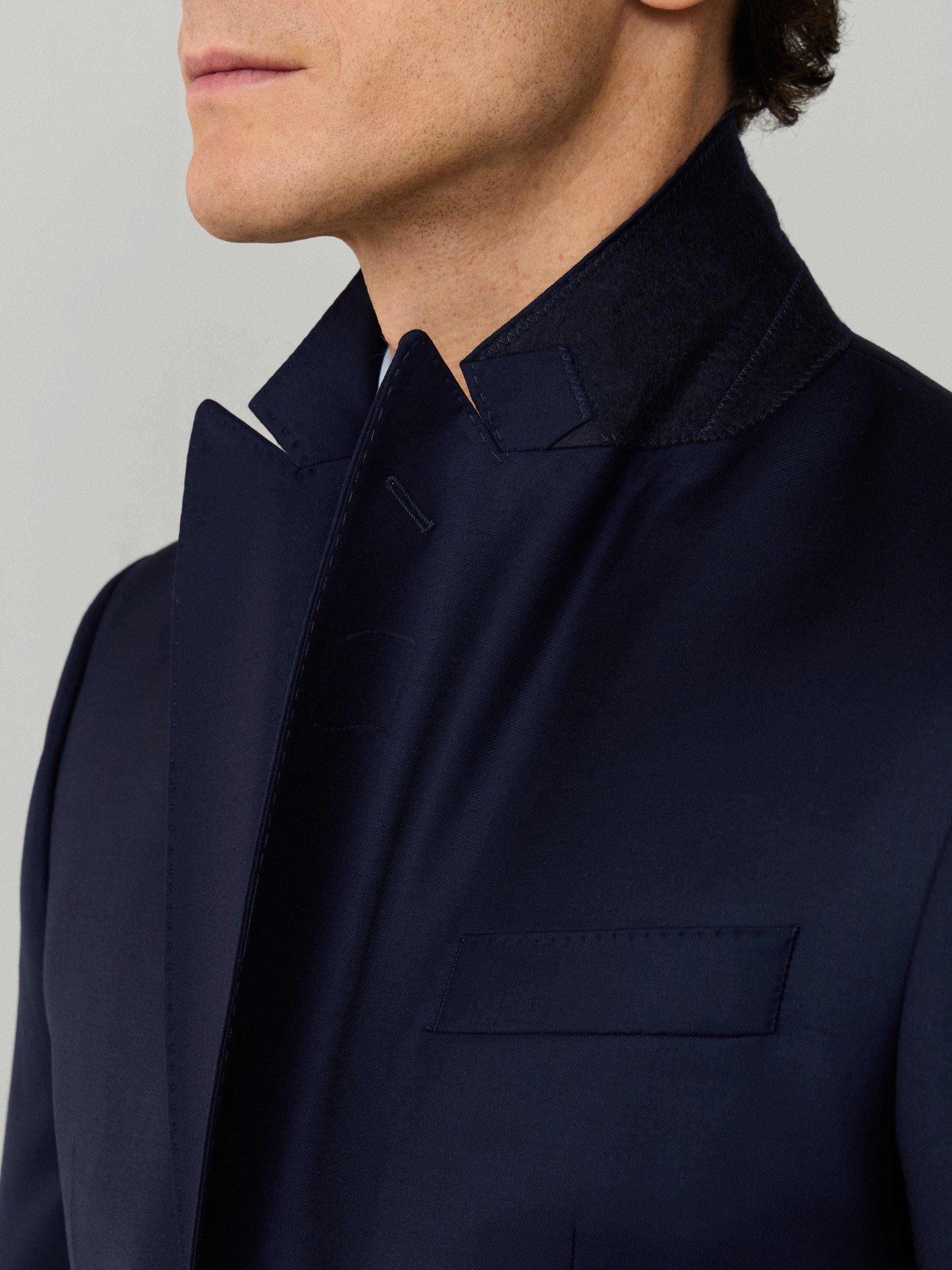 A single-breasted tailored blazer by Hackett London. Crafted from refined plain wool twill with natural stretch, it offers sharp structure and day-to-evening versatility.
