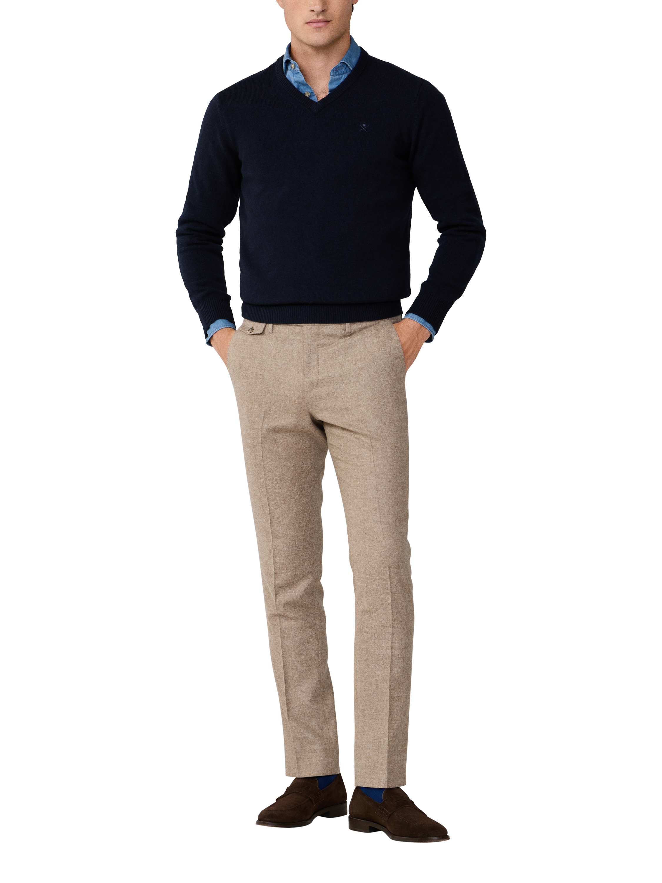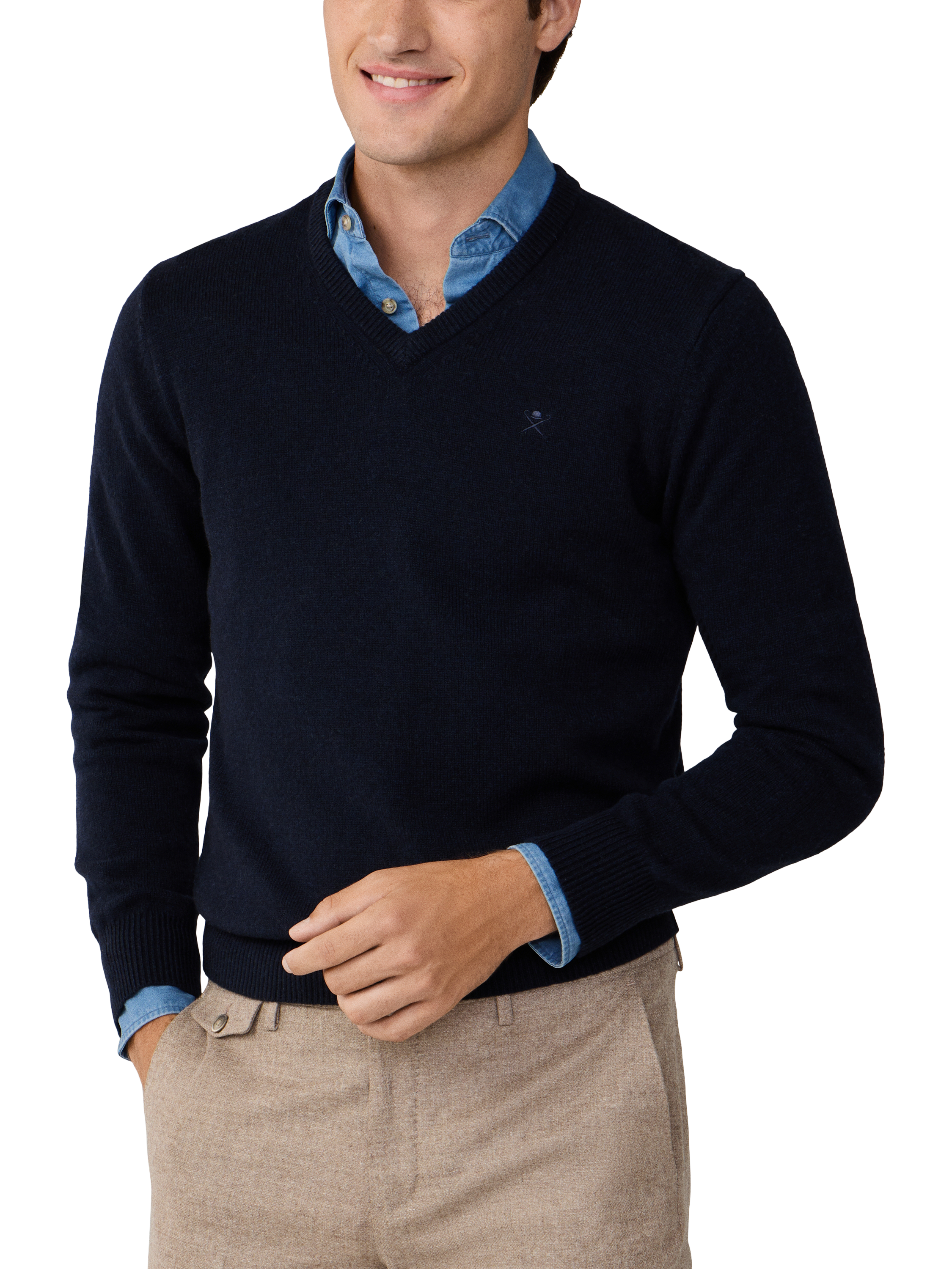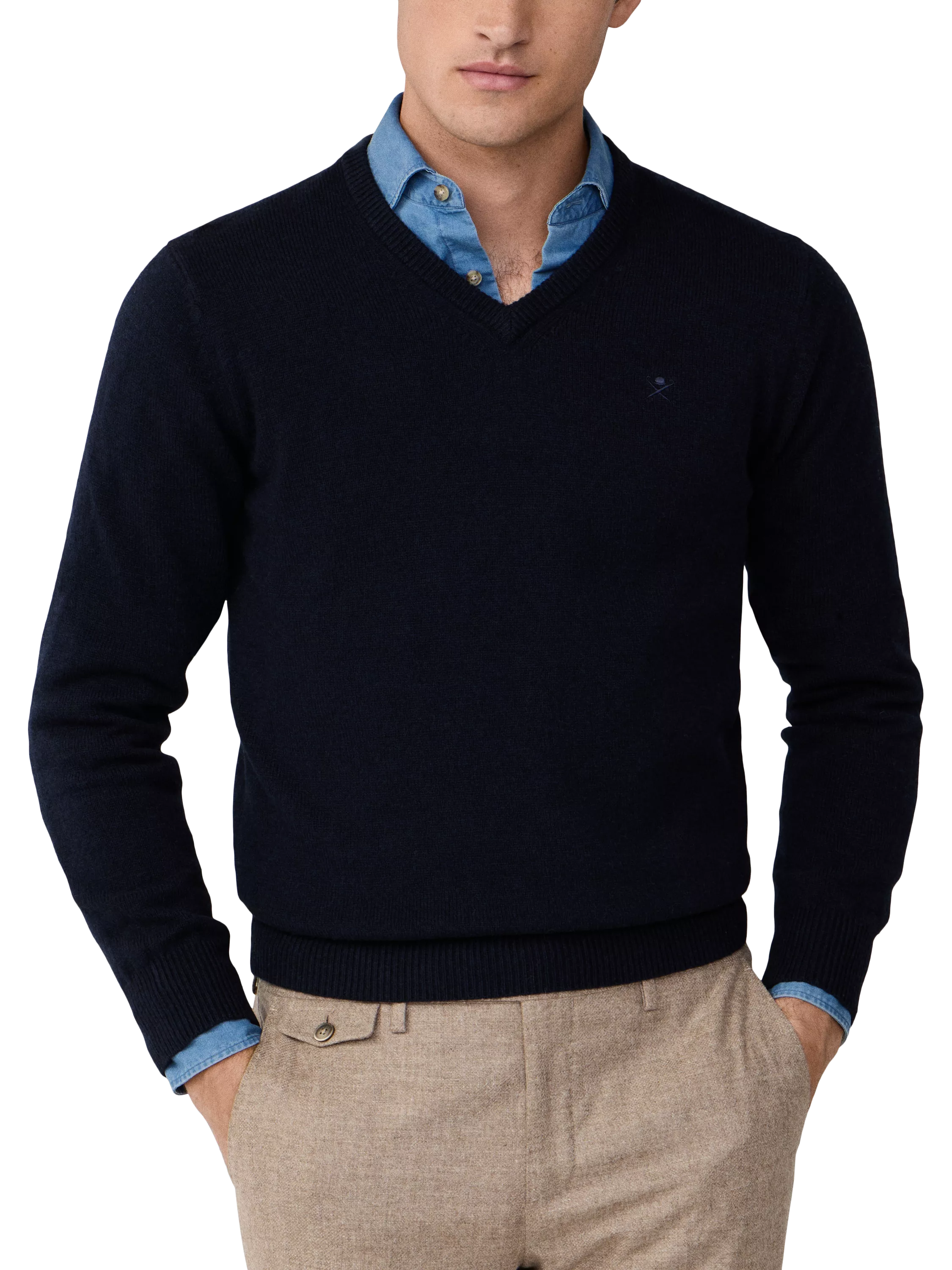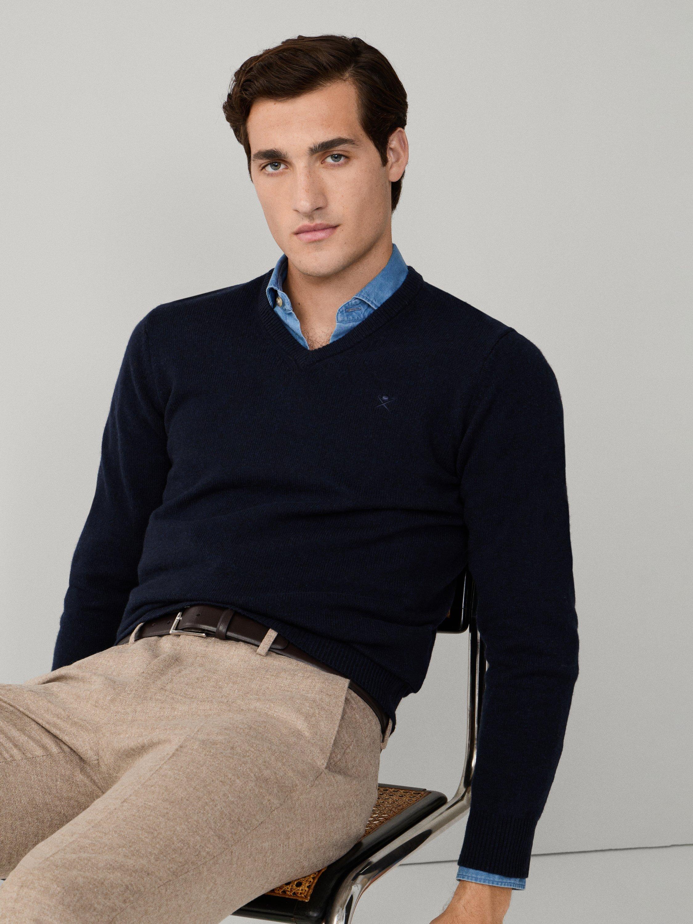 Hackett LondonPure Wool V-Neck Jumper, Midnight Blue
