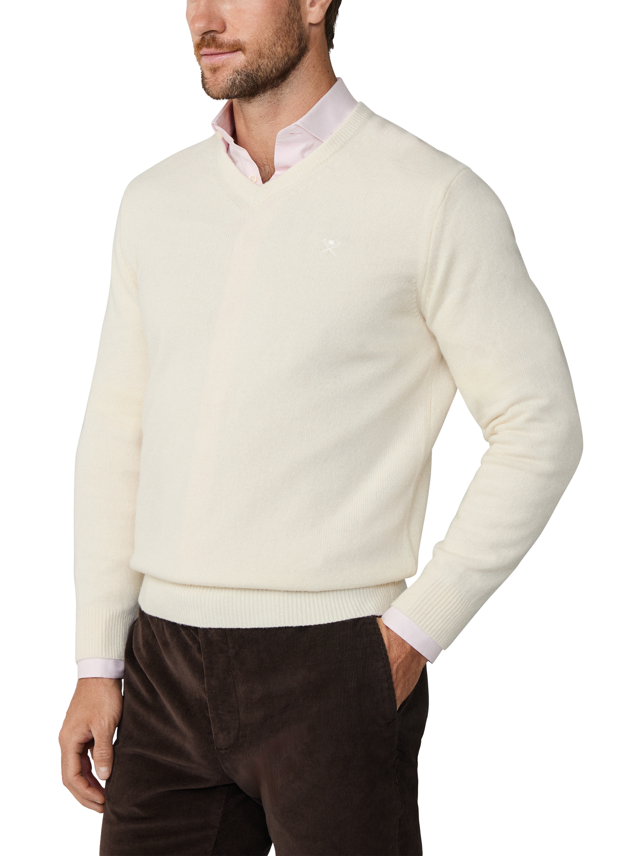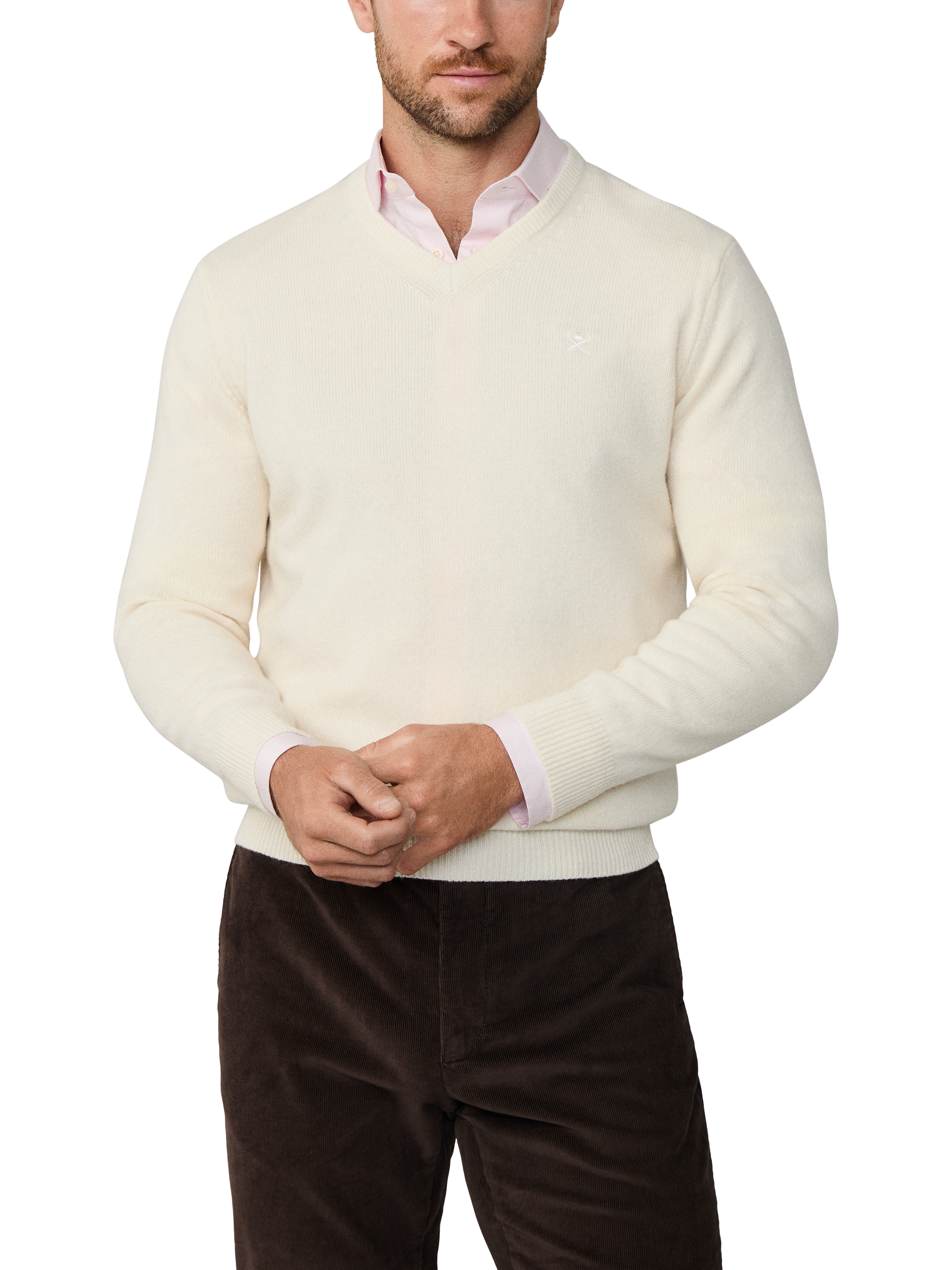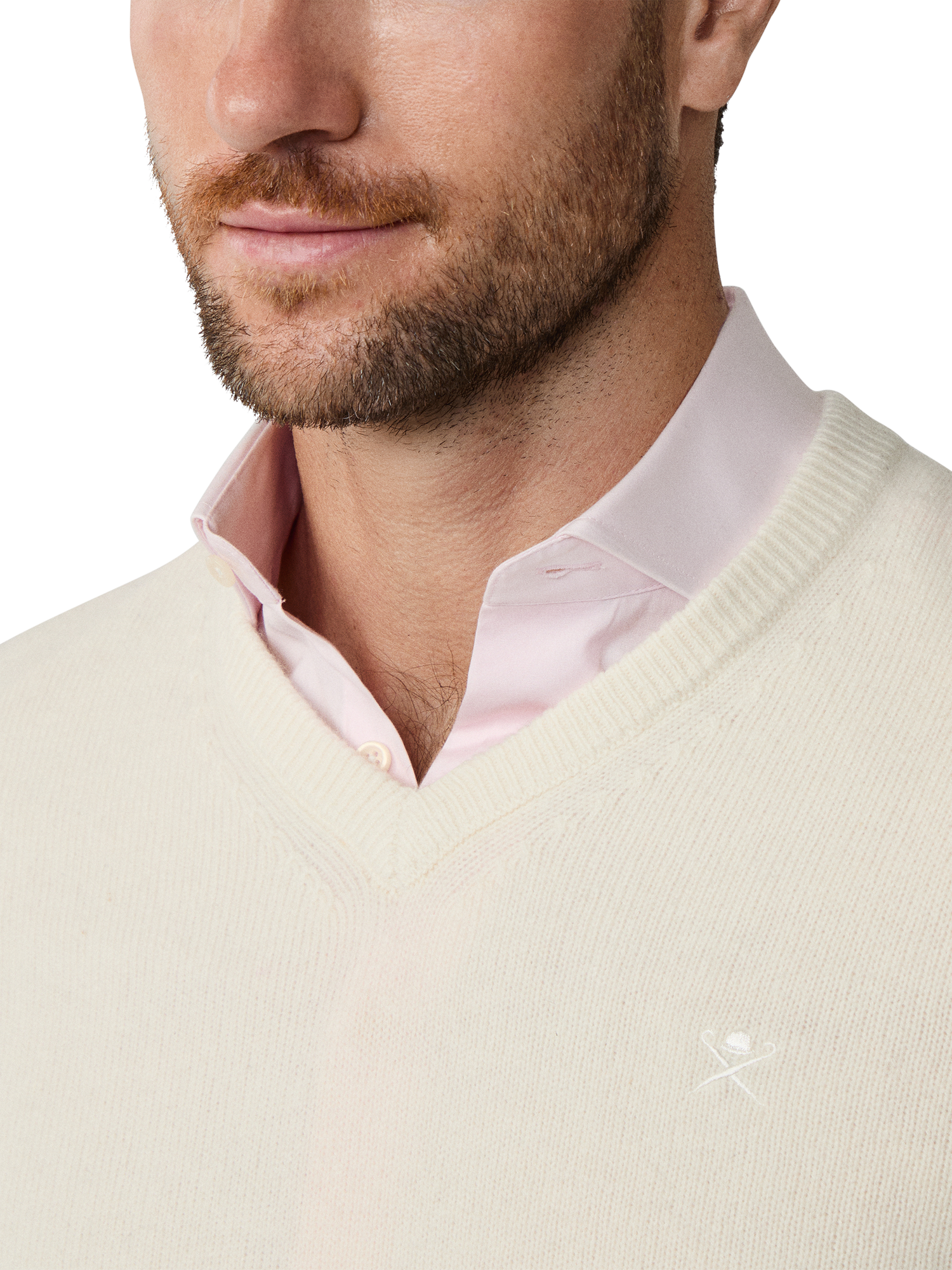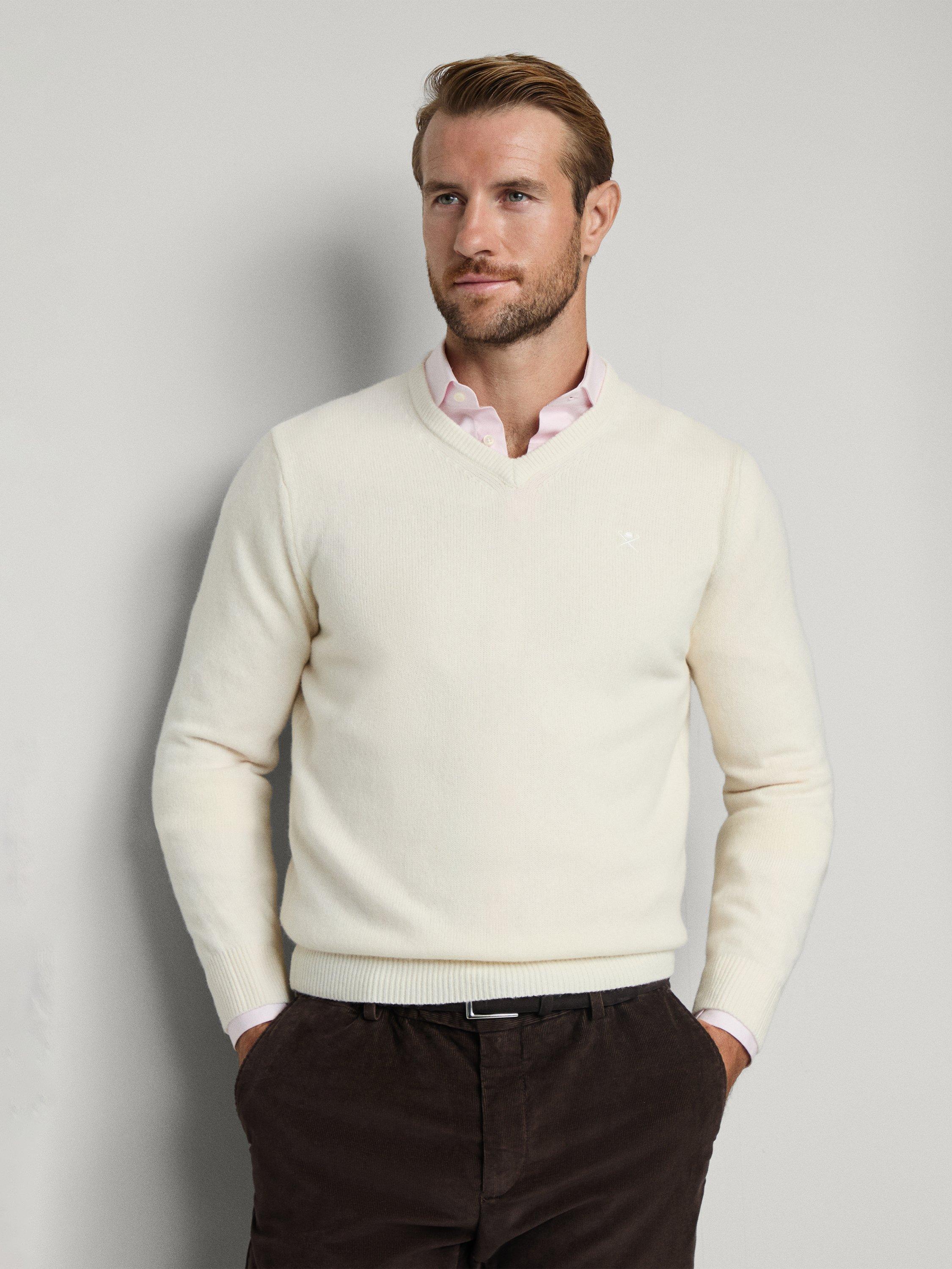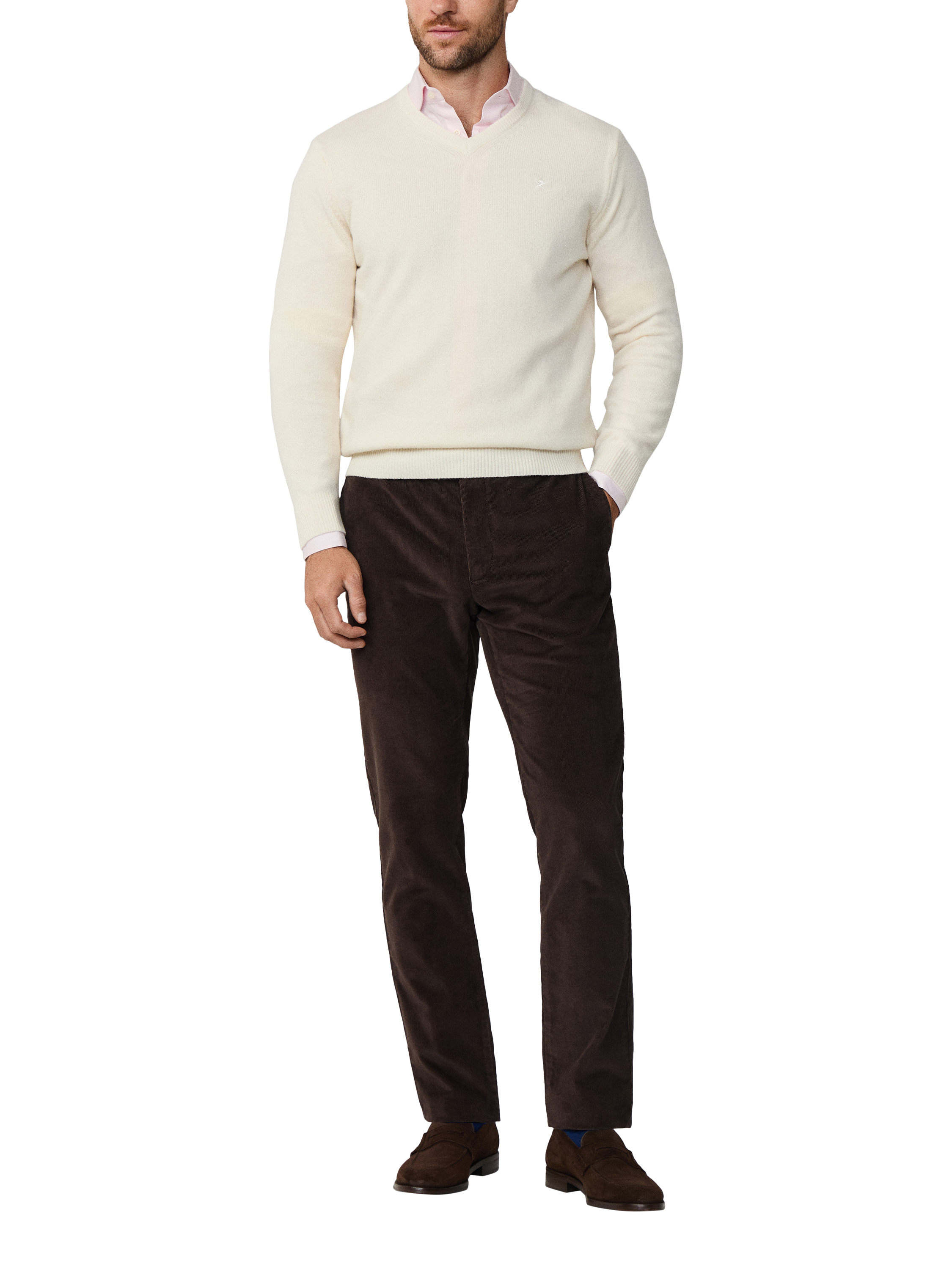 Cut to a regular, fit this V-neck jumper is crafted in premium lambswool for a premium feel. Features ribbed trims along the neckline, cuffs and hem, and finished with a tonal embroidered logo on the chest.
