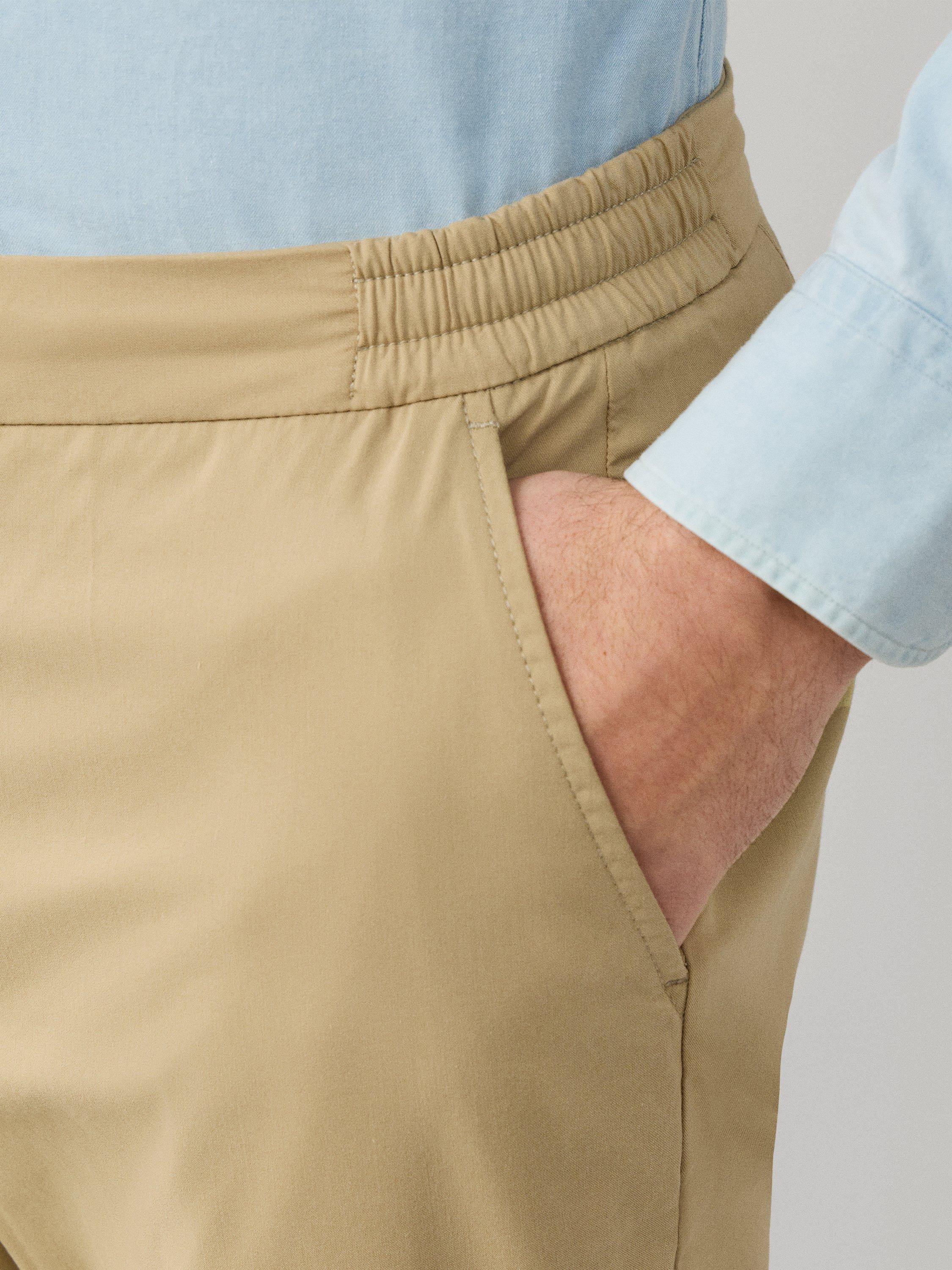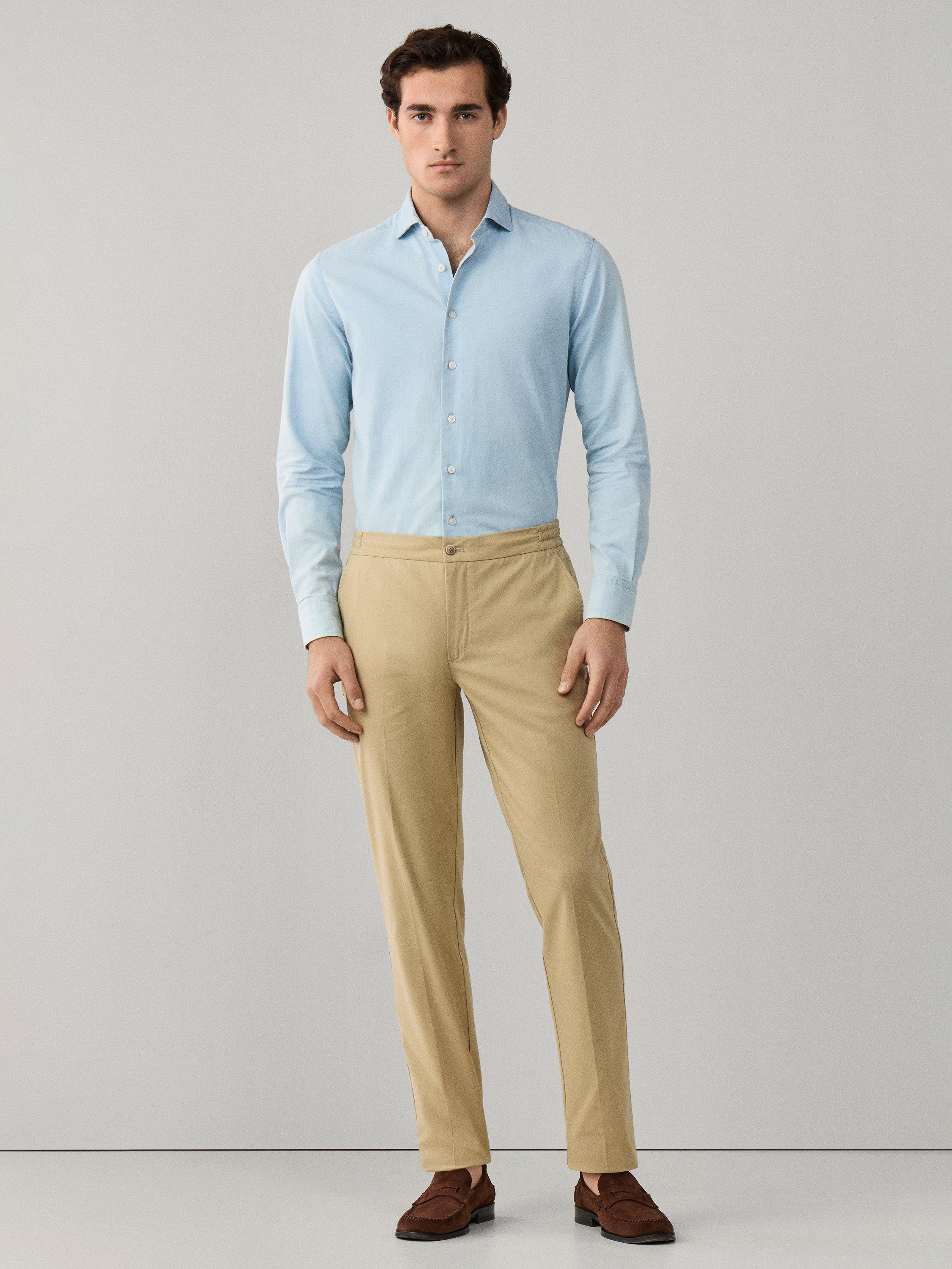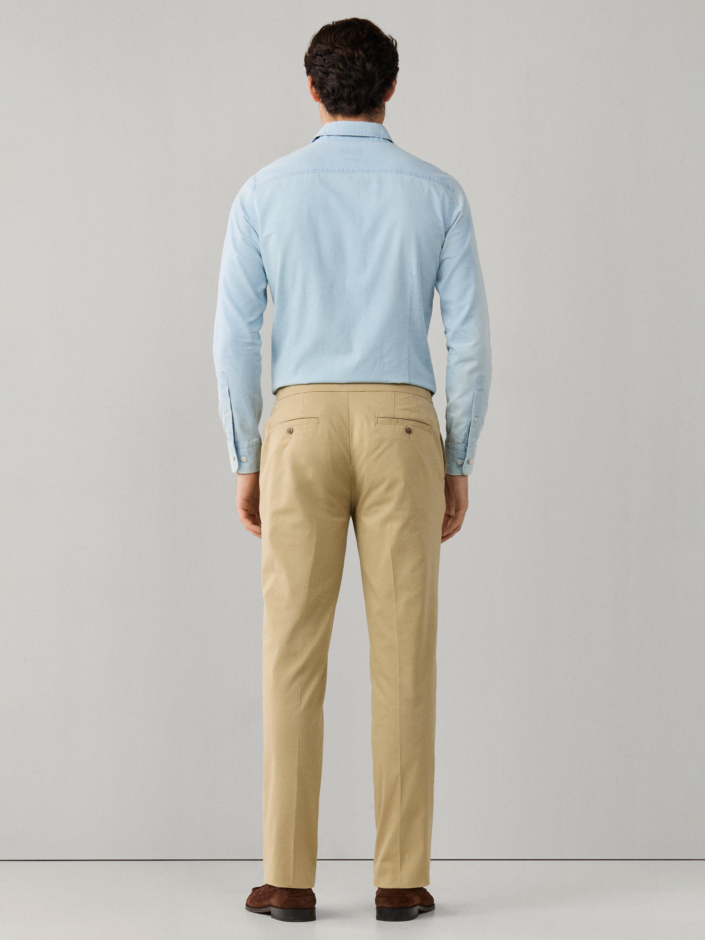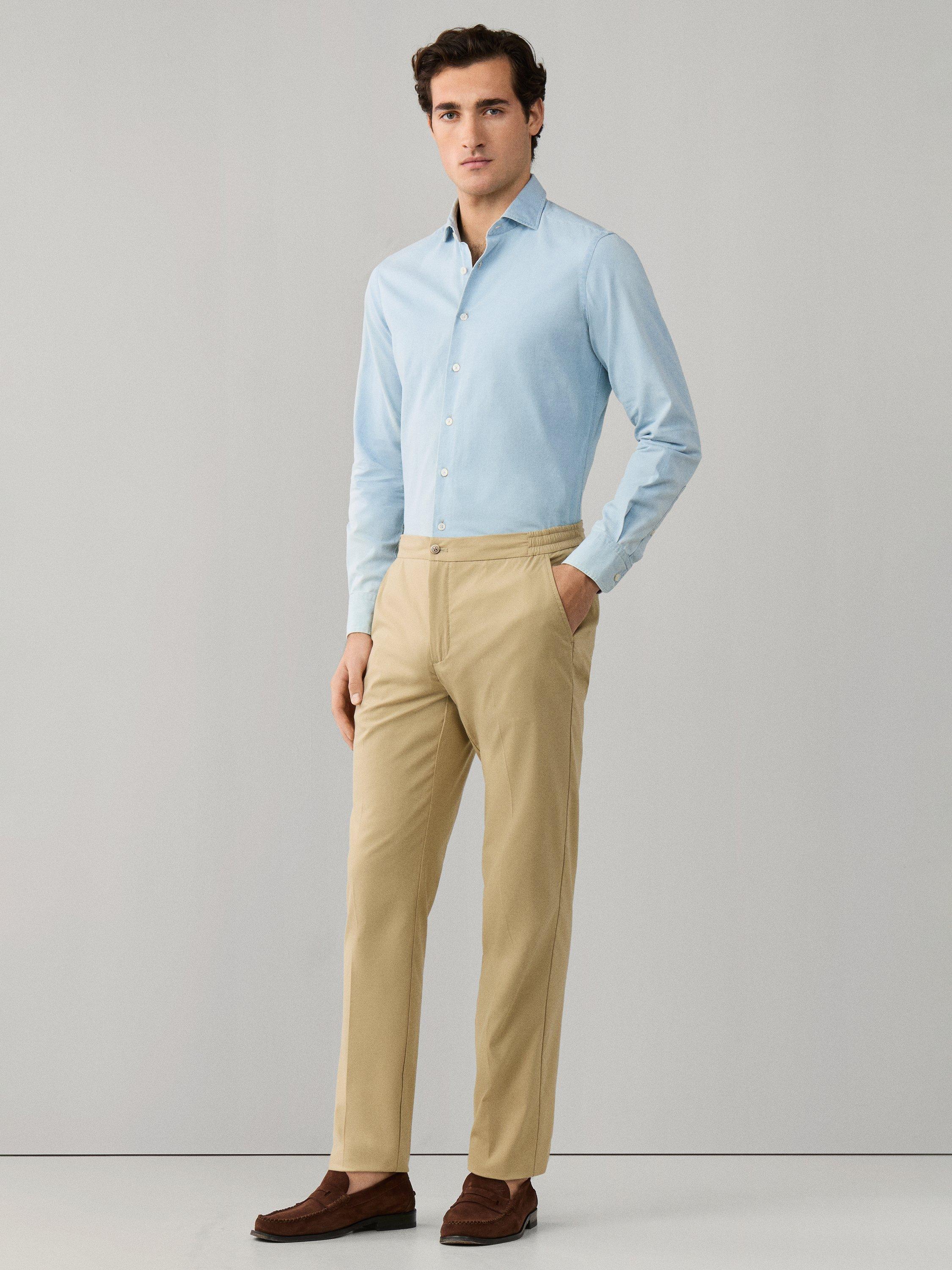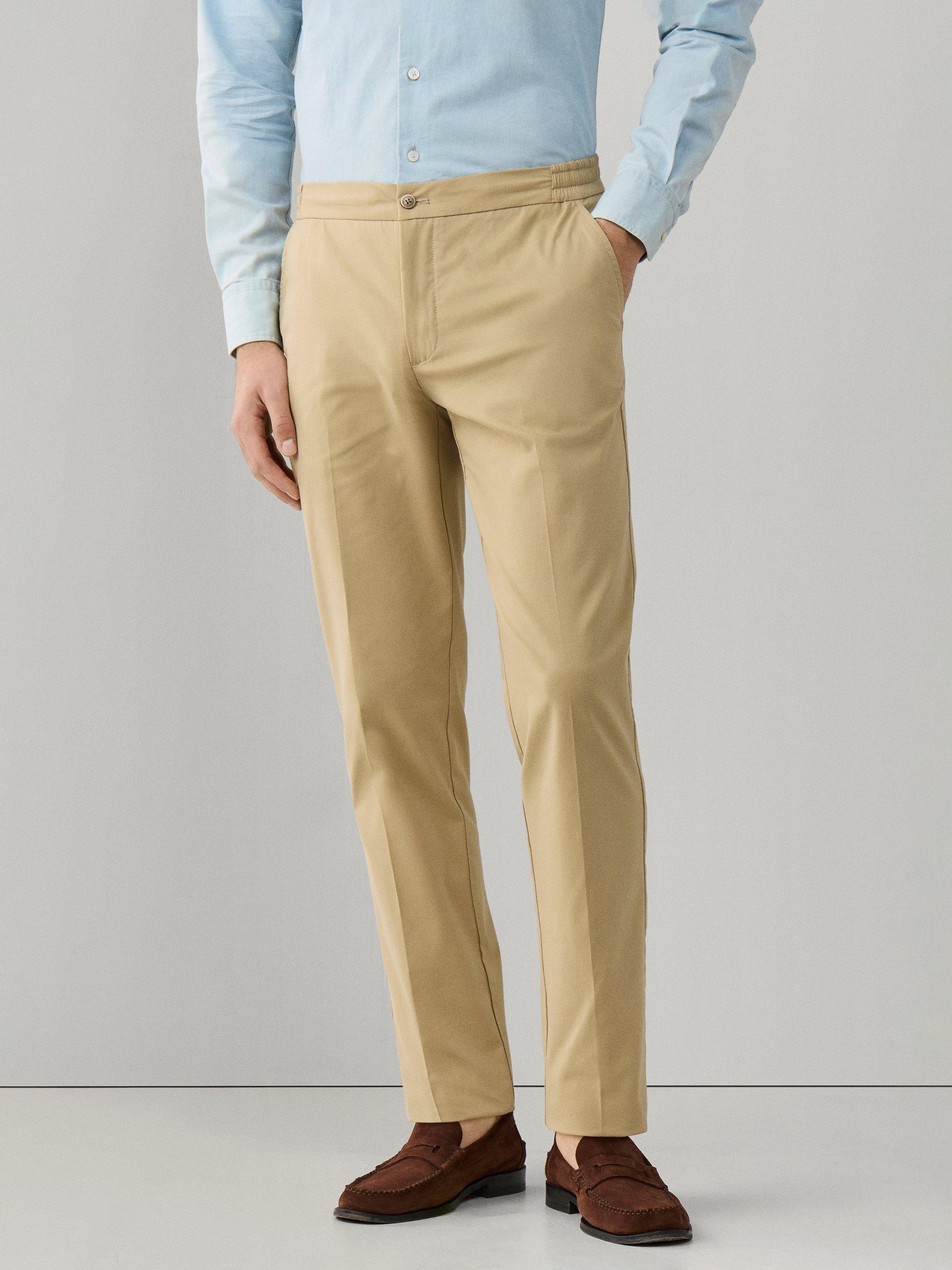 Relaxed Fit Chinos with belt loops, zip fly, angled front welt pockets, forward pleats and side elasticated waistband. Designed for warmer days, this trouser uses a light, cotton stretch with Coolmax properties for ultimate breathability.