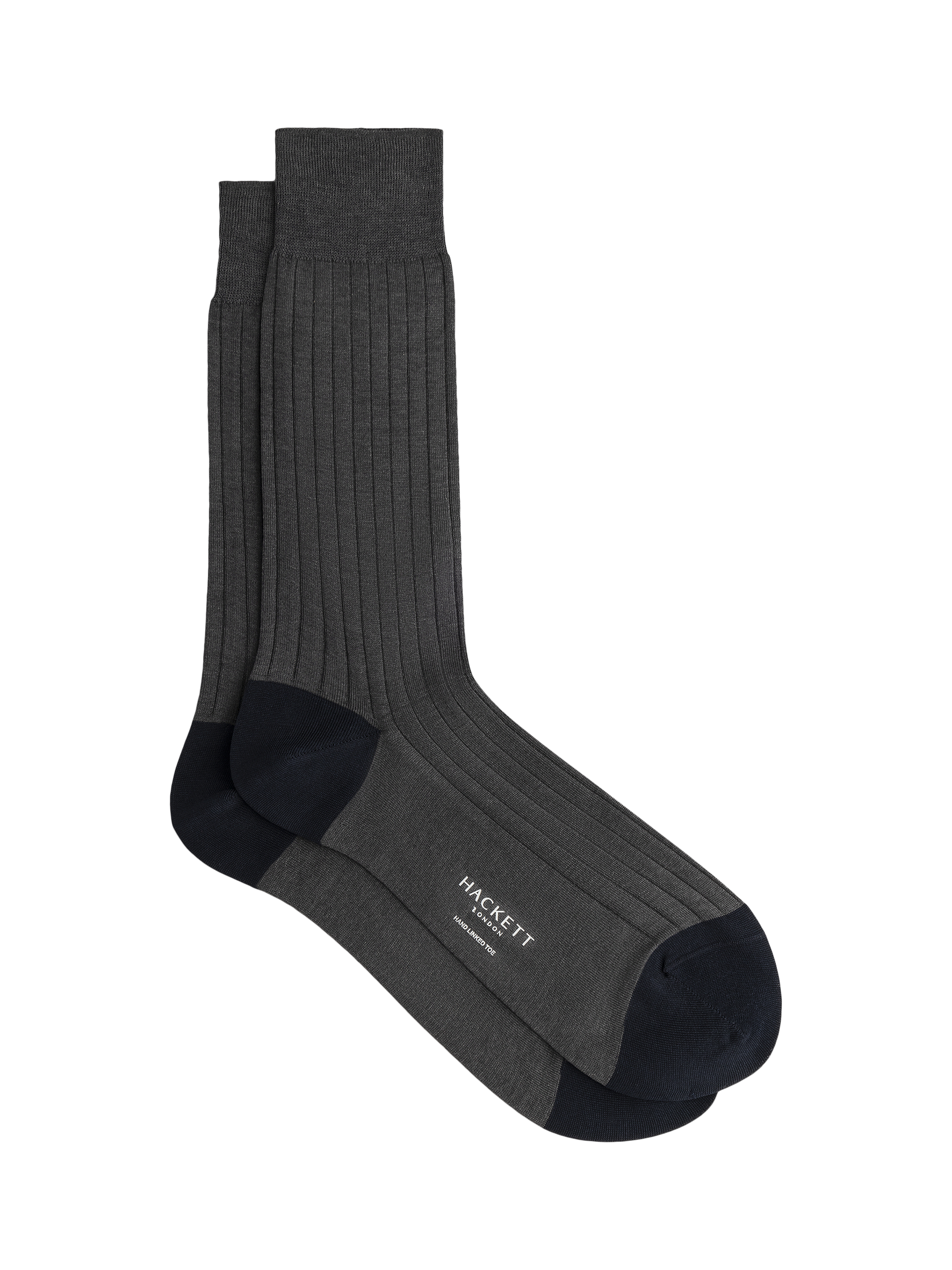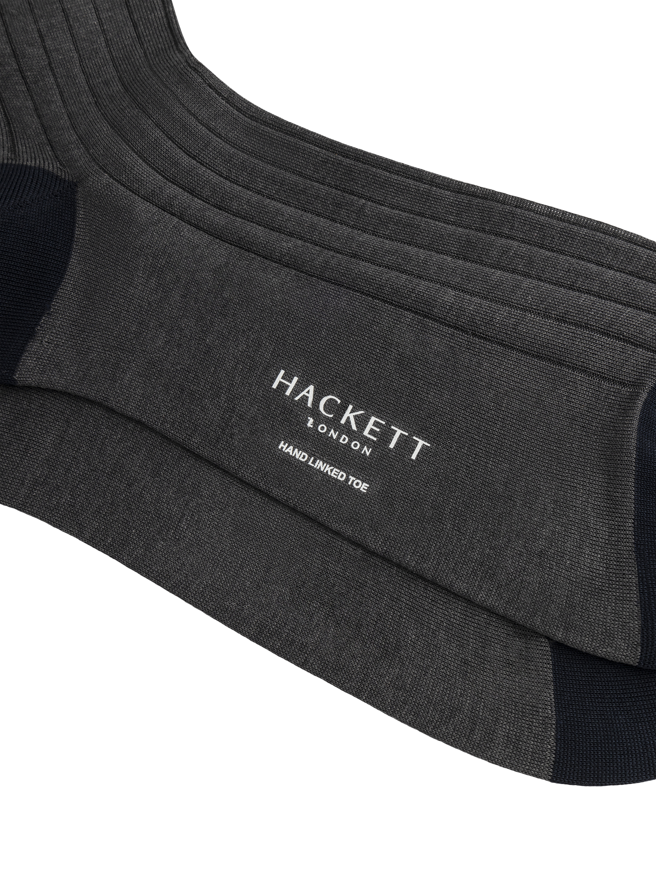 These socks from Hackett London are made from 100% mercerised cotton with a ribbed texture, and contrasting heel and toe colour. They're finished with the brand's logo at the arch.