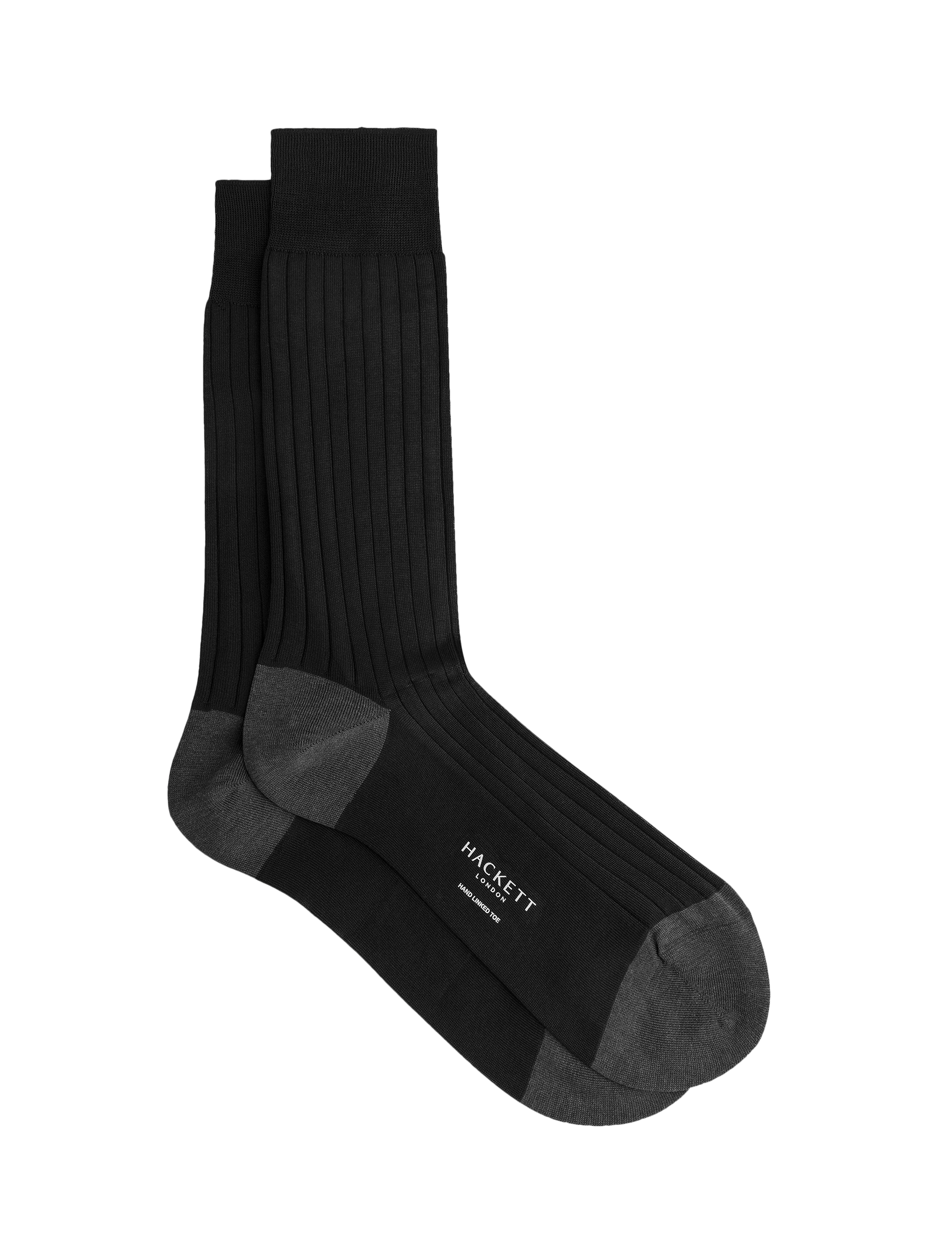 These socks from Hackett London are made from 100% mercerised cotton with a ribbed texture, and contrasting heel and toe colour. They're finished with the brand's logo at the arch.