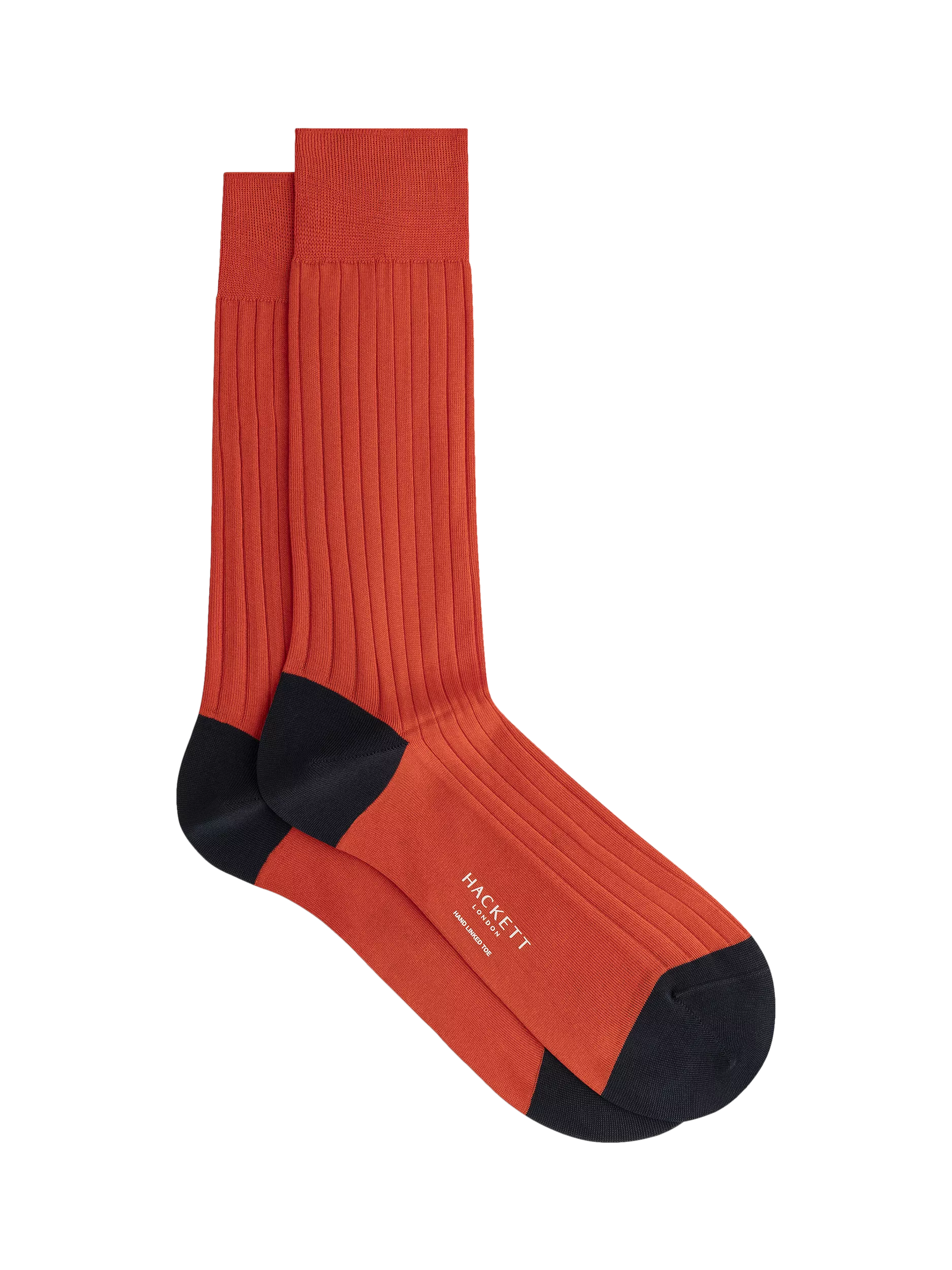 These socks from Hackett London are made from 100% mercerised cotton with a ribbed texture, and contrasting heel and toe colour. They're finished with the brand's logo at the arch.