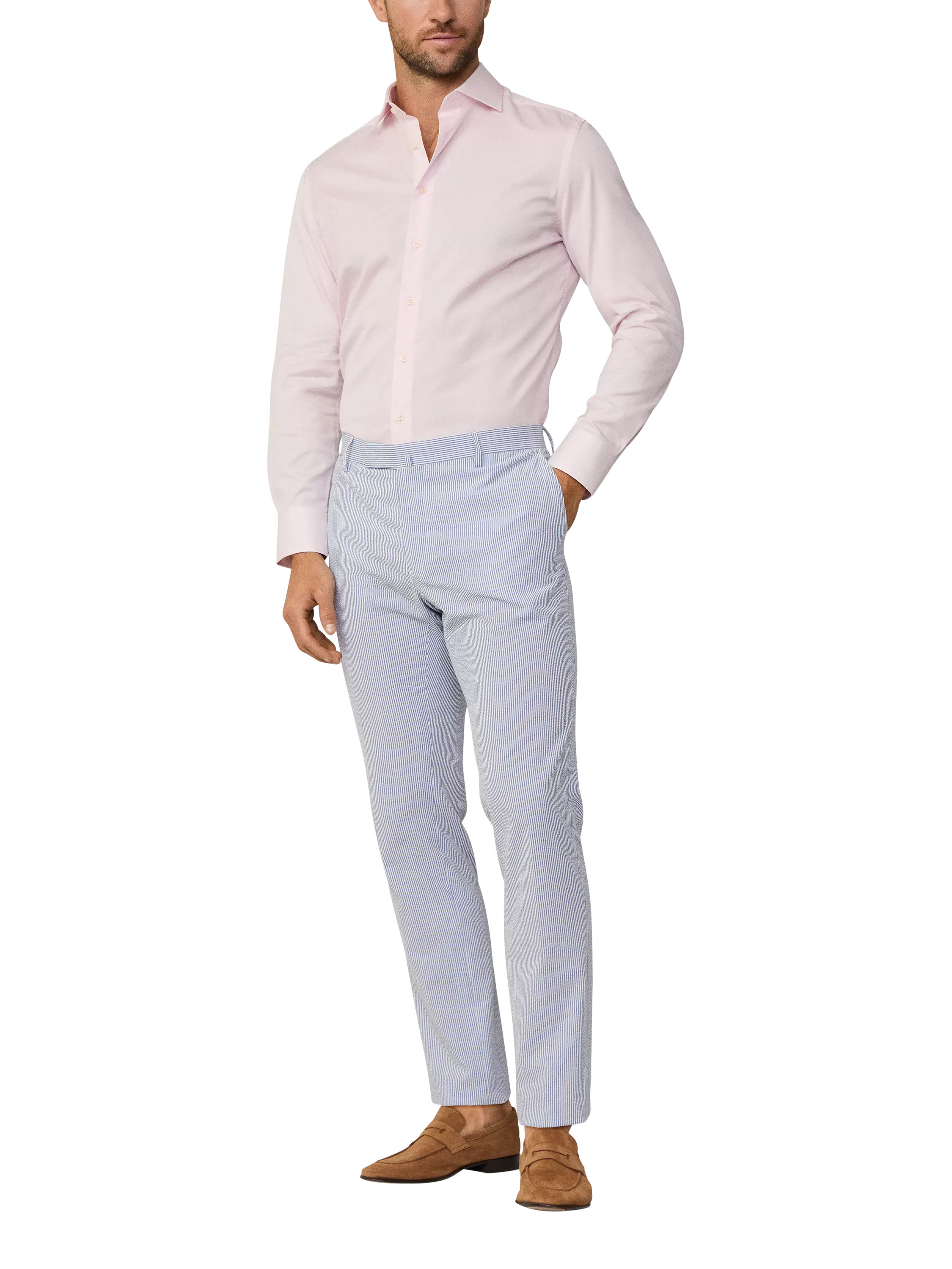Solid colour cotton shirt in a slim fit. Made of smooth and crisp poplin cotton, this long-sleeved shirt features a cutaway Kent collar, French placket, back yoke and buttoned cuffs.