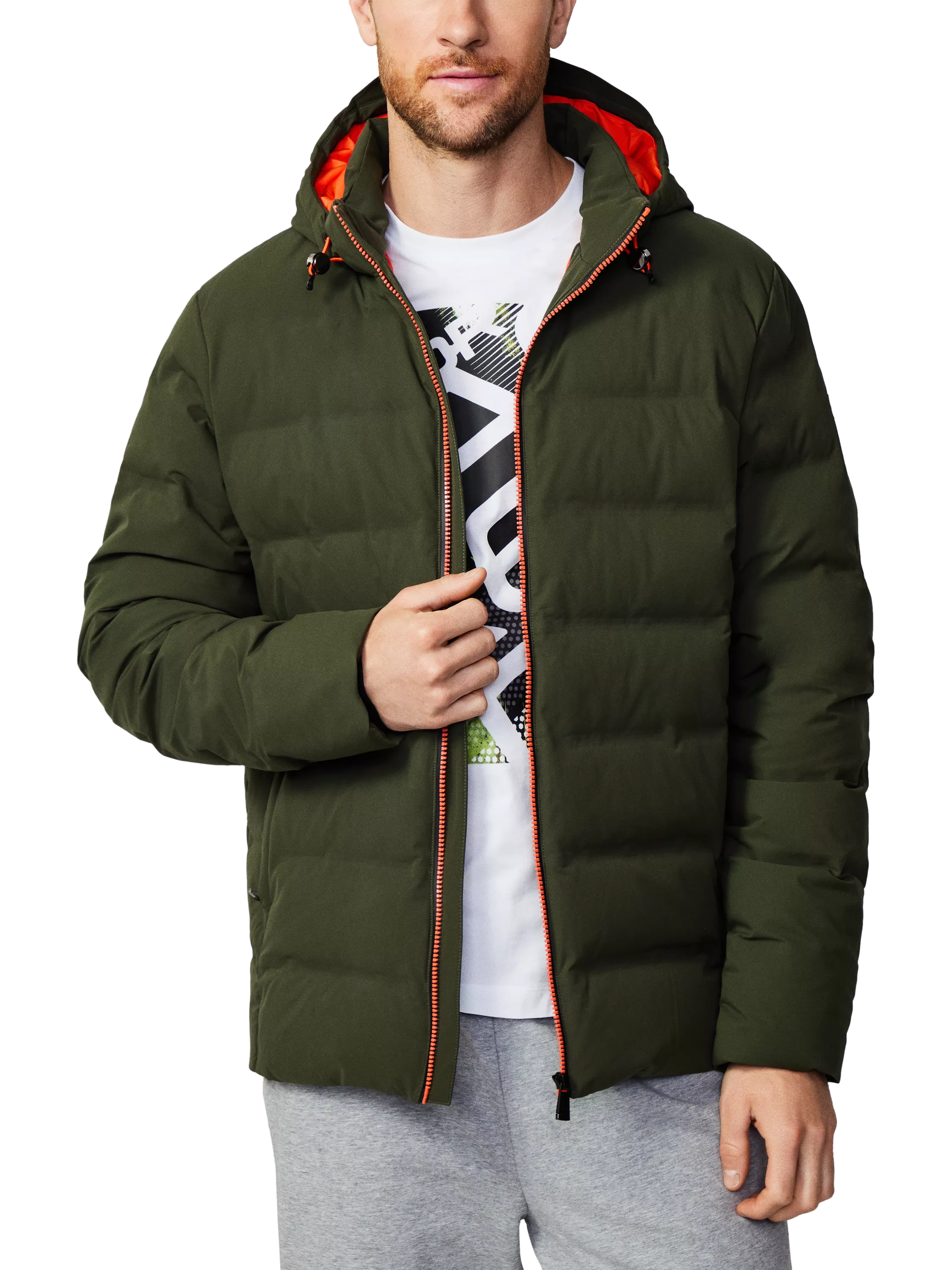 Constructed with a detachable and adjustable drawstring hood, it's complete with a contrast lining, zipped side pockets and an Aqua Guard zip front closure.