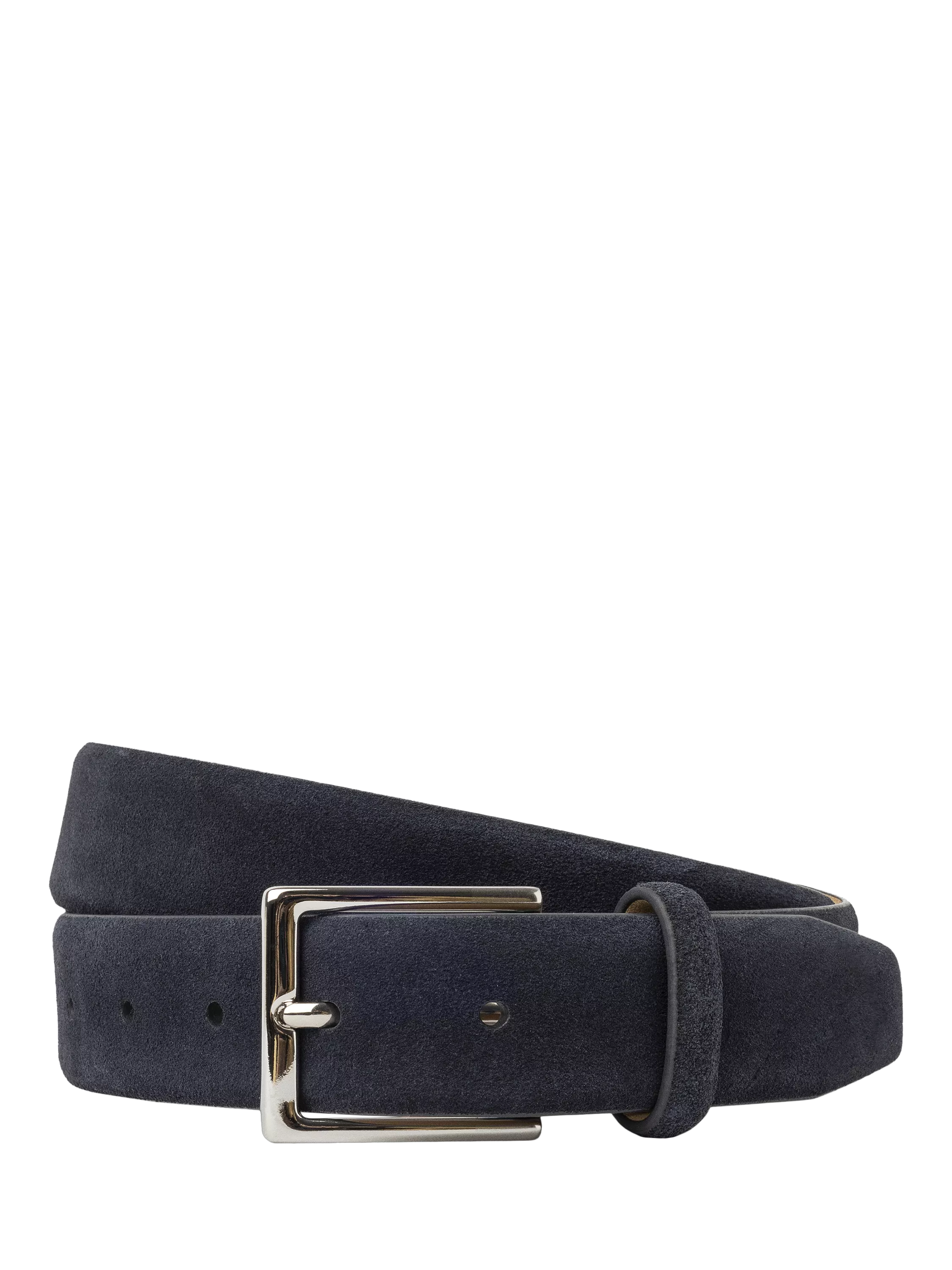 Add a touch of distinction to smart outfits with this smooth suede belt with a feather-edge finish and polished silver buckle.