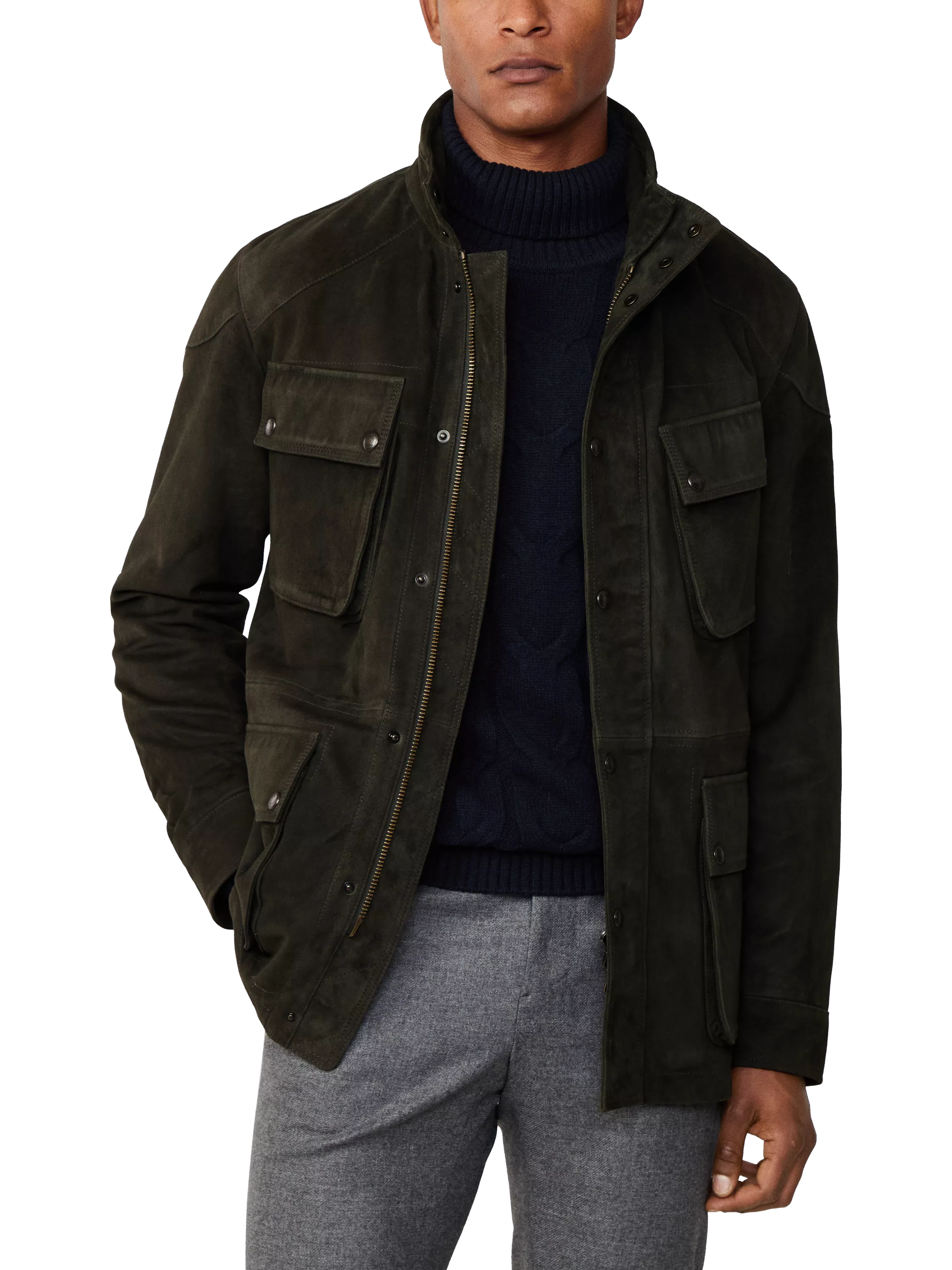 Hackett LondonSuede Four Pocket Velospeed Jacket, Forest Night Green