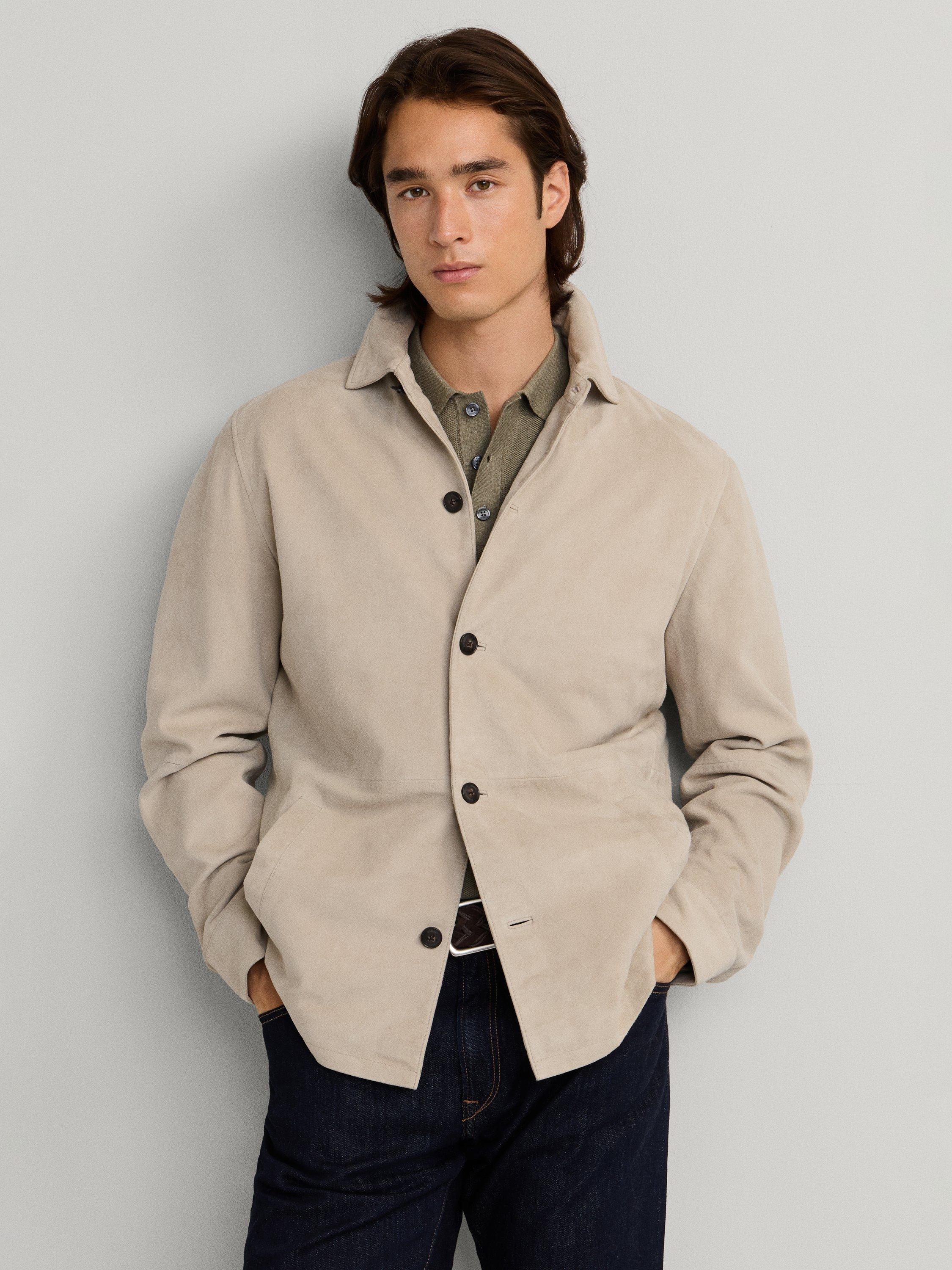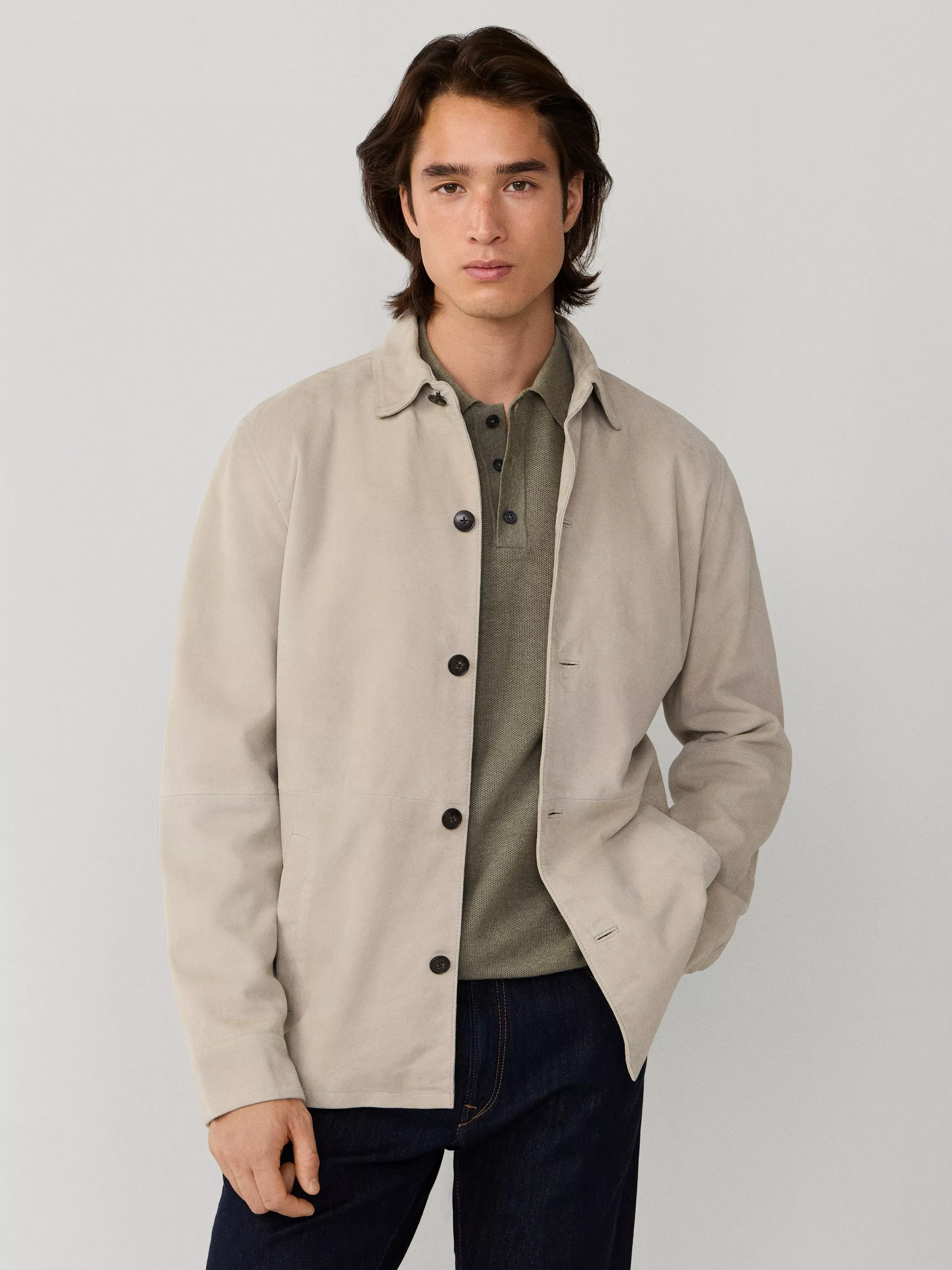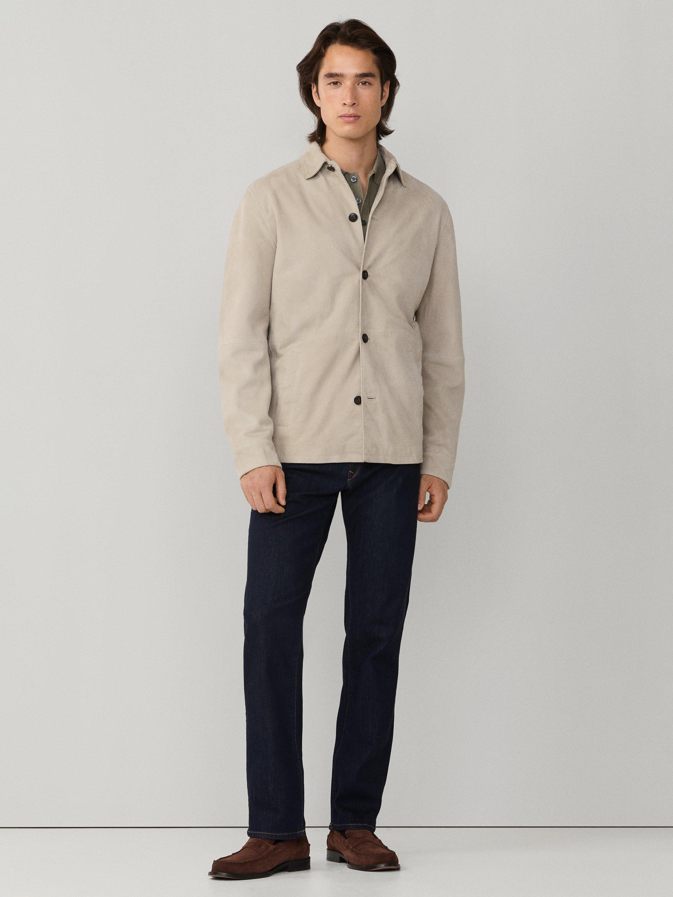 A regular-cut suede overshirt. Its soft texture and classic collar make it ideal for elevating your everyday look.