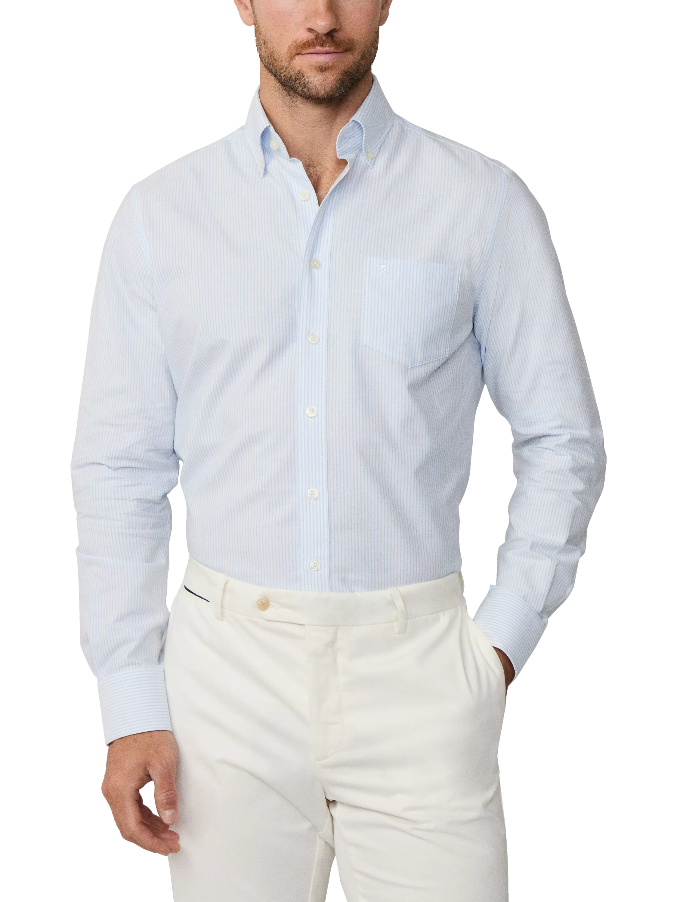 The combination of a button-down collar, a practical chest pocket and subtle stripes give this shirt an effortless feel. Hackett London's instantly recognisable bowler hat and umbrella embroidery at the chest provides another welcome finishing touch.