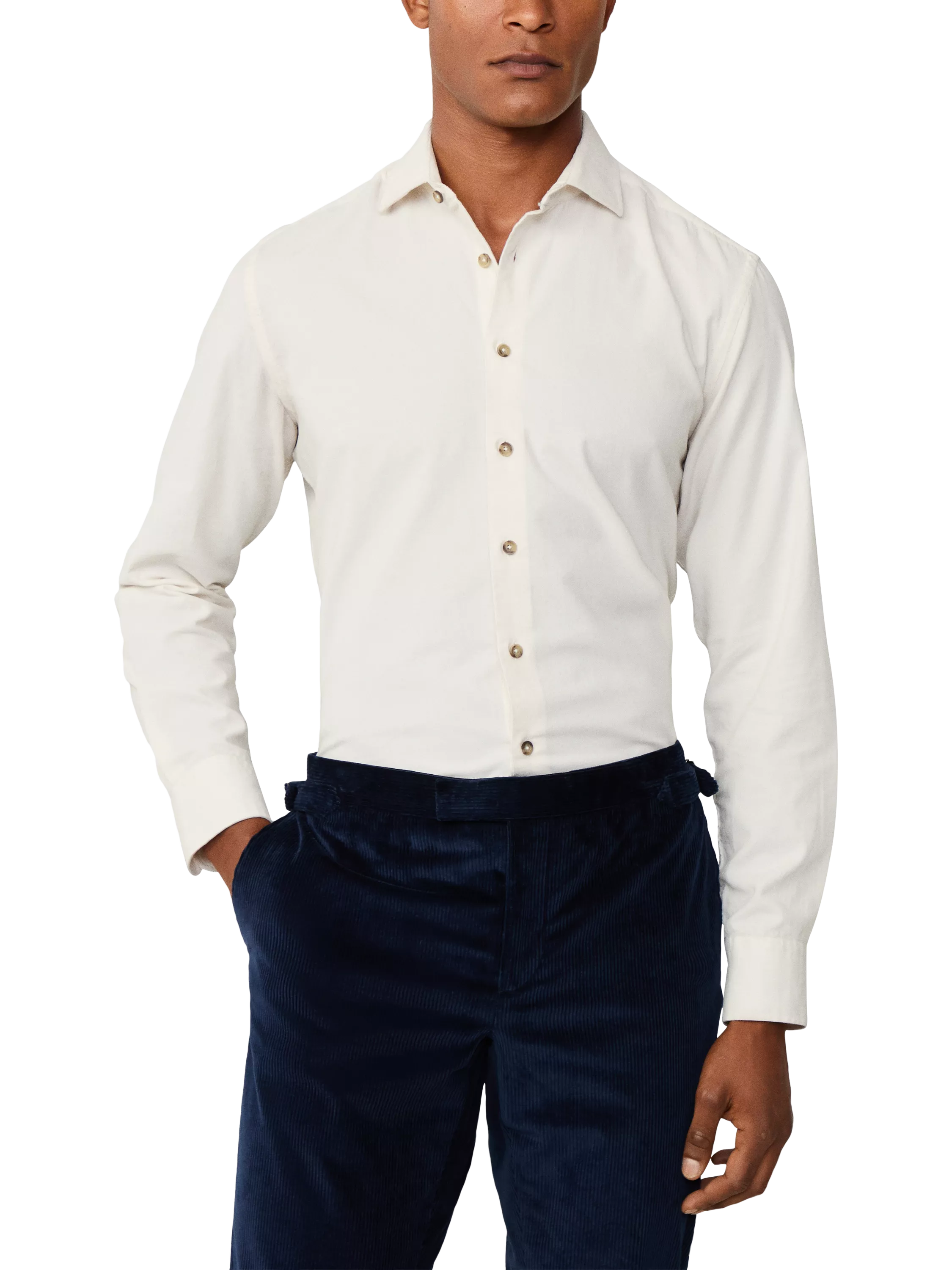 Tailored fit design for a sharp structured look with a Kent cutaway collar, a hallmark of Hackett’s classic shirt styles. Crafted from fine needle corduroy for a soft, textured finish. A French placket provides a clean, refined appearance, a perfect layering piece for autumn styling.