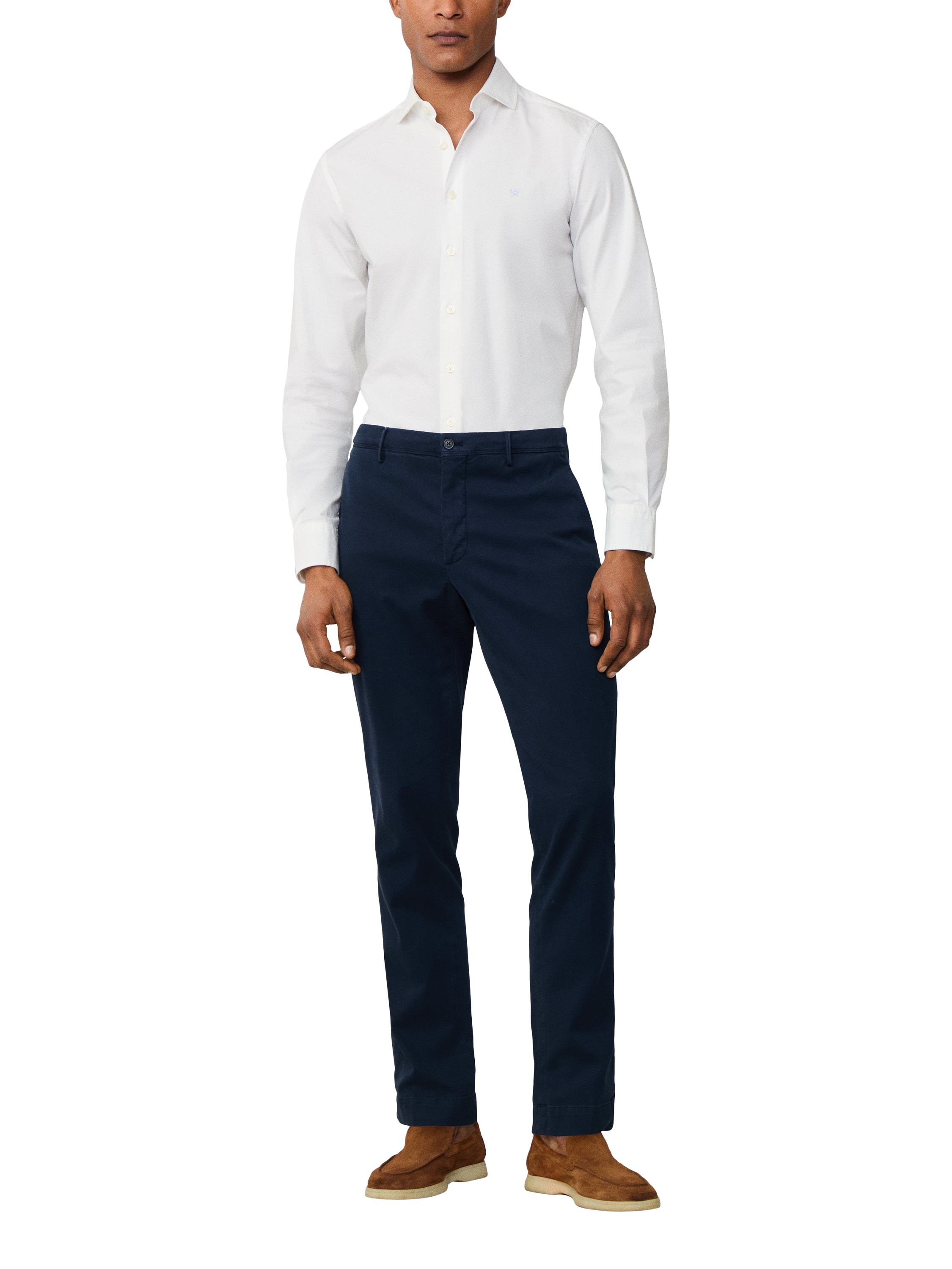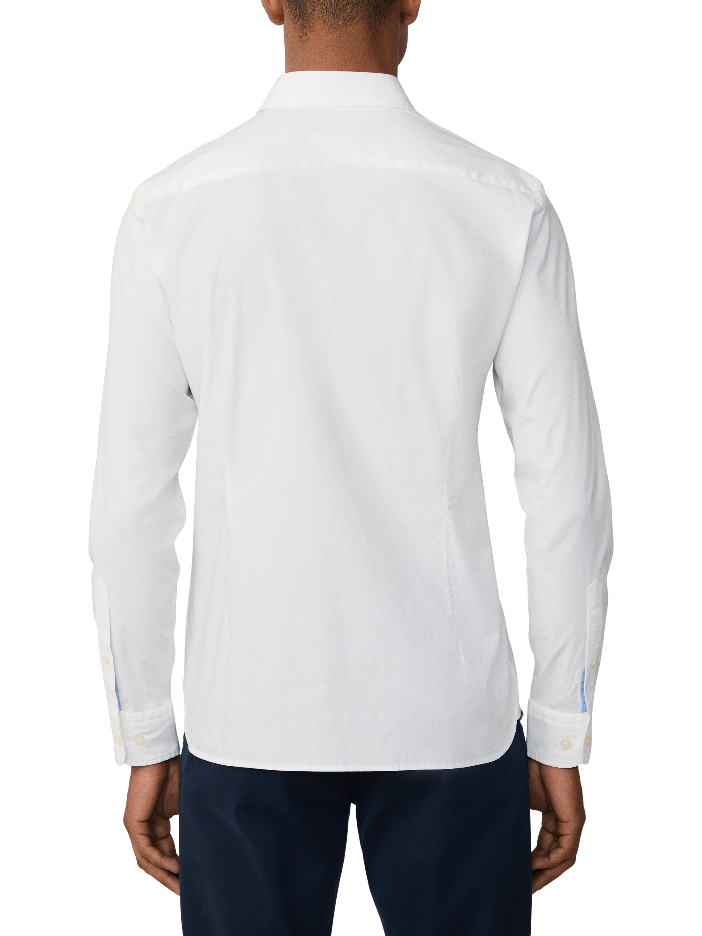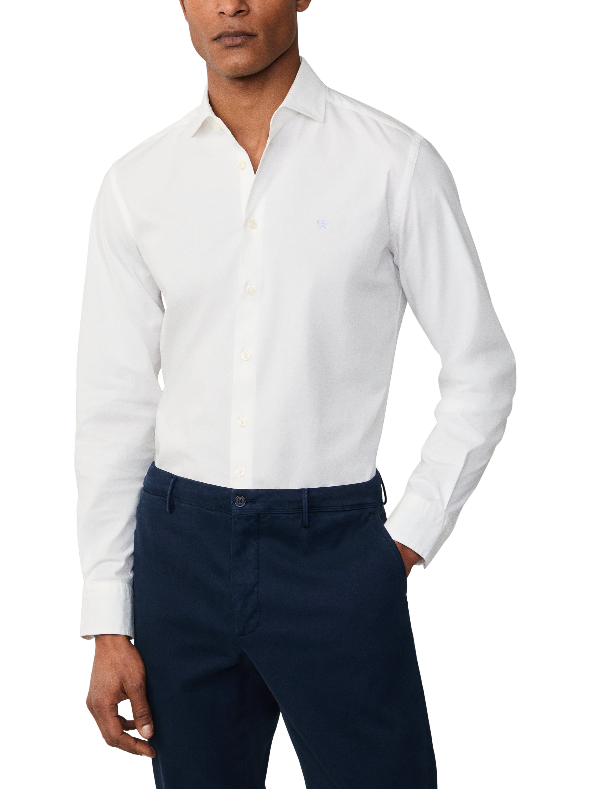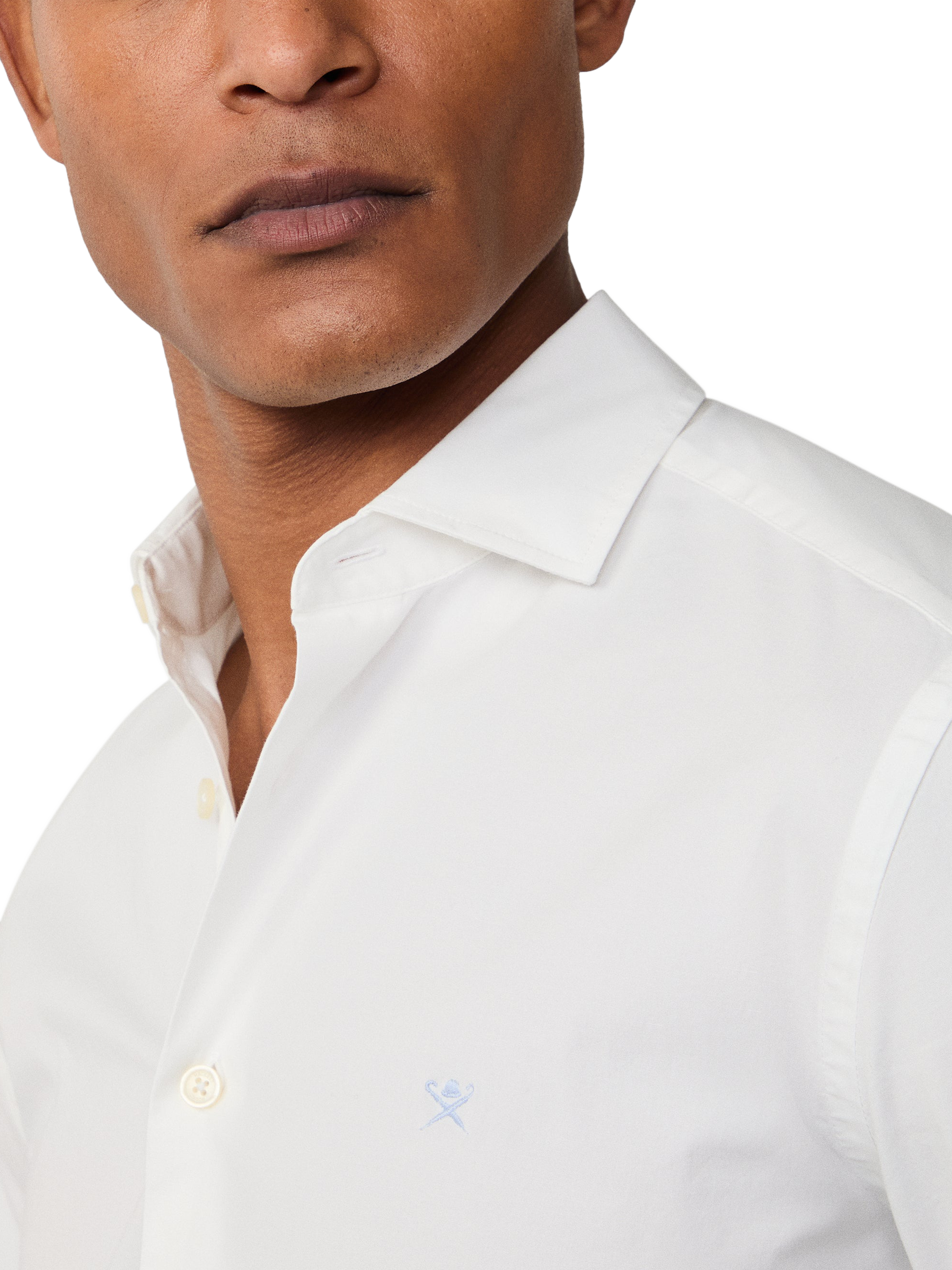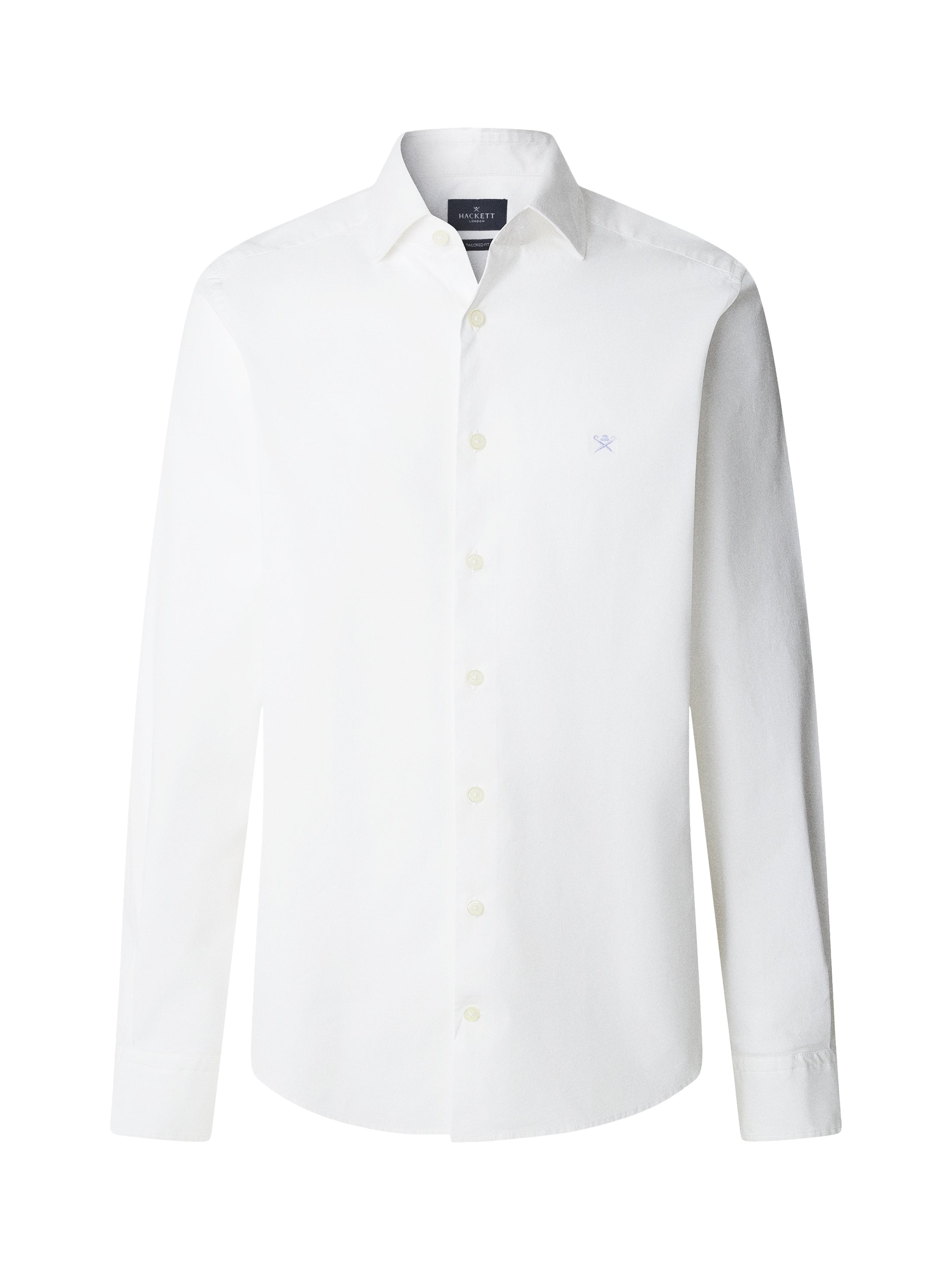 Tailored fit design for a sharp structured look with a Kent cutaway collar, a hallmark of Hackett’s classic shirt styles. A French placket for a cleaner, more formal look, pure linen shirt perfect for the summer. Contrast logo embroidery adds a stylish touch.