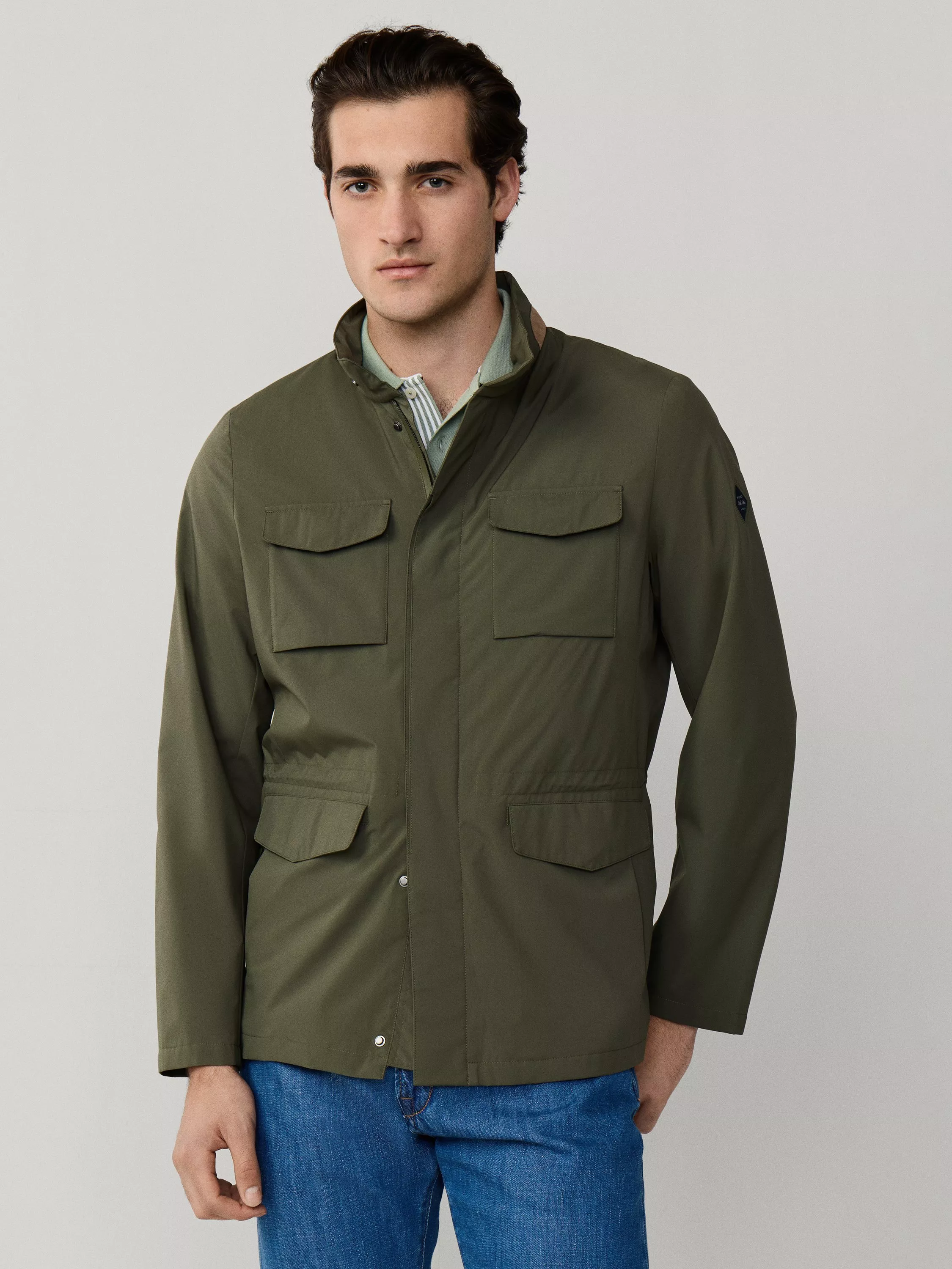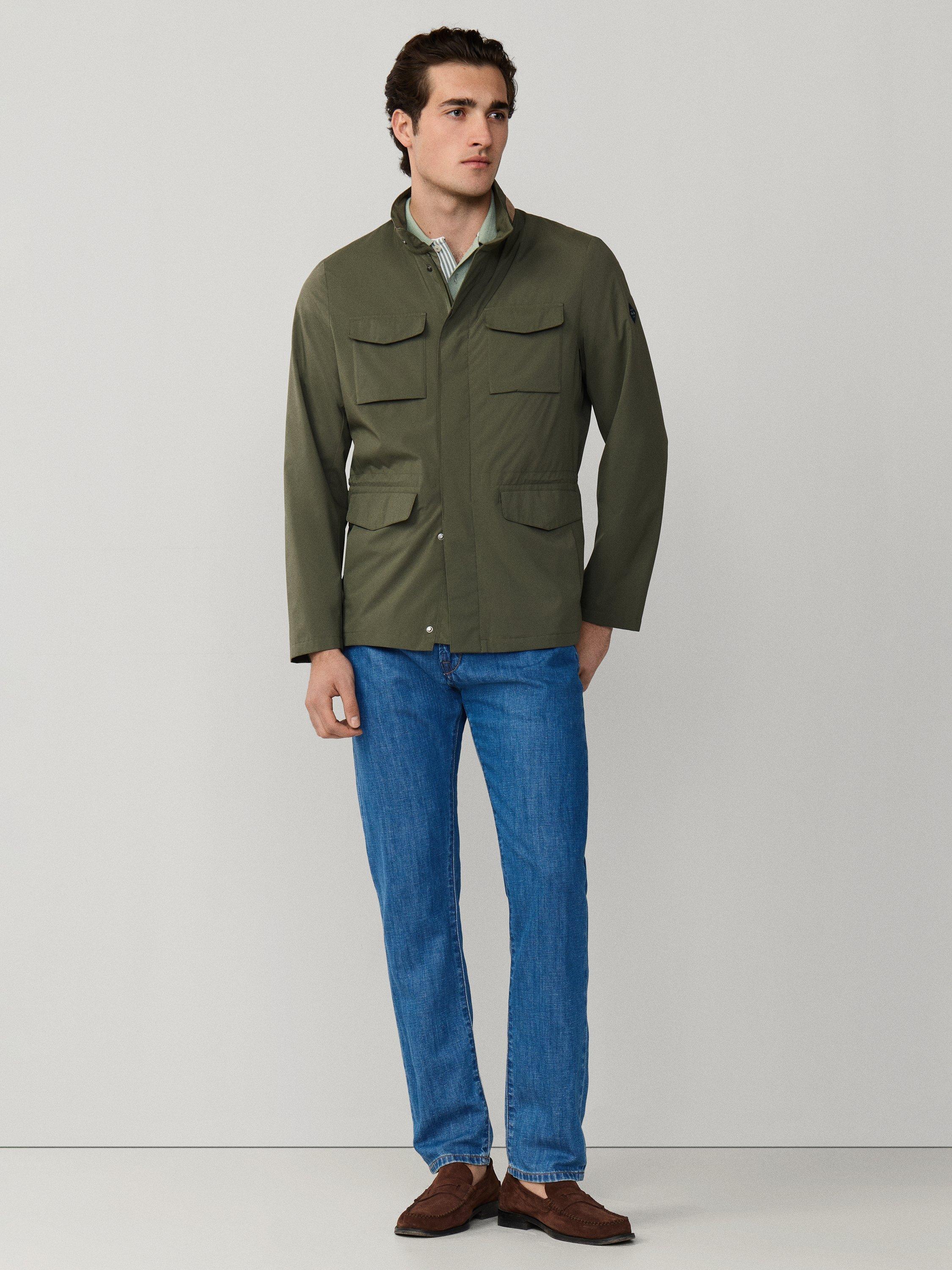 Confidently face your day with clever details and a practical cut. This technical jacket offers smart storage and comfortable movement, with a dirt and water resistant finish. With a two-way aquaguard zip, it's designed to masterfully blend the classic four-pocket field silhouette with modern, lightweight technical details.