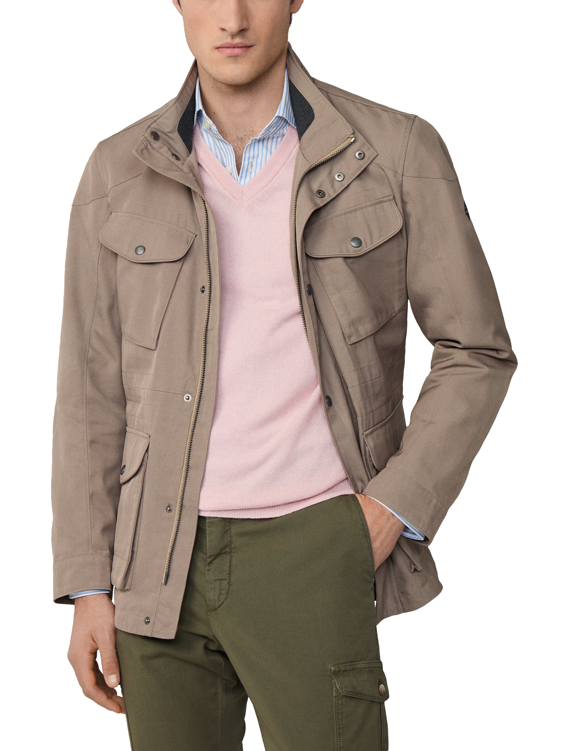 This water resistant jacket features a two-way zip, concealed hood, topstitch detailing and Velospeed badge. Designed with plenty of pockets, including dual-access lower pockets. Finished with a rib inner for comfort and warmth.