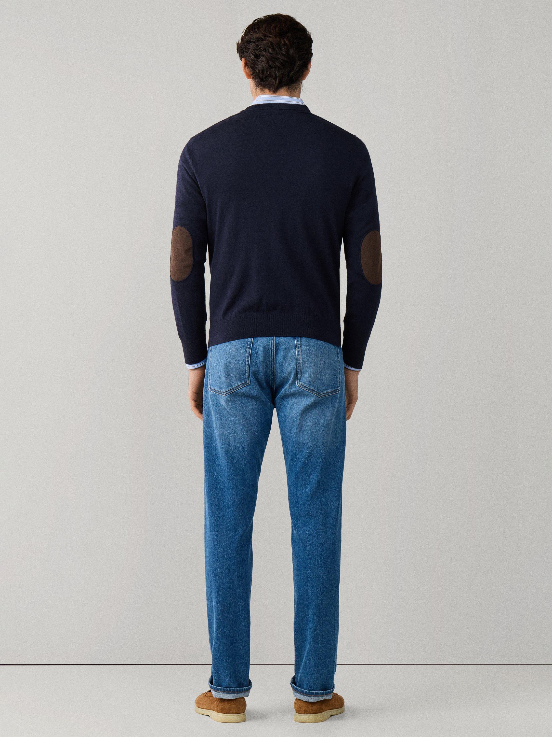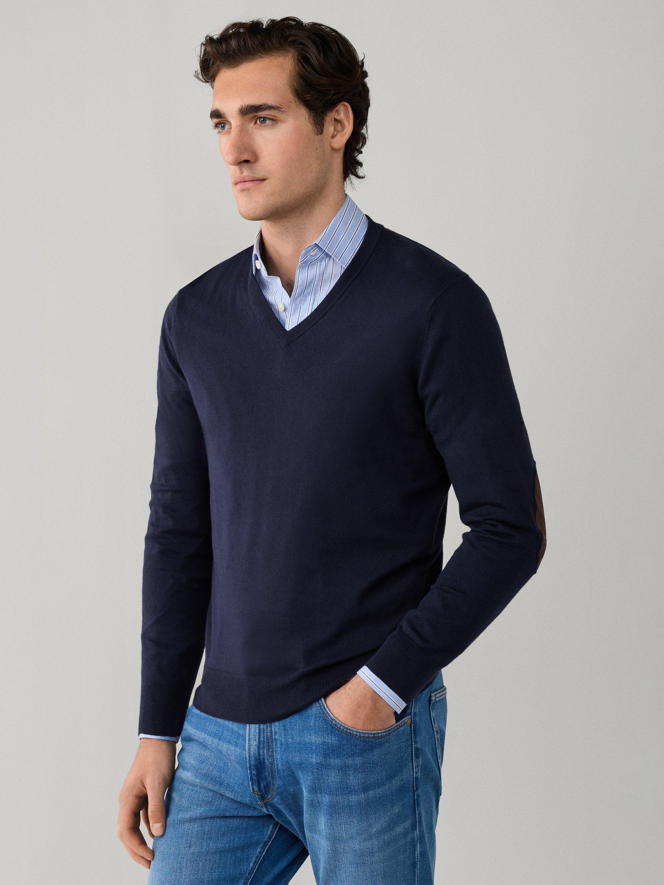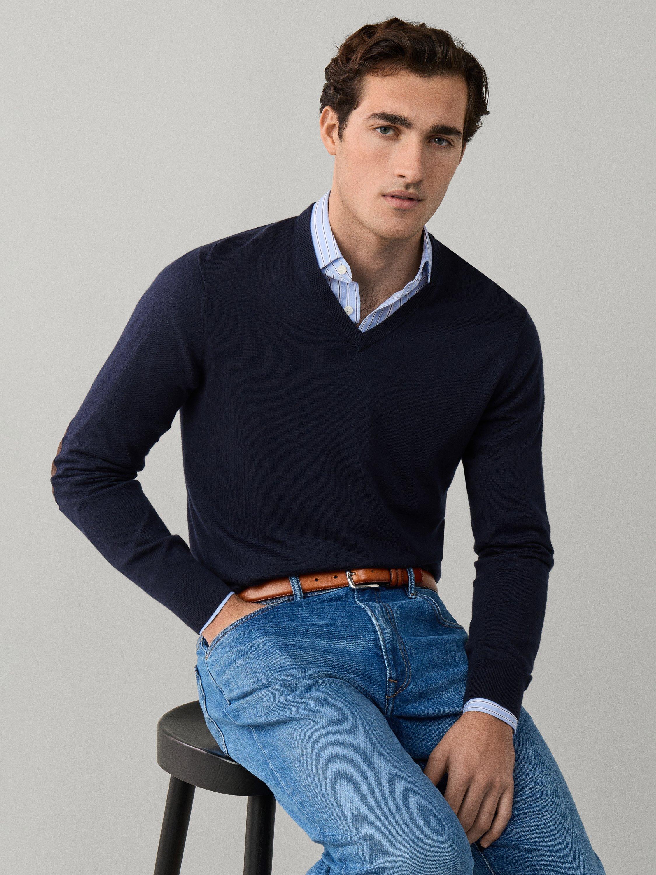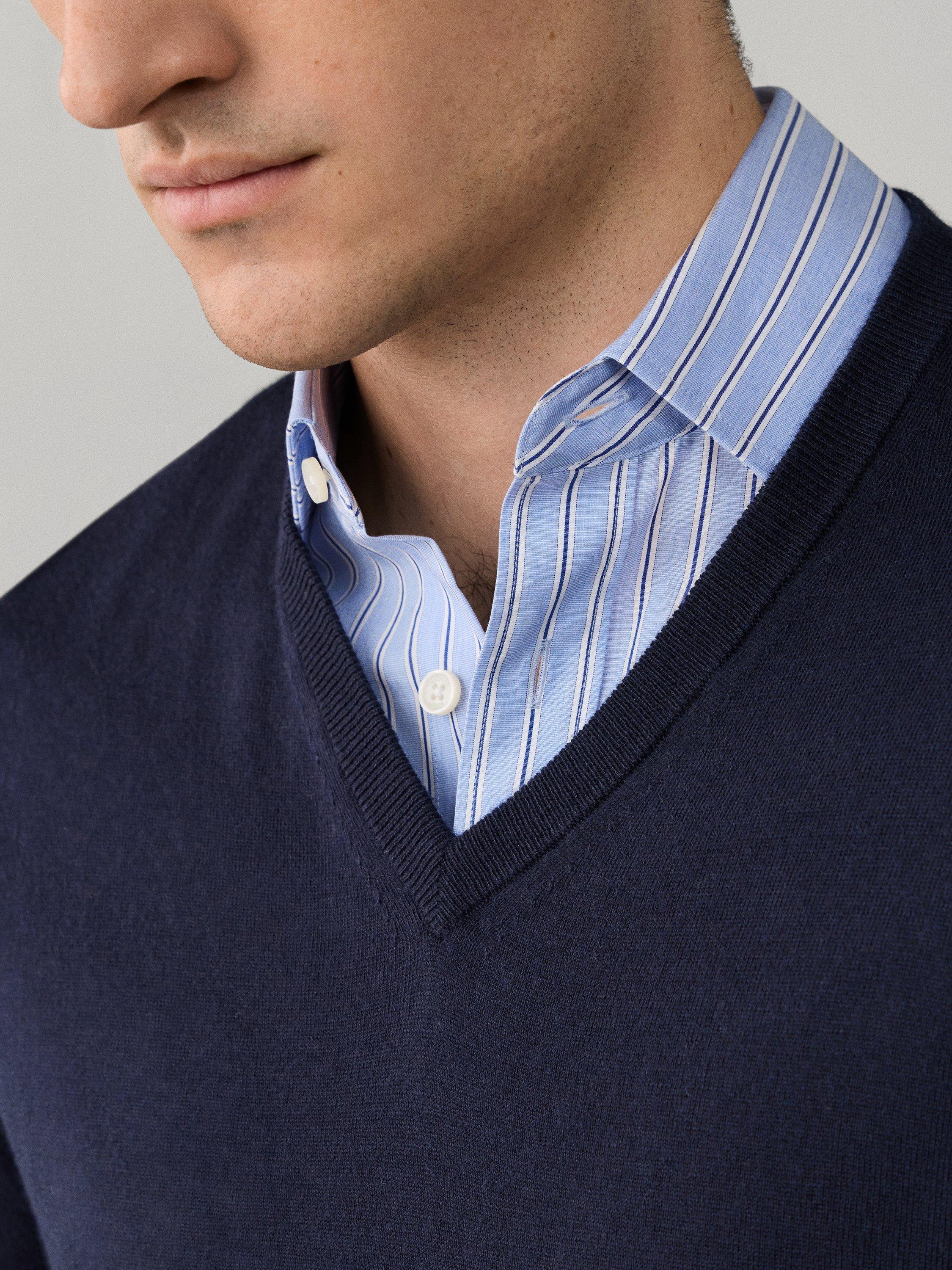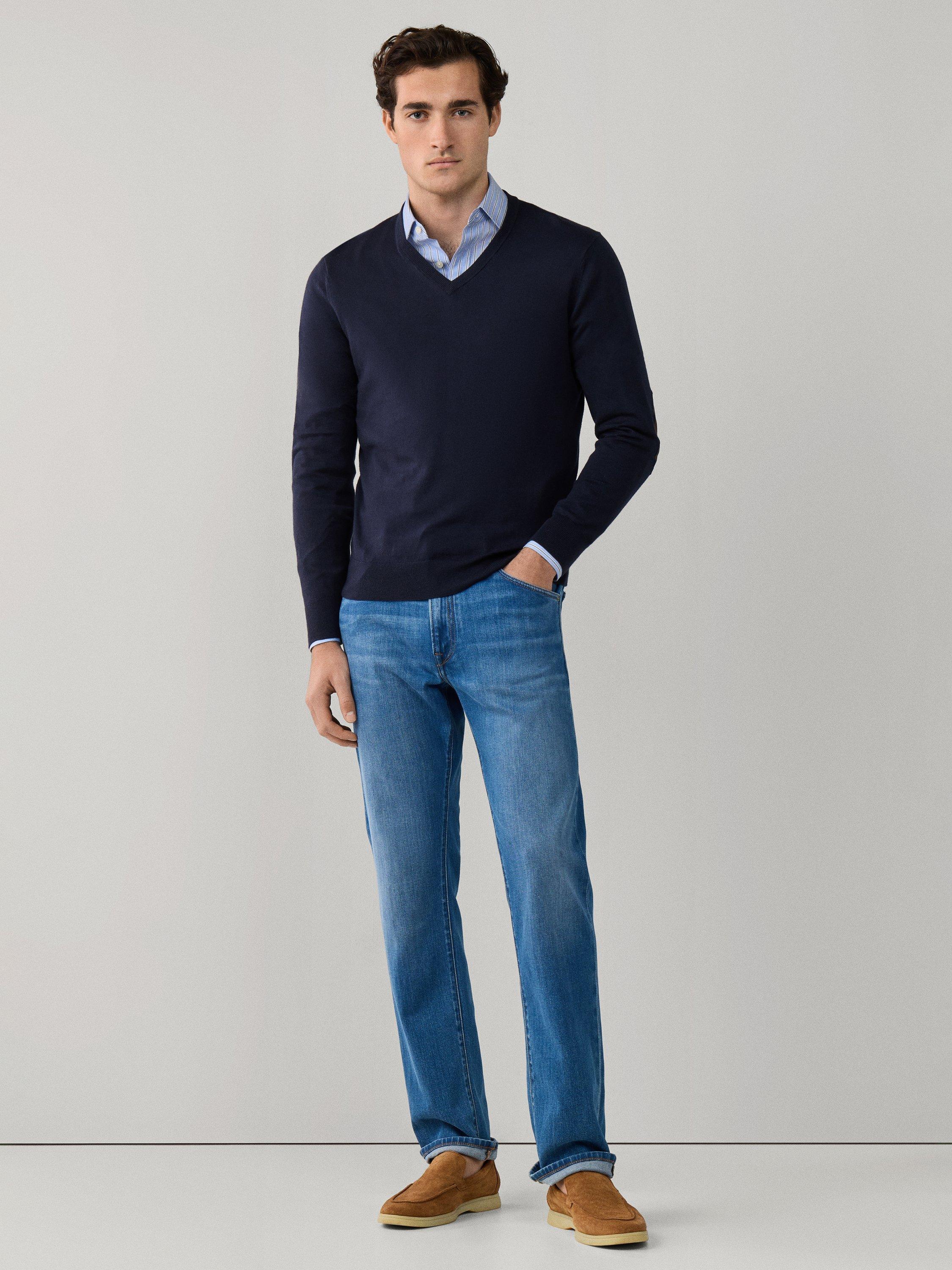 A fine-knit V-neck jumper, crafted from a soft cotton and cashmere blend. Layer it over your favourite shirts for an easy, polished look that feels natural wherever you go.