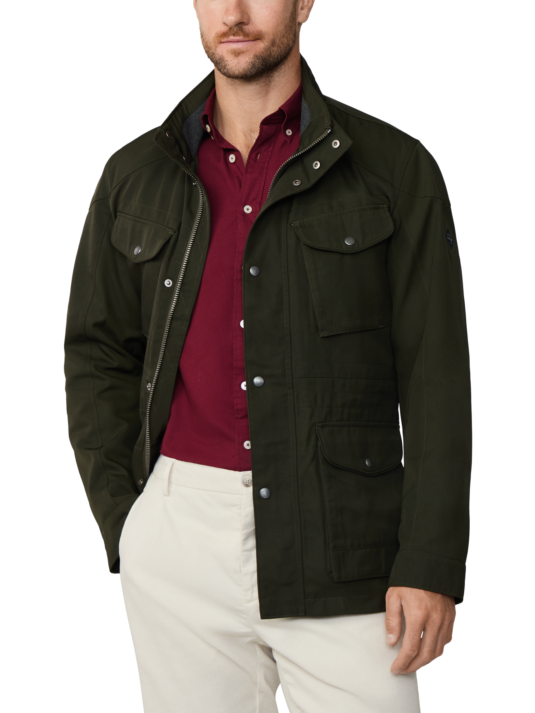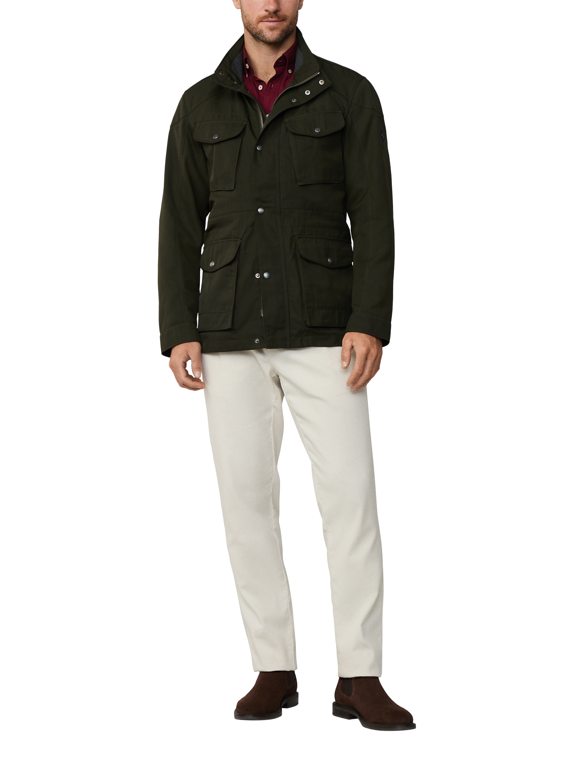 This utility jacket is a practical outerwear design complete with a two-way zip fastening at the front, a concealed hood and four external pockets. It also benefits from a water-resistant finish and a ribbed internal structure.