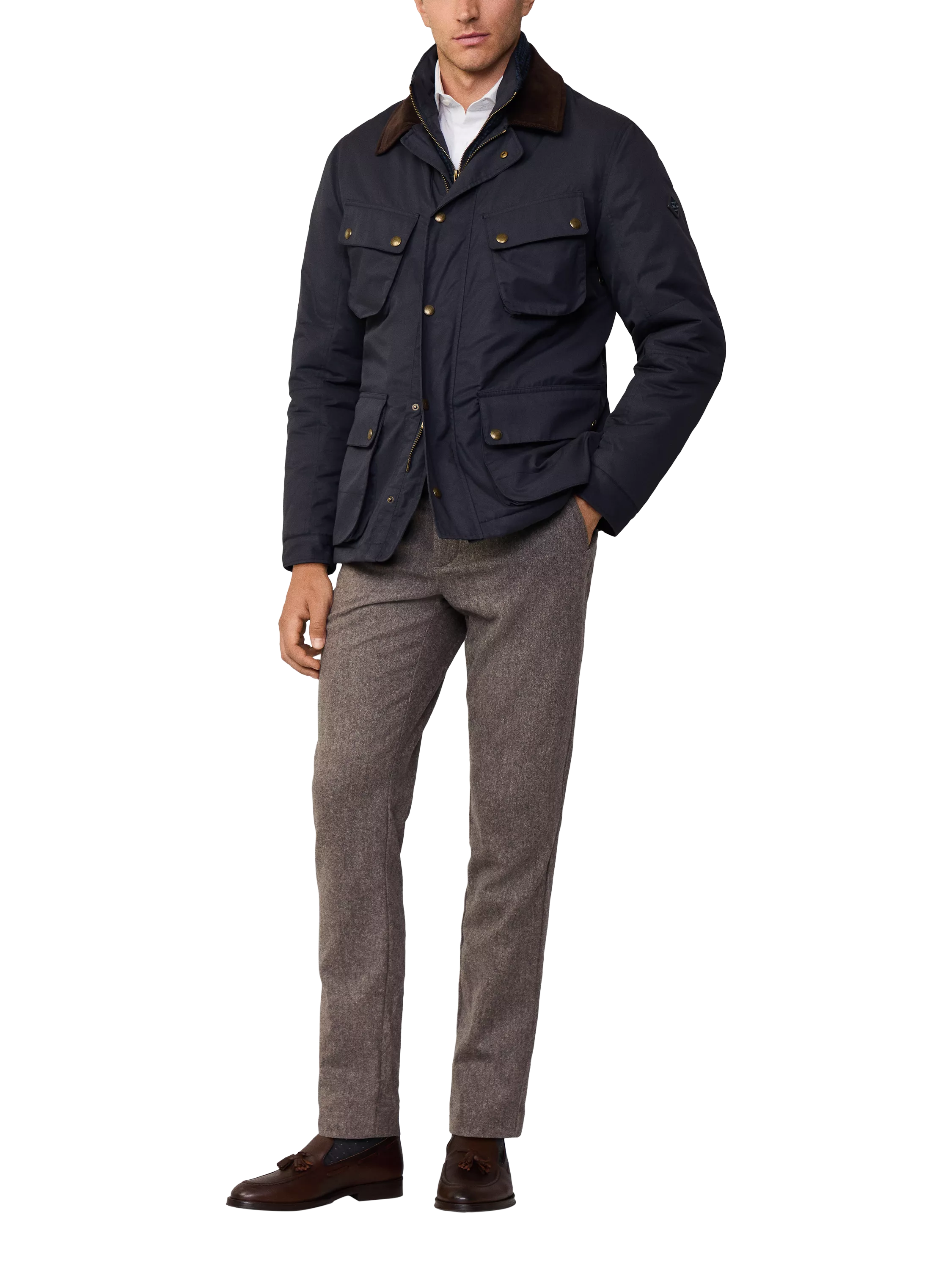 Inspired by workwear styles with its pocket-heavy design, this cargo jacket from Hackett London is made of 100% cotton with a waxed finish. With a contrast corduroy shirt collar, it's designed with a detachable houndstooth interior lining and a concealed zip and snap button placket front - perfect for pulling on over casual ensembles.