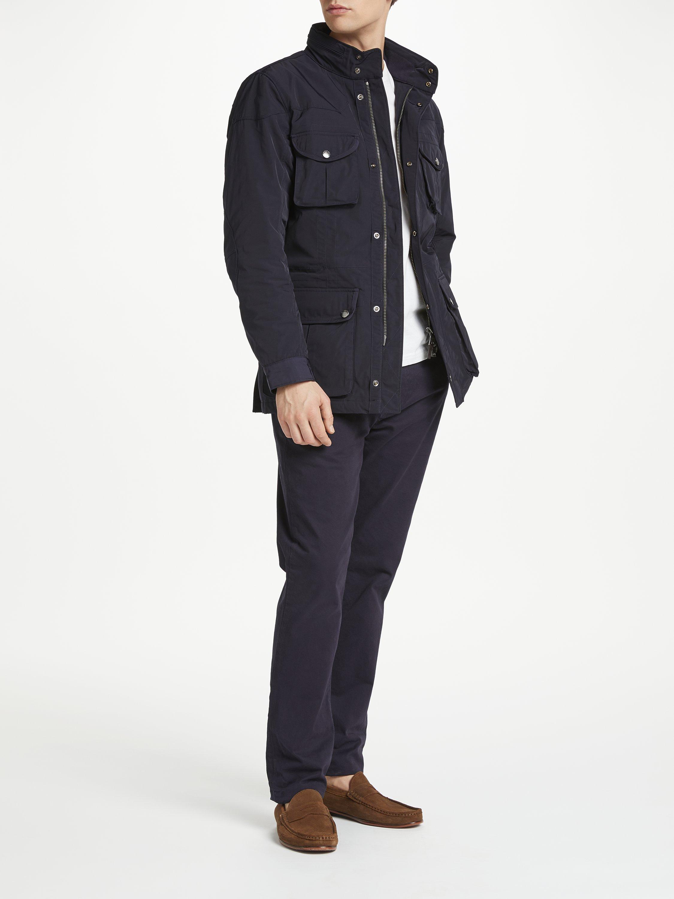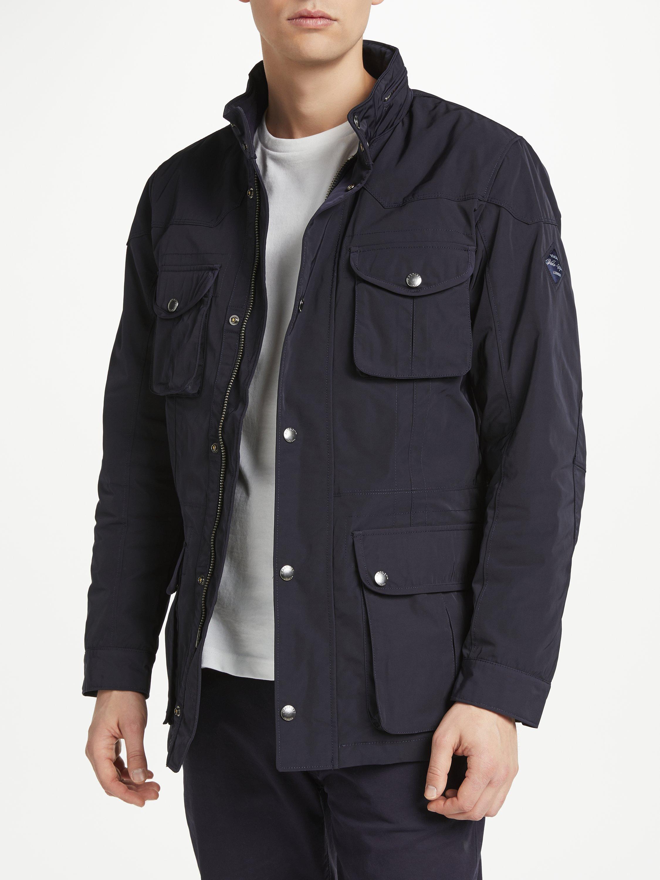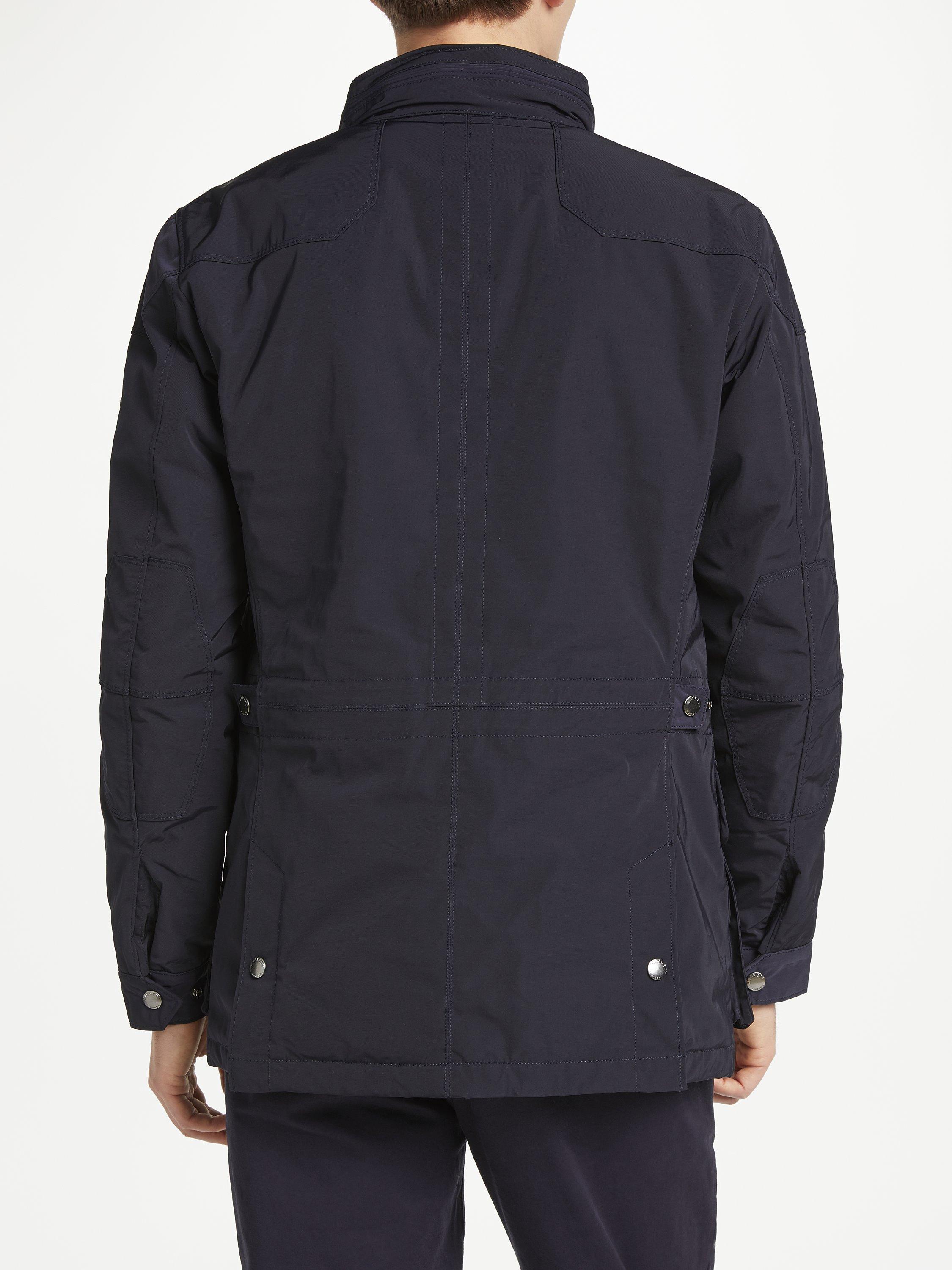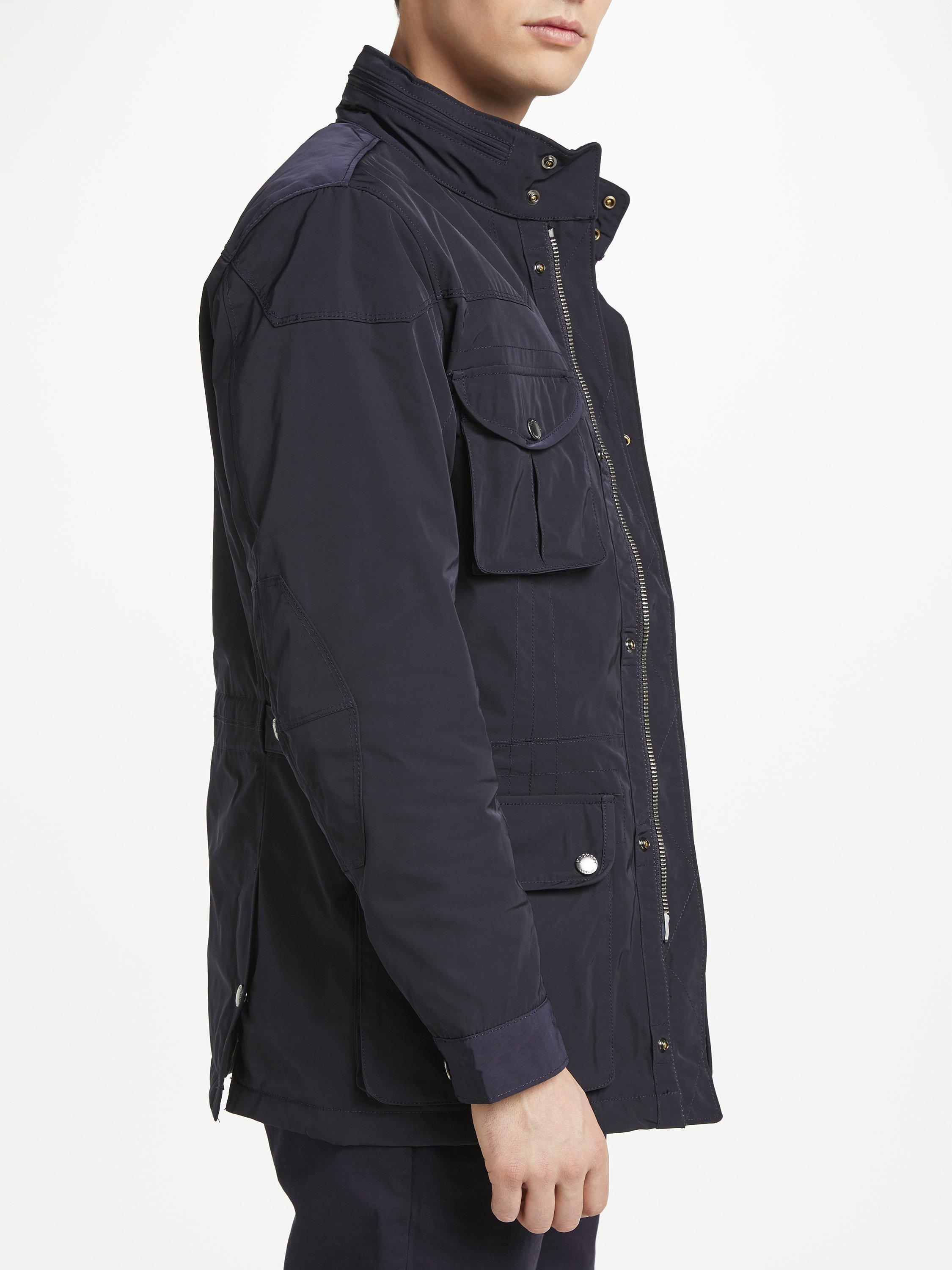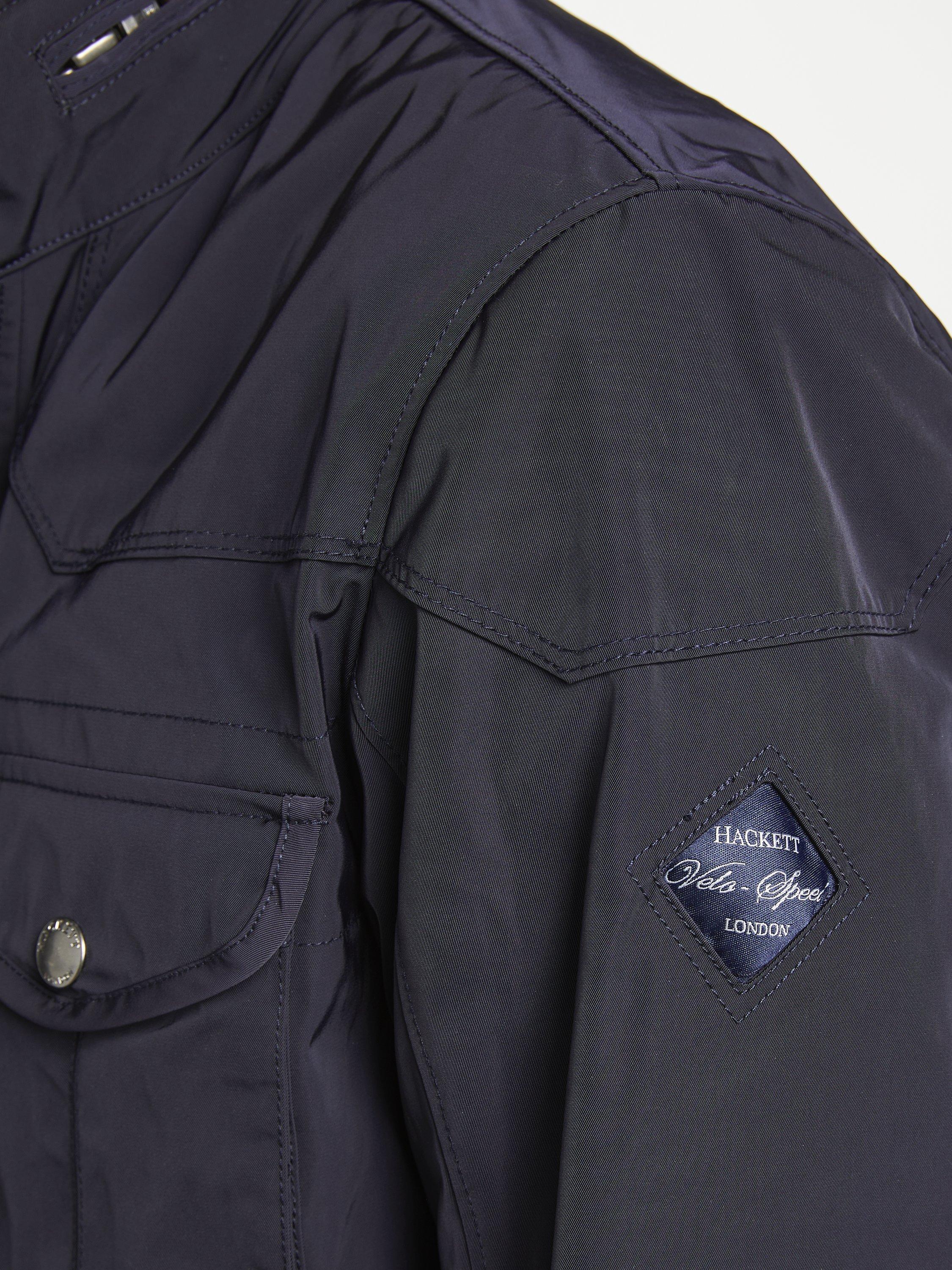 The Velospeed coat from Hackett, with its concealed zip hood and quilted lining, is ideal for the cooler months. Featuring four front pockets along with three inner pockets, the Velo-Speed is a model of practicality as well as style.