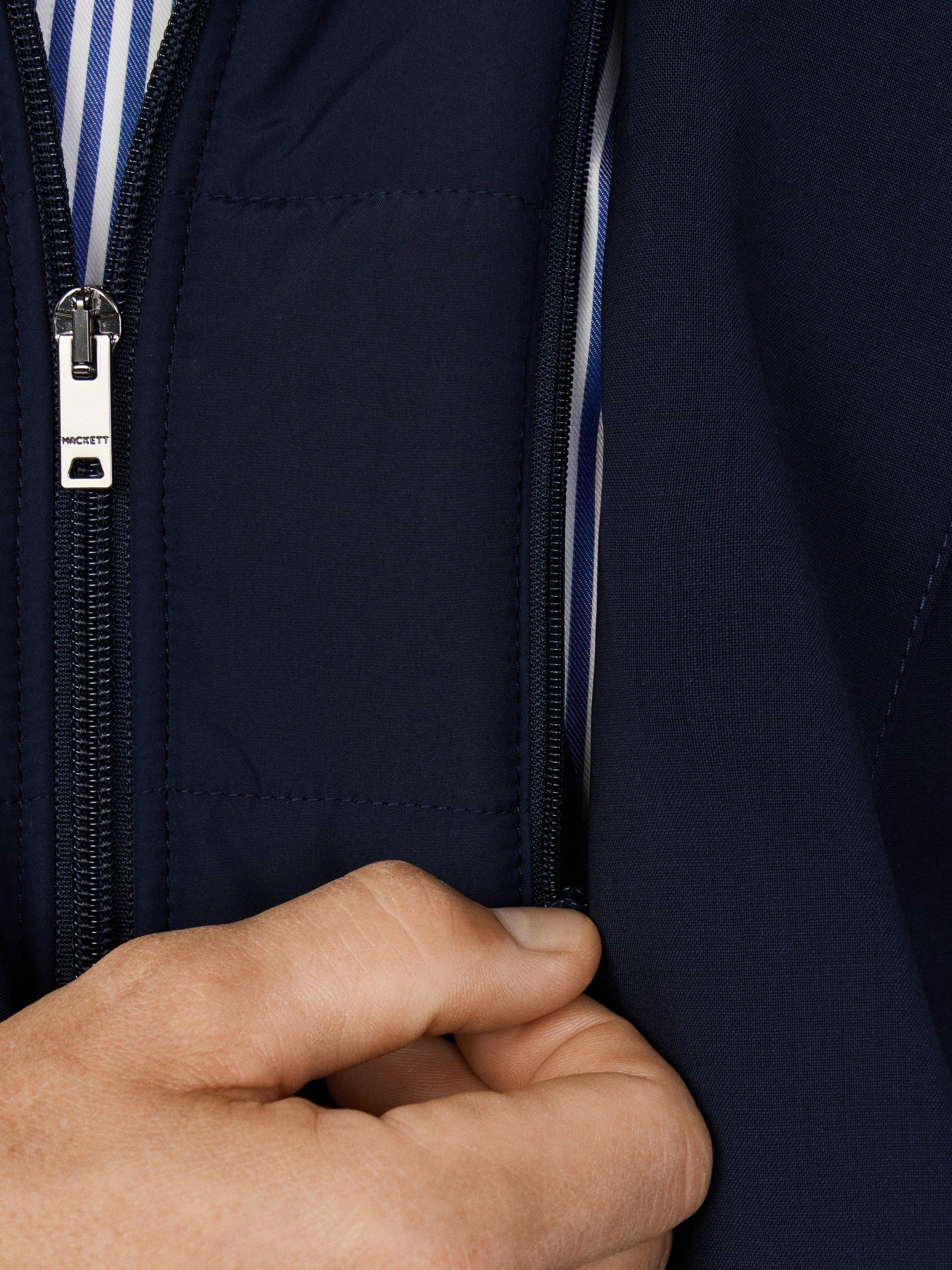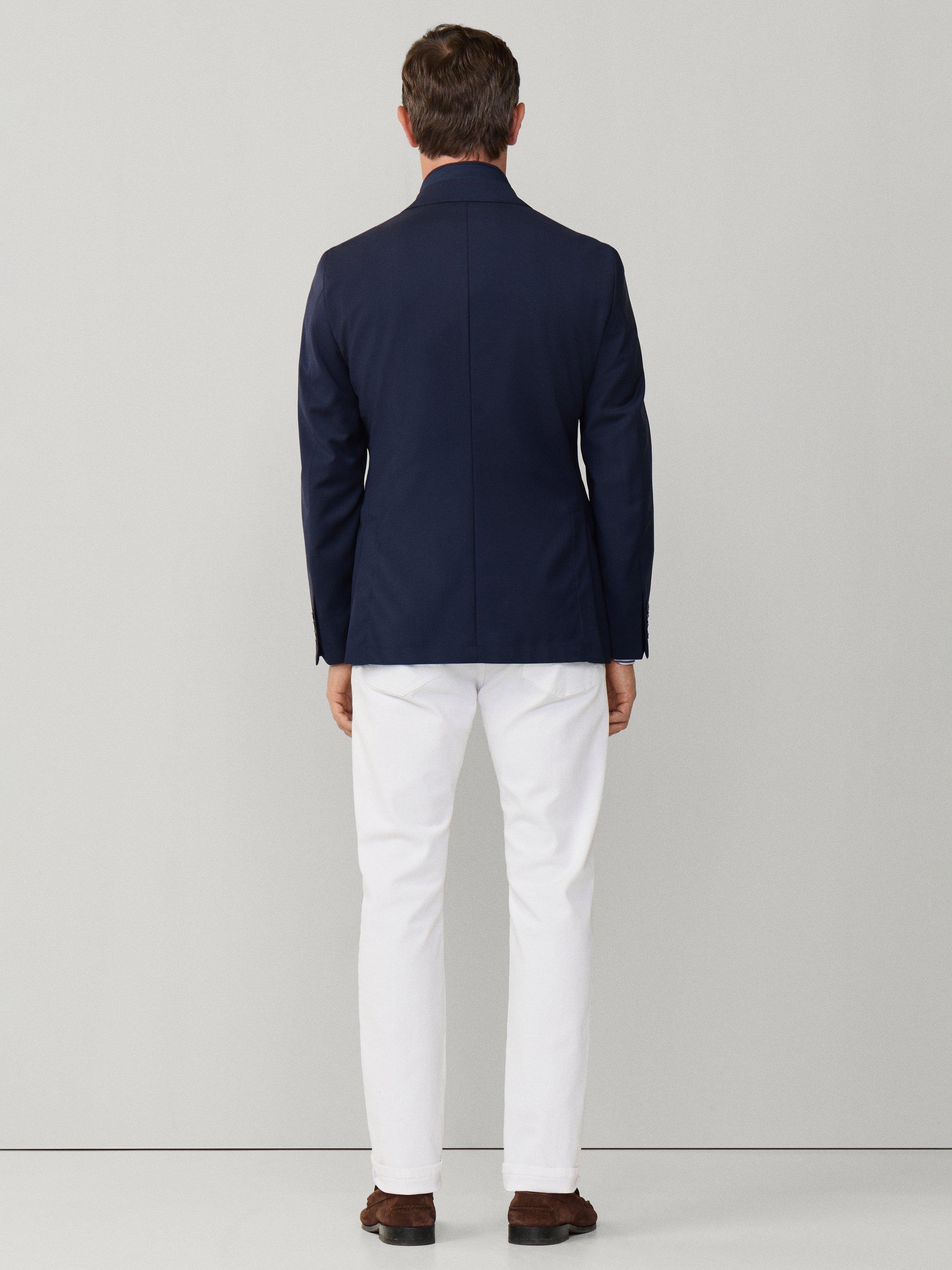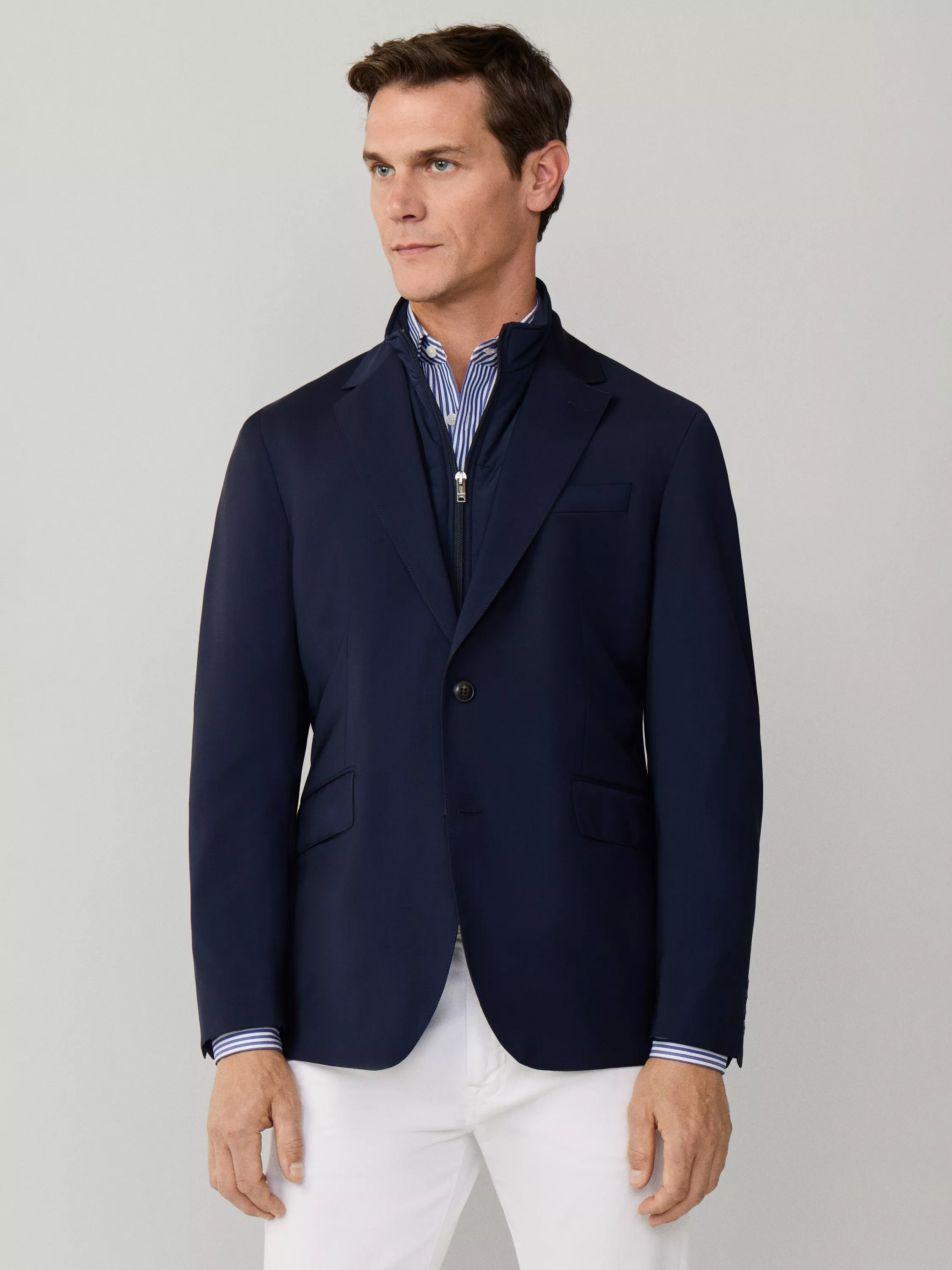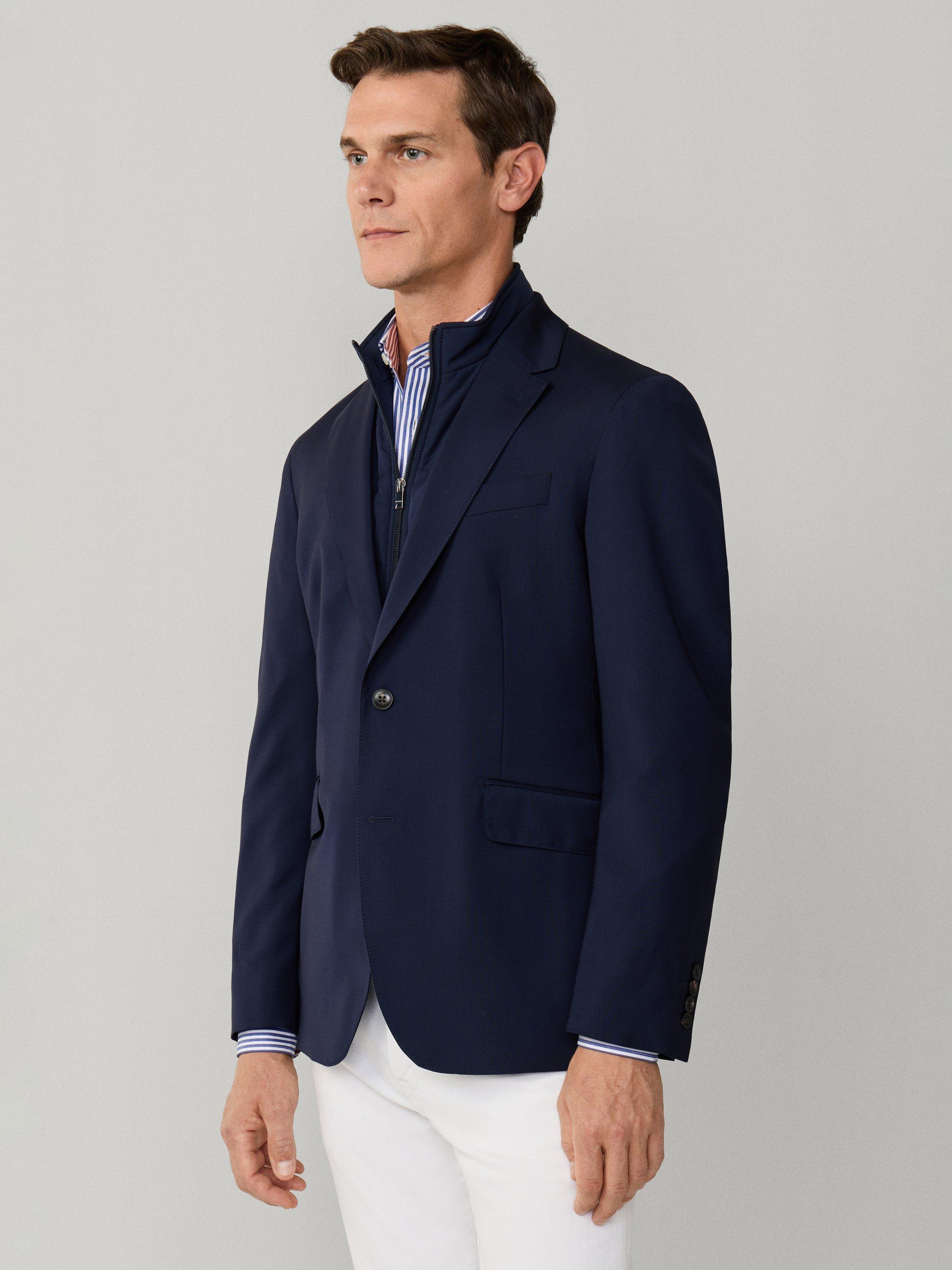 This Hackett London blazer is expertly crafted from a lightweight wool tropical fabric, making it an ideal choice for maintaining a sharp profile in warmer climates. Designed on the Ascot block, it features a sophisticated hybrid design with a zip-out internal liner for added versatility across changing temperatures. This single-breasted jacket is finished with a two-button fastening, classic notch lapels, flap pockets, and closed button cuffs for a polished, modern aesthetic.