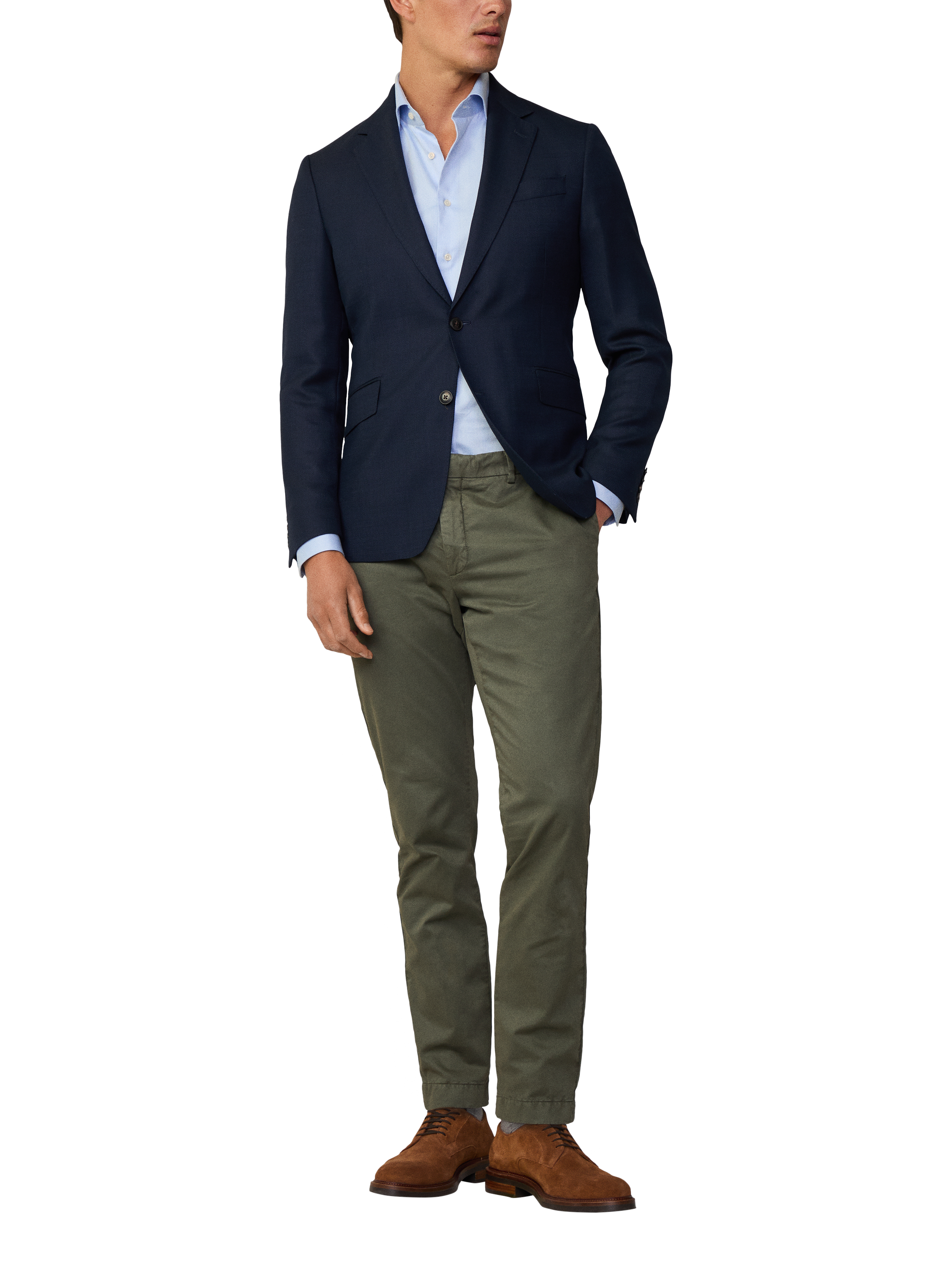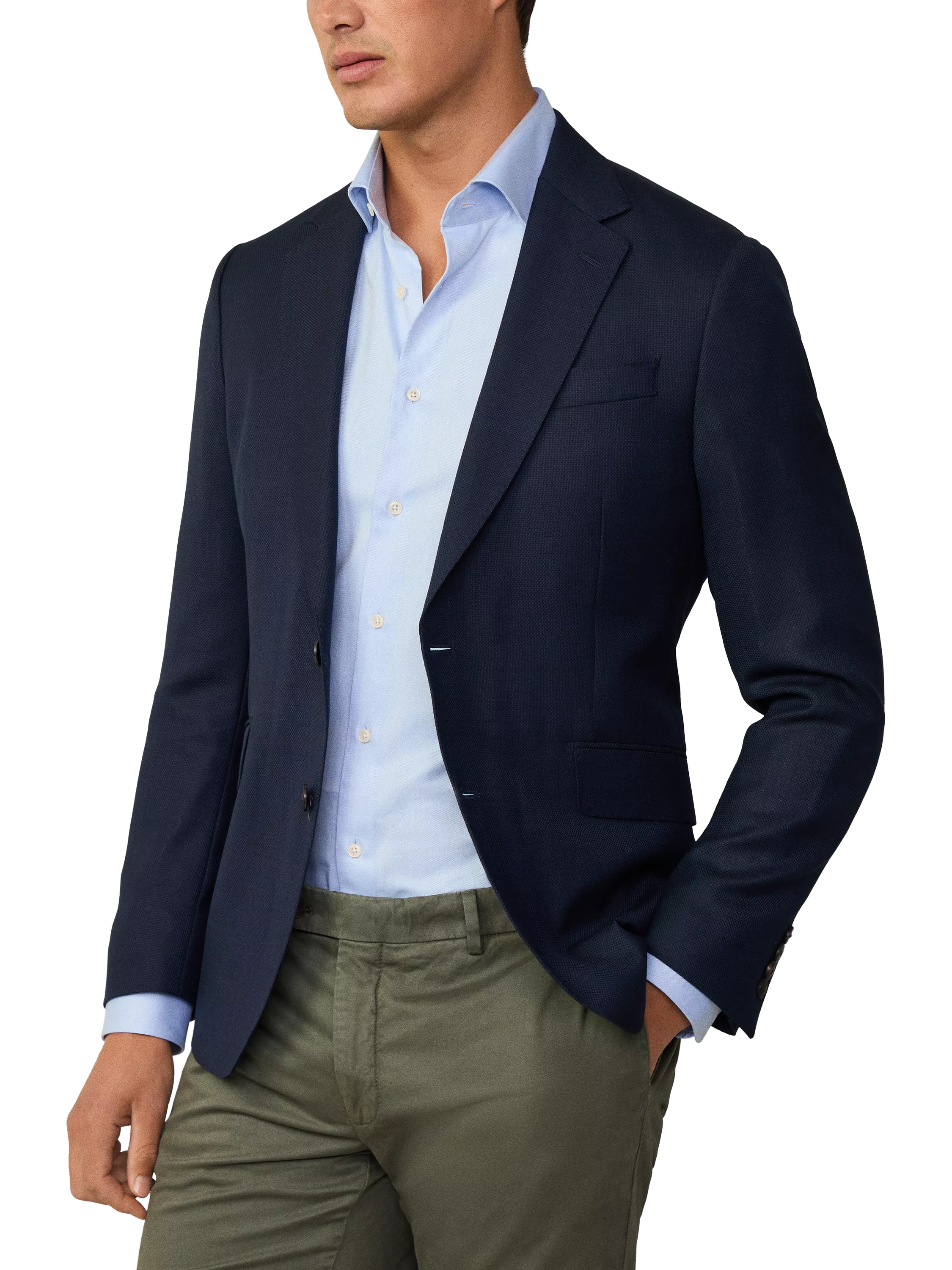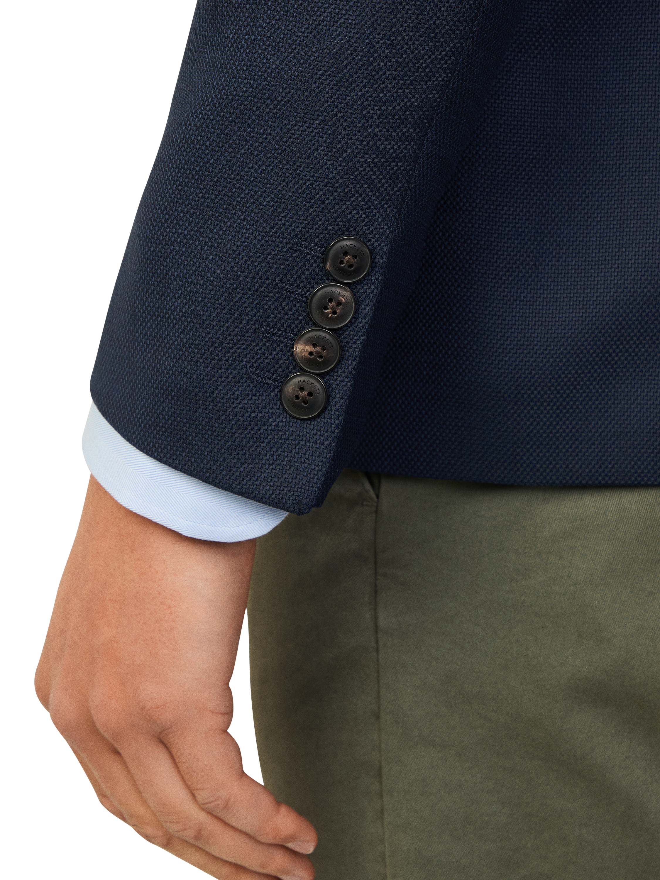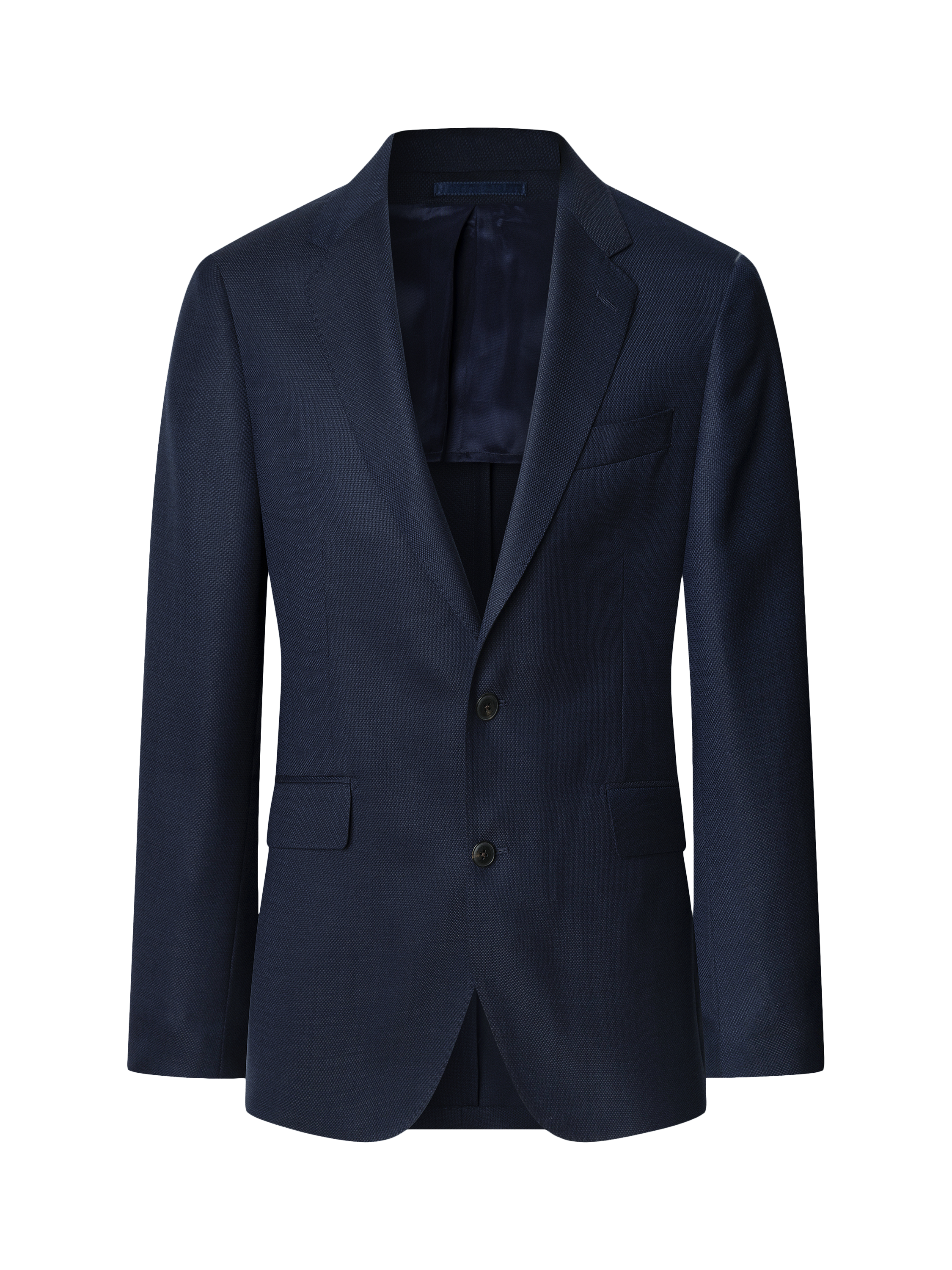 Cut in Hackett London's Ascot block, this blazer features a 2 button closure, a notch lapel, button cuffs, and flap pockets for timeless tailoring. This blazer Showcases a textured hopsack fabric with a removable nylon bib for versatile styling.