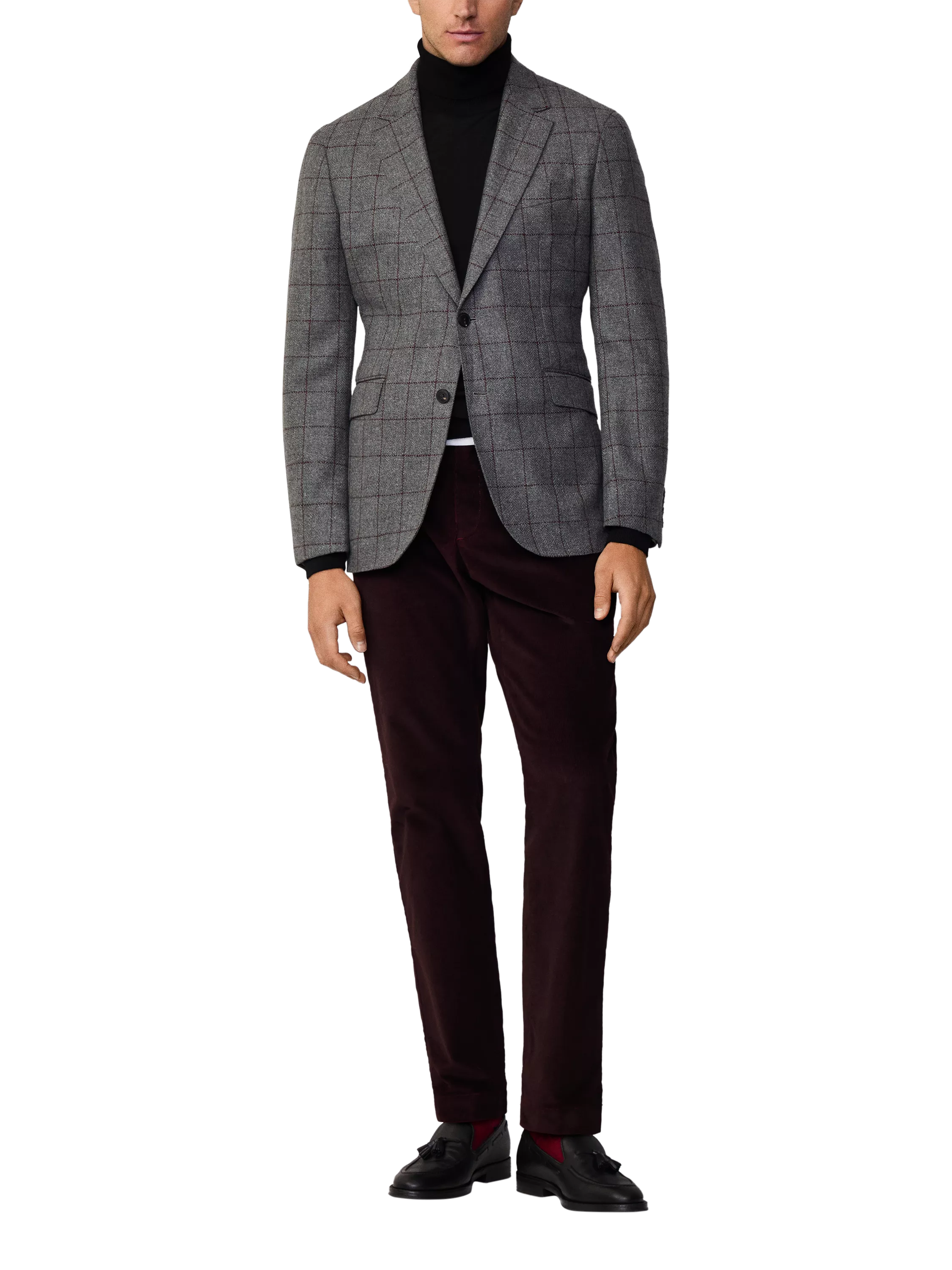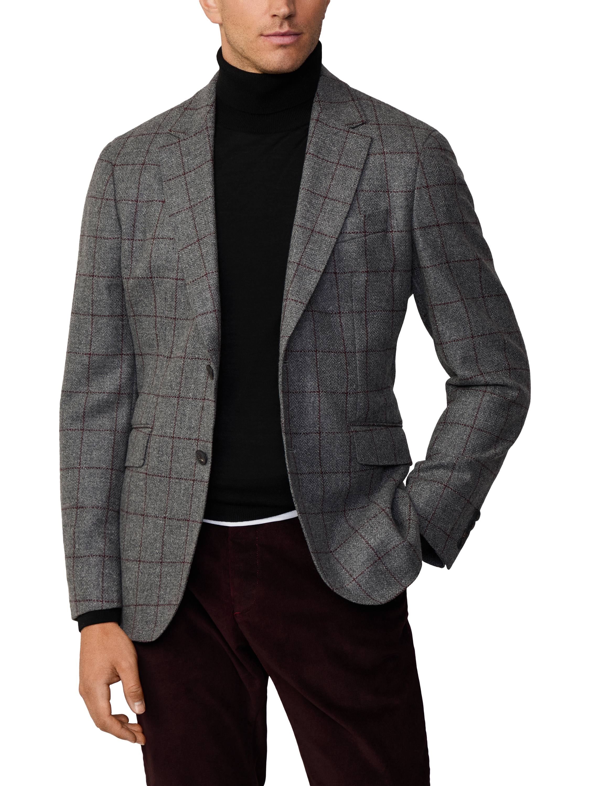 Made from an Italian wool and cashmere fabric, this single-breasted blazer from Hackett London is made to a windowpane check design with side flap pockets.