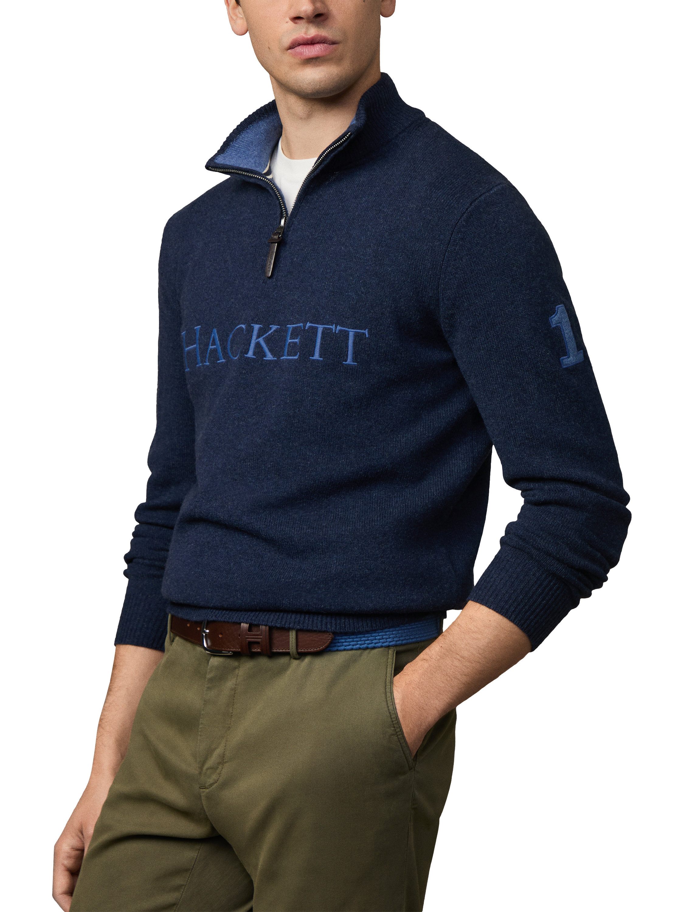 With a cosy high neck, this jumper from Hackett London boasts its logo and is finely knitted from wool for a super cosy texture.