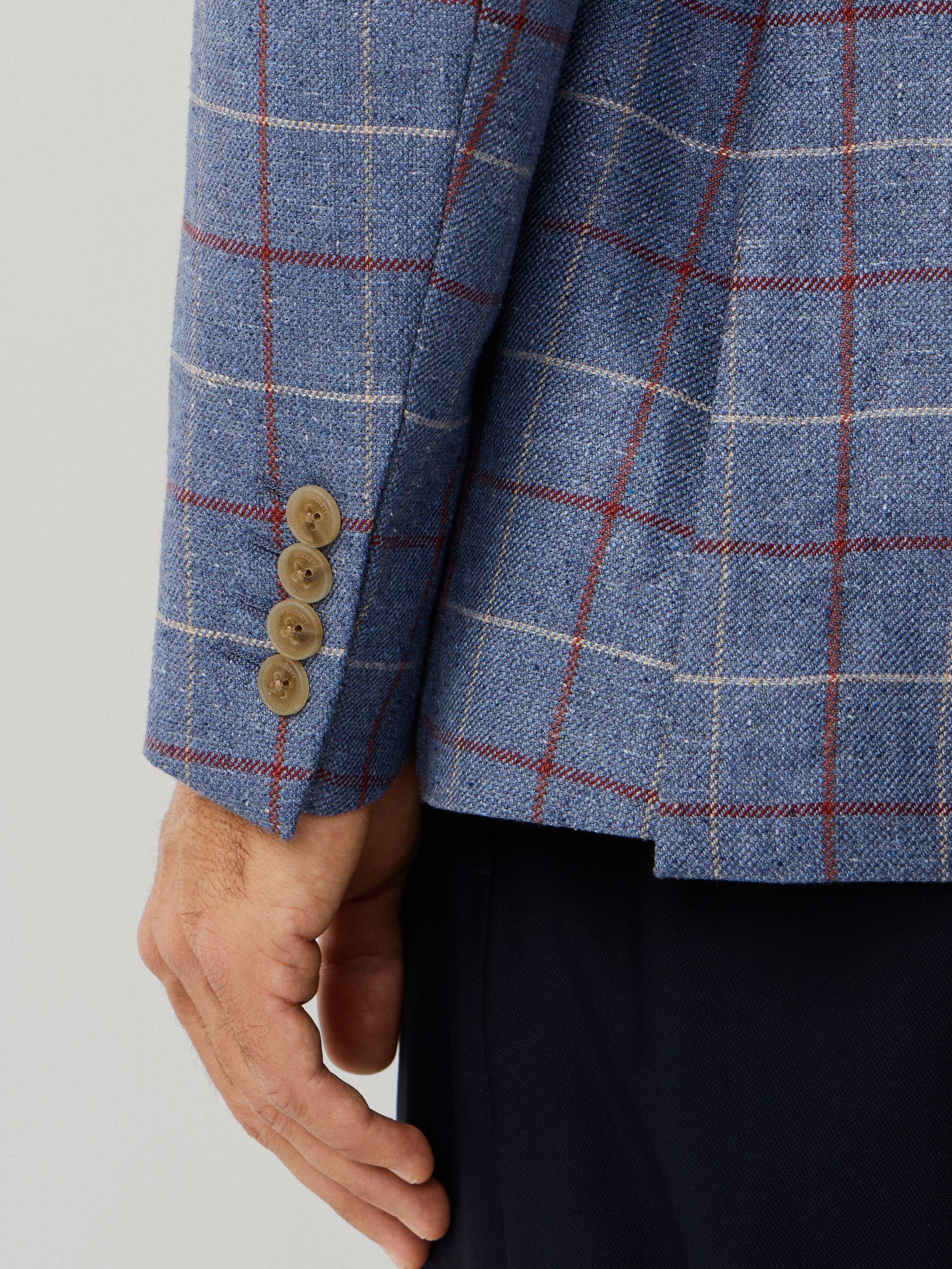 This Hackett London blazer is a masterclass in Italian craftsmanship, featuring a classic Tattersall check rendered in a luxurious wool-silk blend. Cut on the signature Ascot block, this single-breasted jacket offers a refined silhouette with a two-button fastening, notch lapels, and traditional flap pockets. The half-lined construction ensures a lighter, more breathable feel, while the button cuffs provide a polished finishing touch.