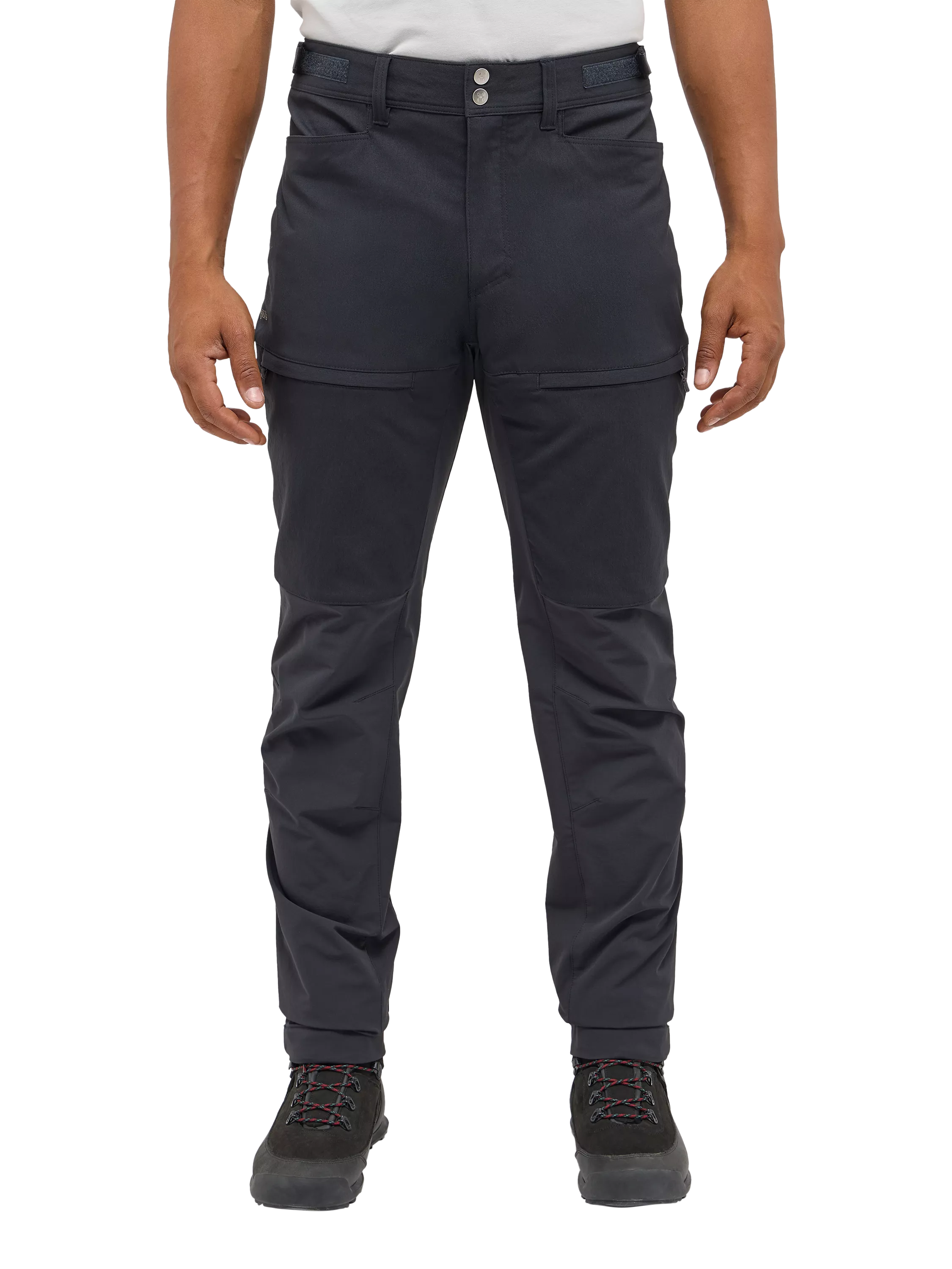 Tough and flexible trousers for day hikes, camping, and long-distance journeys. Haglöfs designed them to serve a versatile role in your outdoor kit. They're made out of a combination of two durable fabrics, strategically constructed with greater flexibility at high-stress points. A velcro-adjustable waistband with belt loops and adjustable leg-ends offer customised comfort.