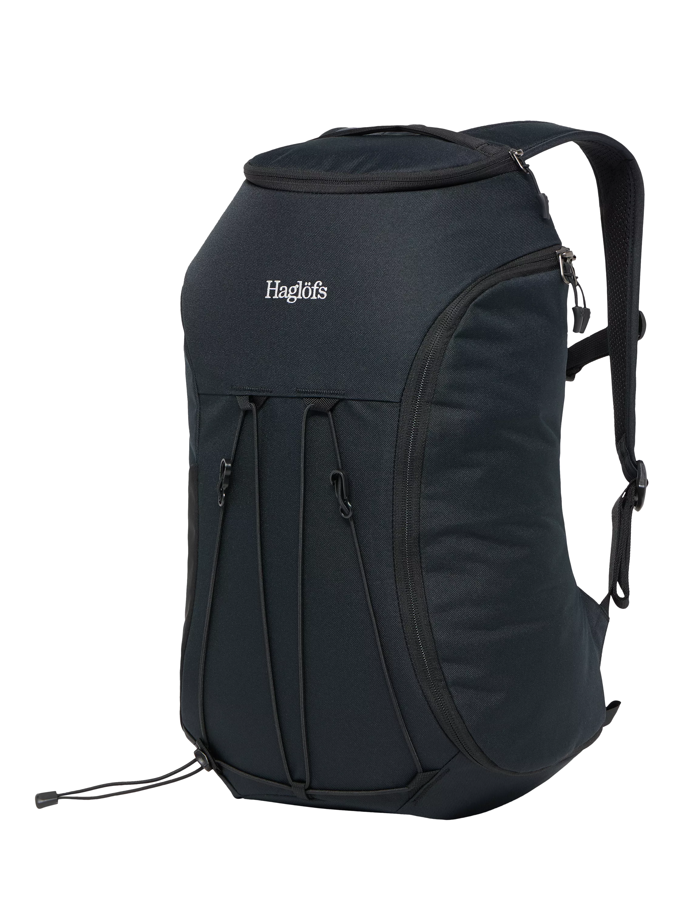 An innovative daypack equipped for the nature trail and everyday journeys. Haglöfs designed it to efficiently carry your load while offering easy access to everything you've packed. The main material is a durable 100% recycled fabric. It has a sturdy box construction that helps it maintain its distinctive shape regardless of its contents. A large side panel opening offers a smart overview of your gear and, together with a number of handy pockets and attachment points, makes it easier to reach whatever you need along the way.